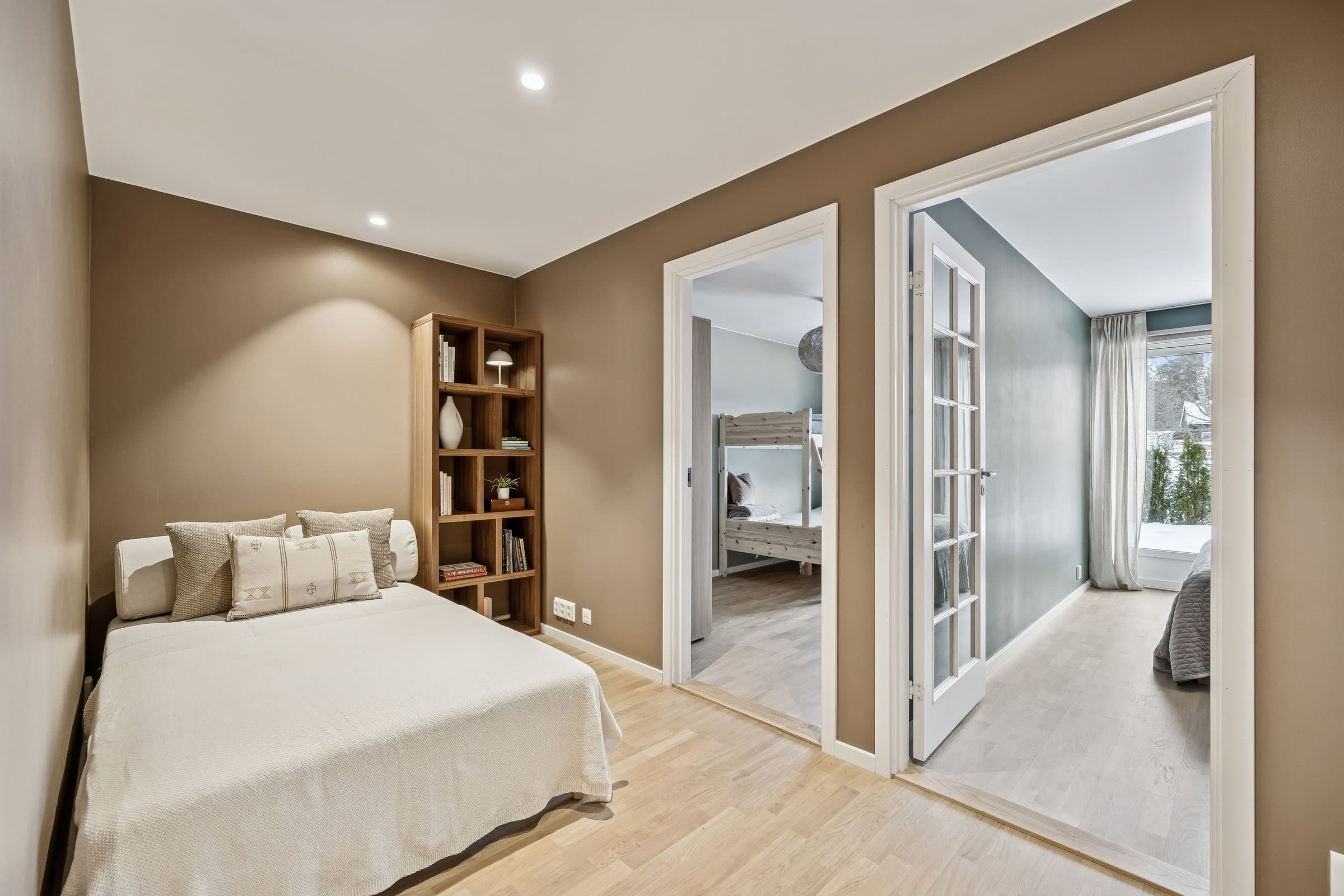Velkommen til Skogsåsen – et av Sofiemyrs mest ettertraktede boligområder. Her får du et moderne og gjennomført rekkehus fra 2020 med familievennlig planløsning, solrik uteplass og en rolig beliggenhet innerst i blindvei. Her kan barna leke trygt ute, mens hverdagen går lett med kort vei til alt man trenger. Boligen holder en gjennomgående moderne standard og byr på en praktisk og arealeffektiv planløsning over flere plan. Her får du blant annet tre gode soverom, romslig stue med store vindusflater og utgang til solrik uteplass, samt et stilrent kjøkken med god skap- og benkeplass. Uteplassen er skjermet og egner seg godt både til lek, avslapning og hyggelige sammenkomster. Med gode solforhold fungerer den som en naturlig forlengelse av stuen. Beliggenheten i feltet oppleves rolig og trygg, med lite gjennomgangstrafikk – ideelt for barnefamilier. Skogsåsen er et etablert og populært boligområde med kort vei til dagligvare, skole, barnehager, bussforbindelser og rekreasjonsområder. Her bor du i et trygt og sosialt nabolag med enkel hverdag. Visning kan også avtales ved behov.
