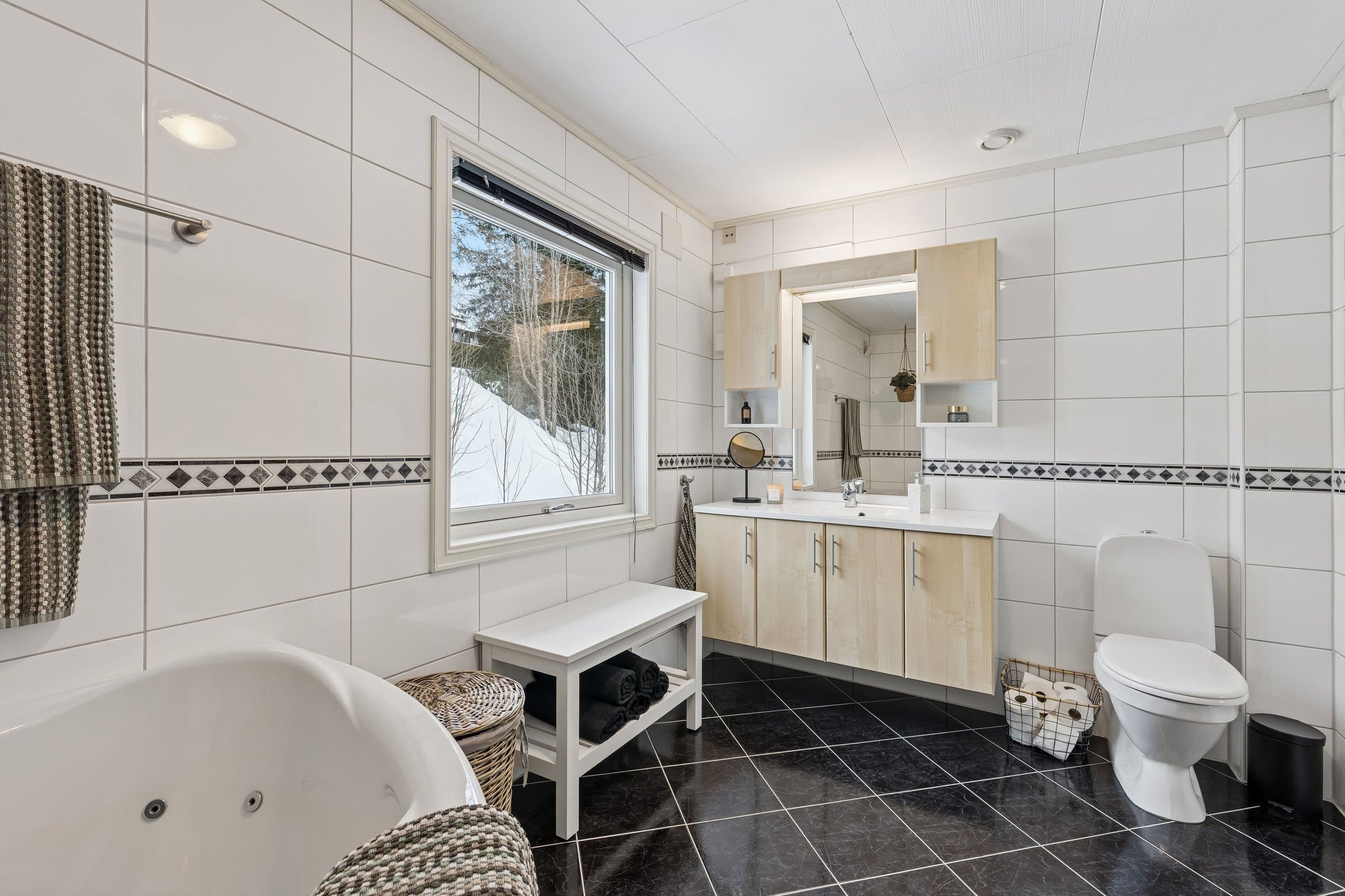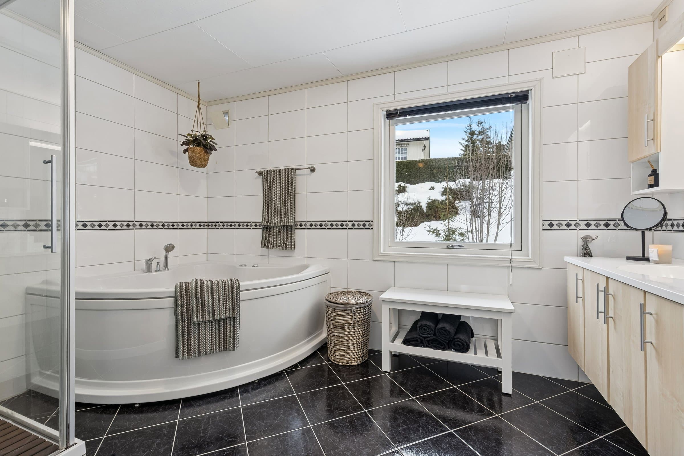 Eneboligen er lys og innbydende, med stor stue og åpen og luftig løsning. Tre soverom i hoveddel, to bad og en egen utleiedel med separat inngang. I hoveddelen finner man også en romslig stue med peis og utgang til flotte uteplasser, samt et stort kjøkken med gode arbeidsflater. Utleiedel inneholder stue og kjøkken i åpen løsning, bad og soverom. Leieinntekter som gir 8600,- pr. mnd. Ute finner du en opparbeidet hage, solrik terrasse, balkong og integrert garasje. To utvendige boder gir ekstra oppbevaringsplass.