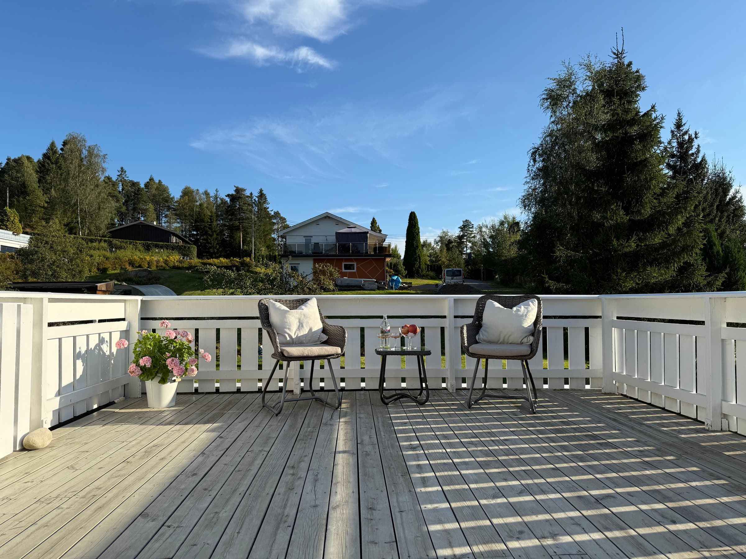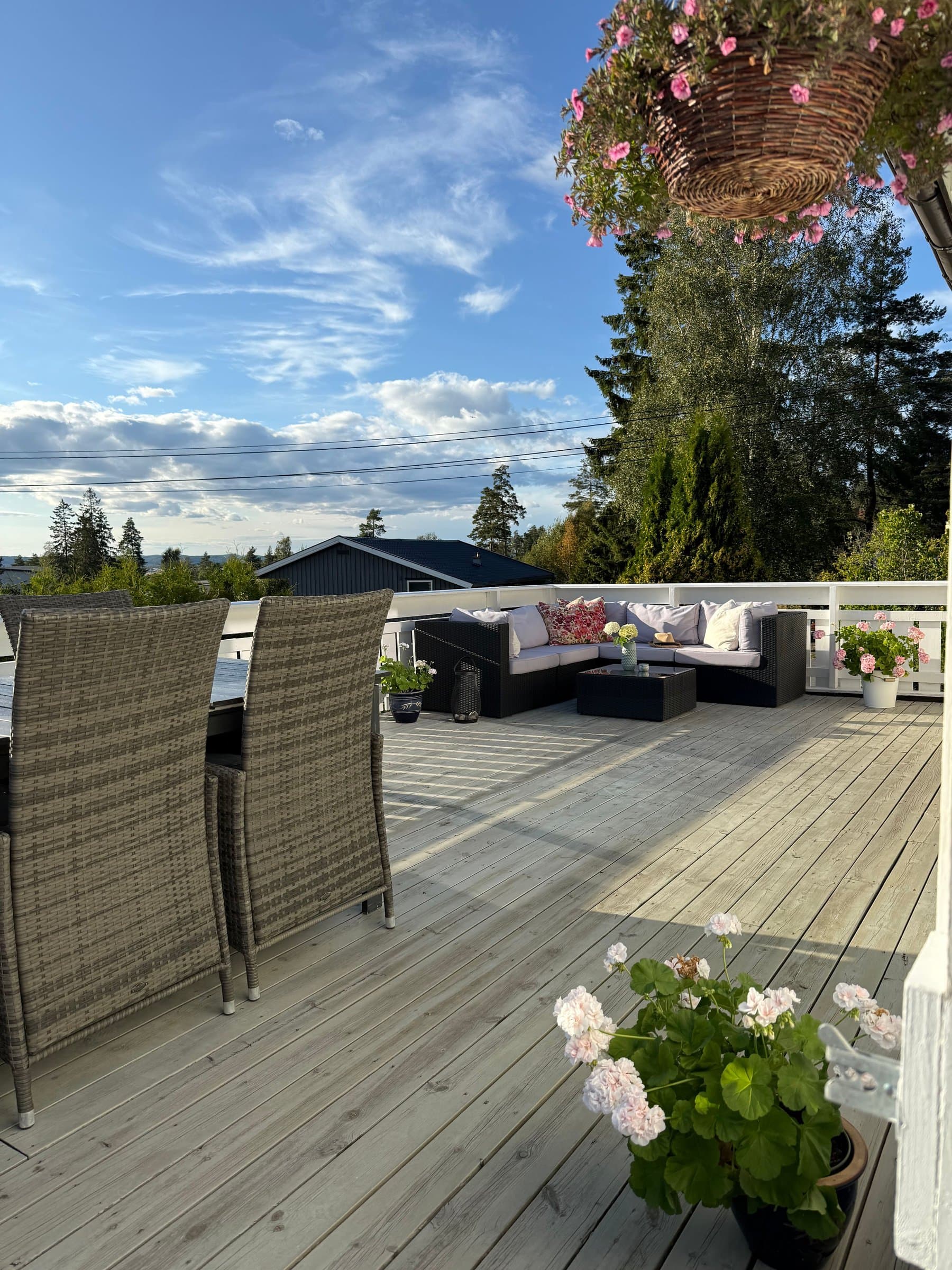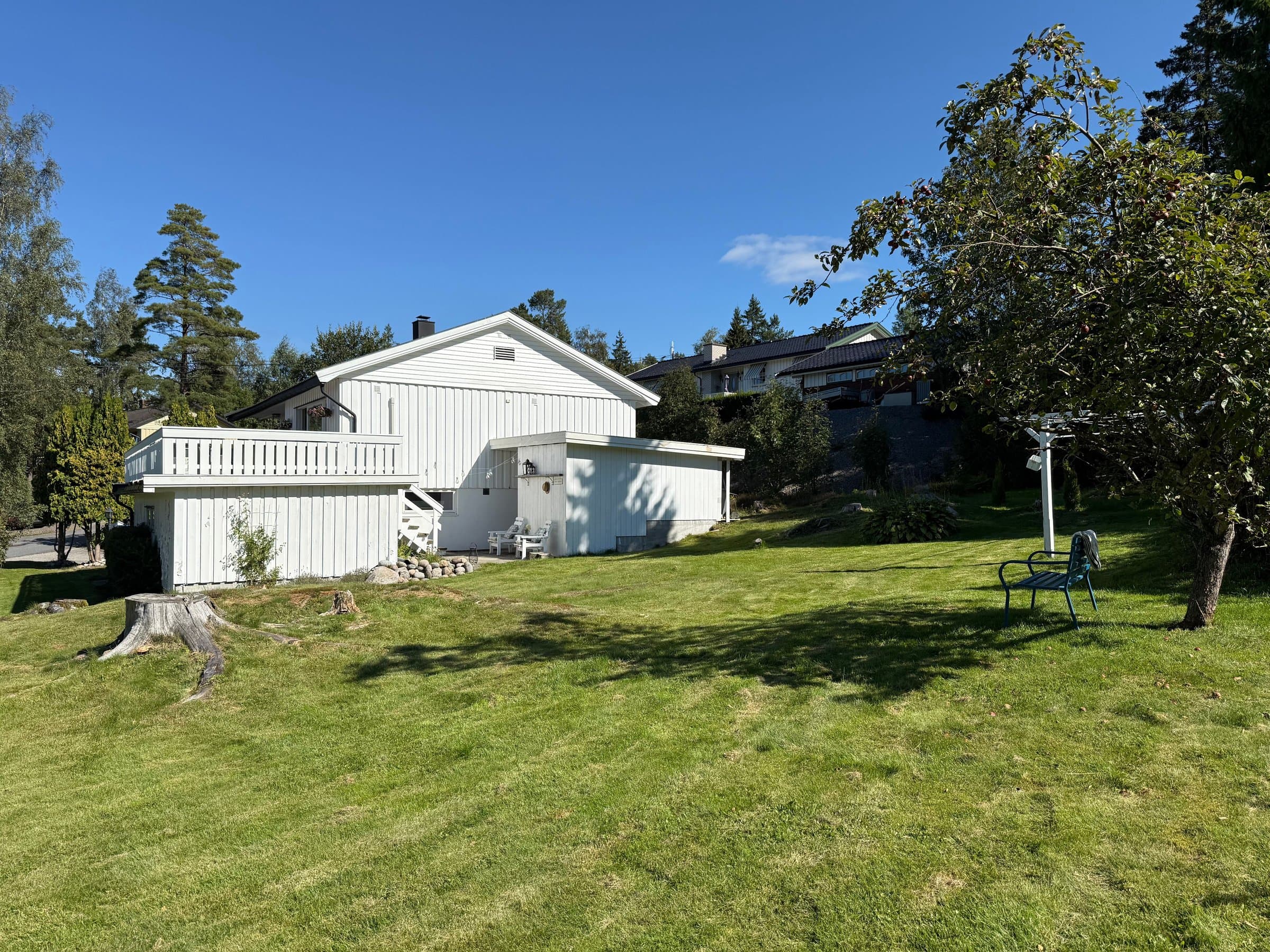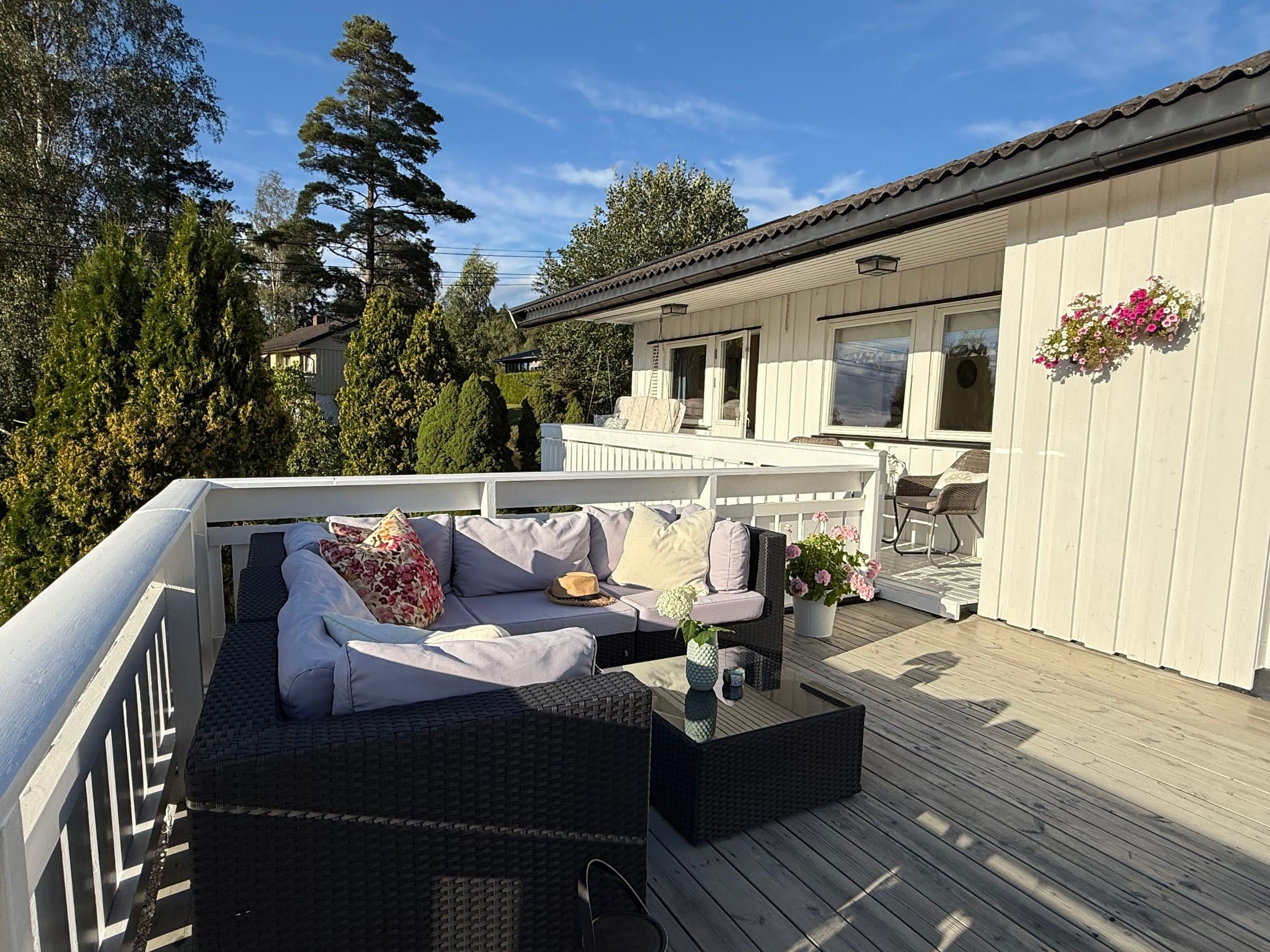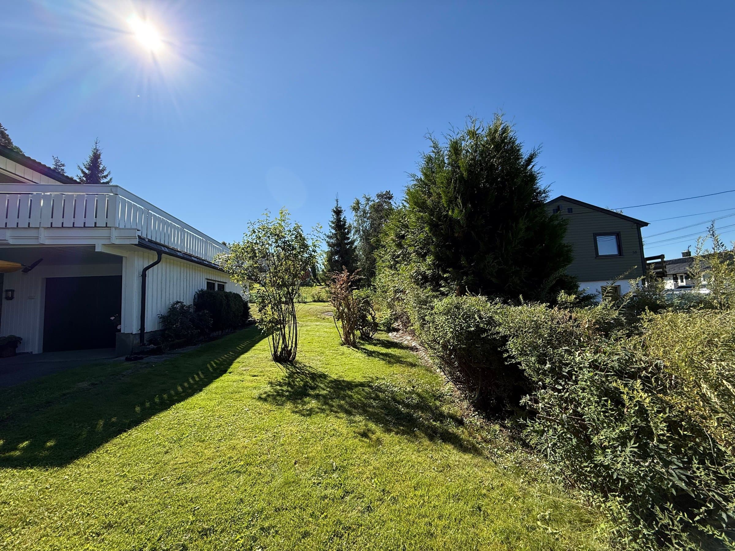 Meget sentrumsnær enebolig med godkjent utleiedel. Garasje og store uteplasser med sol fra morgen til kveld.