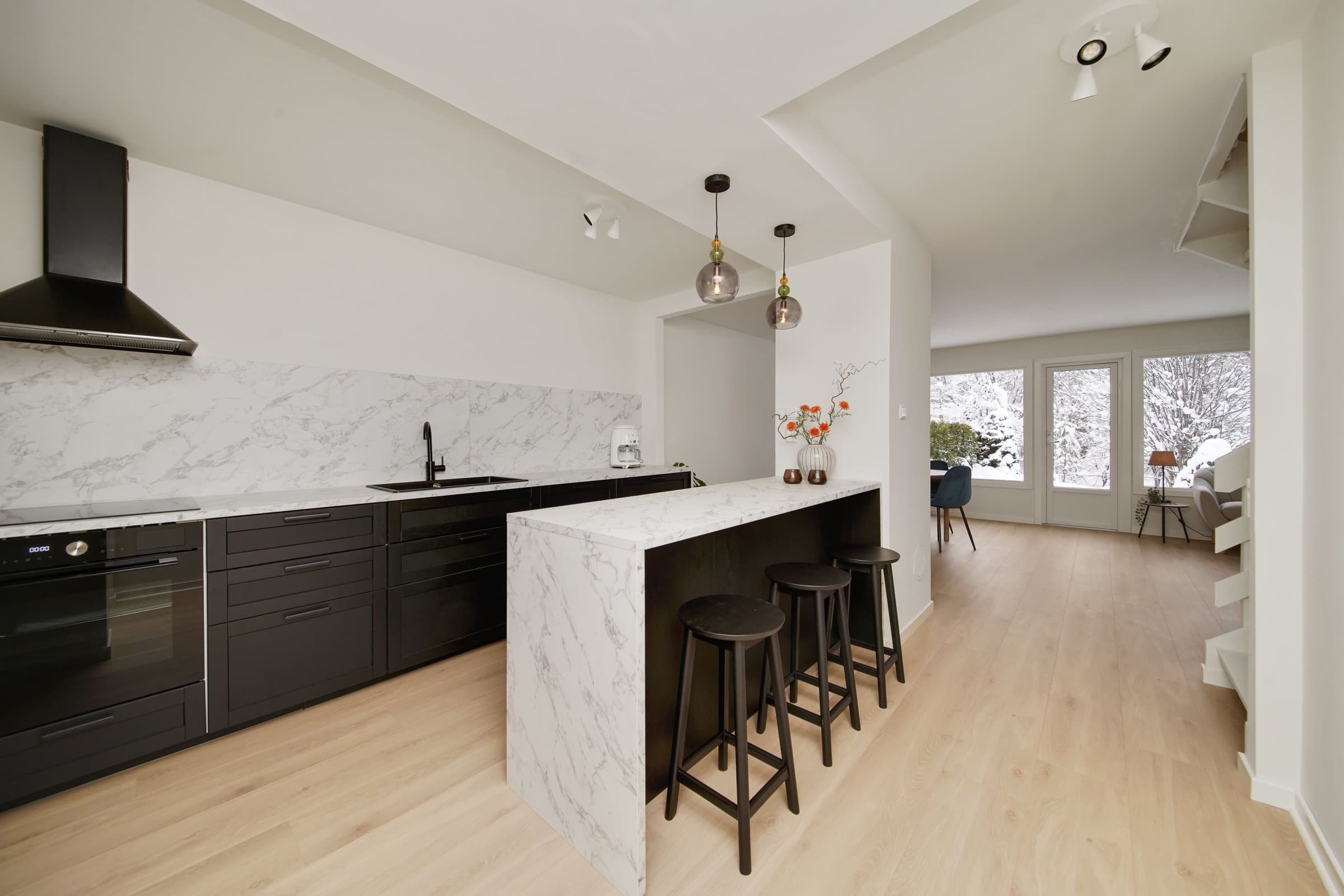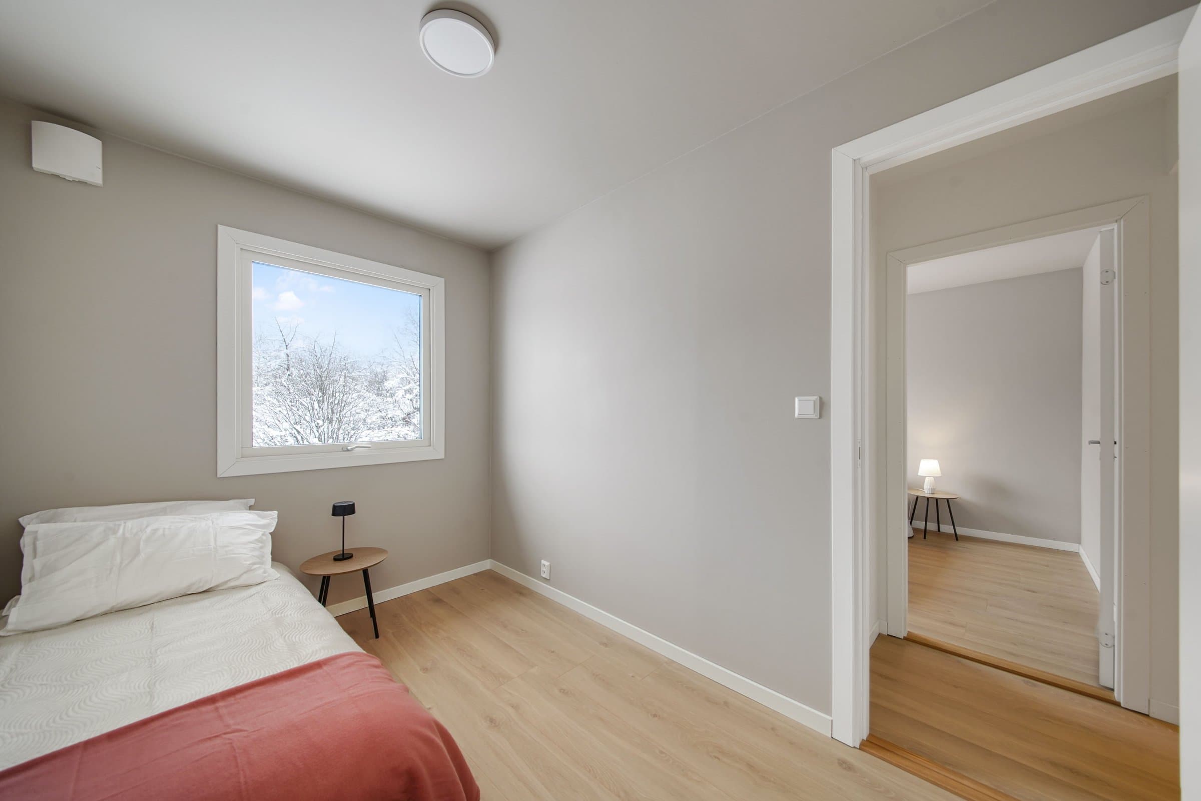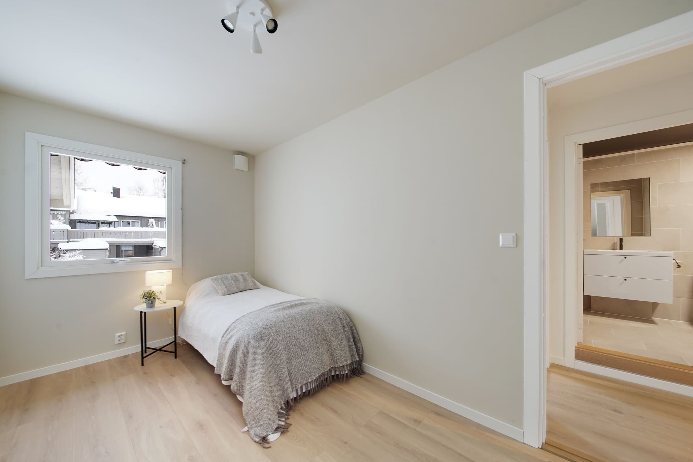Rekkehuset ligger i et fint og rolig borettslag på Gamlegrendåsen. Boligen er totalt oppgradert og ferdigstilt i 2026 og går over 2 etasjer. Innhold 1. etg: Romslig flislagt entré med god plass til garderobe/oppheng. Flislagt bad med varmekabler, dusj og opplegg for vaskemaskin og tørketrommel, samt ny varmtvannsbereder. Åpen stue/kjøkkenløsning med nytt kjøkken og integrerte hvitevarer. I stuen er det mulighet for å sette inn ovn/peis. Innhold 2.etg: 4 romslige soverom, gang og flislagt bad med varmekabler og dusj. Boligen er oppgradert og ferdigstilt i 2026 og er nå klar til innflytting: -Røranlegget er oppgradert til rør-i-rør system. -Ny varmtvannsbereder og nytt vanninntak er montert. -Det elektriske anlegget er betydelig oppgradert. -Det er montert ny varmepumpe. -Begge badene er bygget etter dagens standard, med nye sluk, membran og riktig fall. -Begge bad har flislagt både gulv og vegger, og all innredning er nytt. -Begge badene har nye varmekabler i gulv. -Det er satt inn helt nytt og større kjøkken med kjøkkentøy og nye hvitevarer. -Det er flislagt gulv i inngangsparti. -Stue, kjøkken og alle soverom har fått nytt laminatgulv fra Berry Alloc. -Alle vegger er helsparklet og malt for å få moderne slette flater. -Alle innerdører og karmer er skiftet ut. -Hele taket ble skiftet i regi av borettslaget (2018) -Alle vinduer og dører ble skiftet i regi av borettslaget (2018) Uteområdet består av to terrasser, en ved inngangspartiet og en utenfor stuen. Begge har fått nytt terrassedekke. I tillegg har boligen et lite gressareal foran terassene. I Thorstein Stenbeks vei kan du nyte solen fra tidlig formiddag til sen kveld. Boligen har også en utvendig bod for ekstra oppbevaringsmulighet. Det medfølger egen garasje i fellesanlegg, samt stor gjesteparkering. Takst/tilstandsrapport ligger i salgsoppgaven som du finner her i annonsen.
