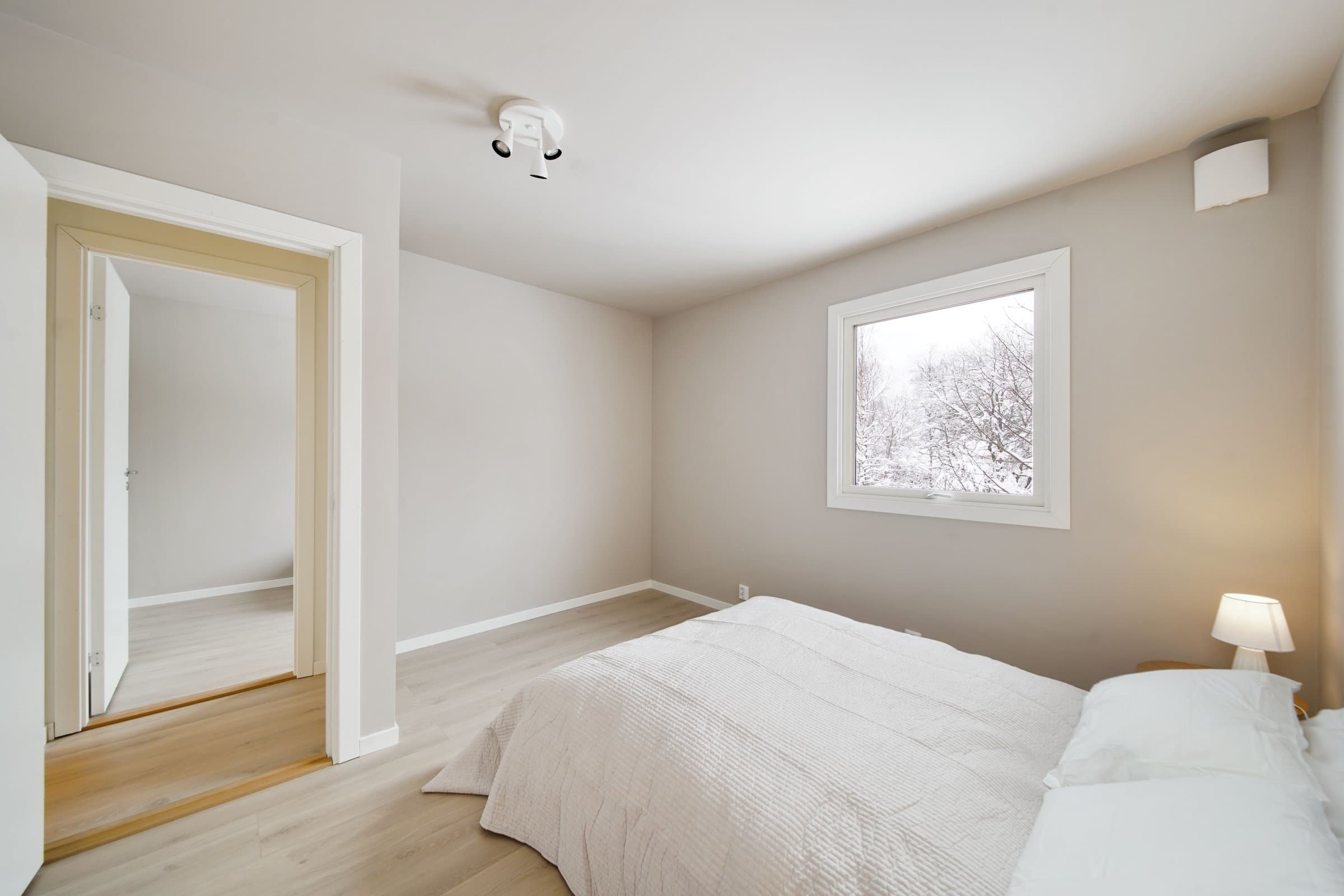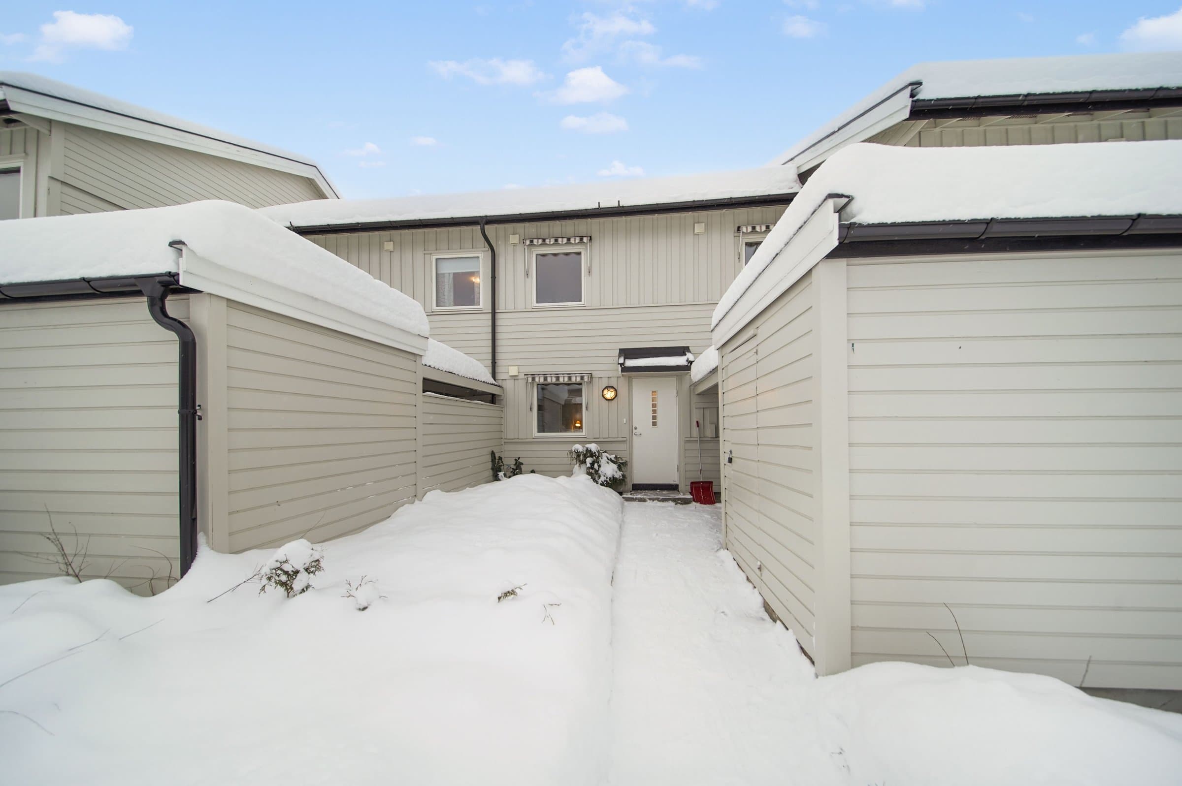 Rekkehus med 4 soverom og 2 bad i barnevennlig område med terrasser og garasje. Totalrenovert i 2026.