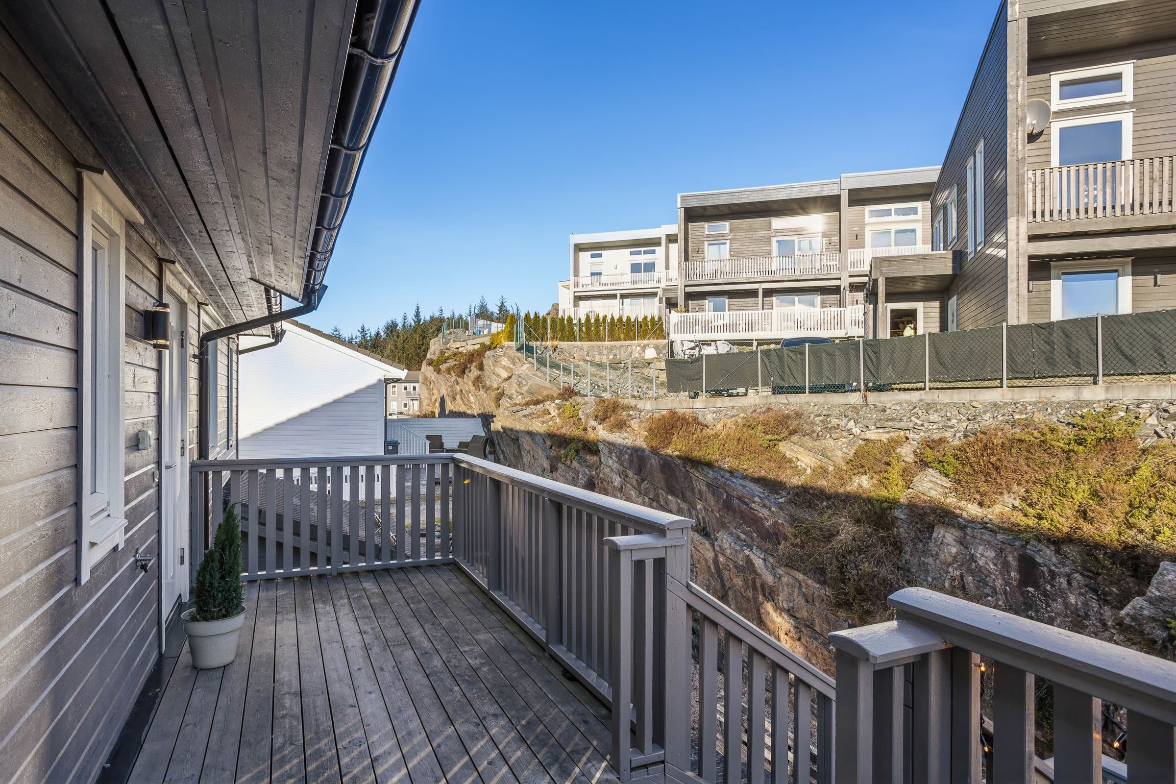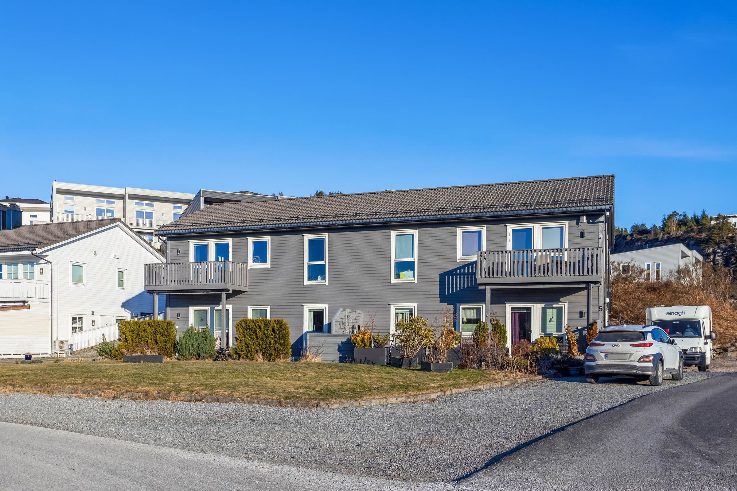 Engjamyra 5D ligger i et naturskjønt og attraktivt område i Klokkarvik, med svært gode muligheter for friluftsliv og rekreasjon året rundt. Like i nærheten finner du flotte turstier mot Kleppaksla og Veten, populære turmål som byr på nydelig utsikt over hav, fjord og omkringliggende landskap. Området har kort vei til sjø og kyst, med gode muligheter for bading, fisking, kajakkpadling og båtliv i sommerhalvåret. Det finnes også flere fine steder for strandliv, grilling og rolige kvelder i maritime omgivelser. Nærområdet byr på et variert nettverk av stier og småveier som egner seg godt for daglige turer, jogging og sykling, og naturen inviterer til aktive opplevelser i alle årstider. Det tar omtrent 12 minutter å komme til Skogsvåg, hvor det finnes blant annet butikker, helsestasjon og treningssenter. Dette er et barnevennlig område med gode oppvekstvilkår. Det er gangavstand til barne- og ungdomsskole, barnehage og butikk. Boligen har tilgang til kollektivtransport i form av buss og ferje med Skyss, som gir forbindelser videre inn mot Bergen-regionen og nærliggende områder. Det går flere lokale bussruter som 455, 454 og 420 via Klokkarvik og Skogsskiftet. Busstopp rett utenfor døren.