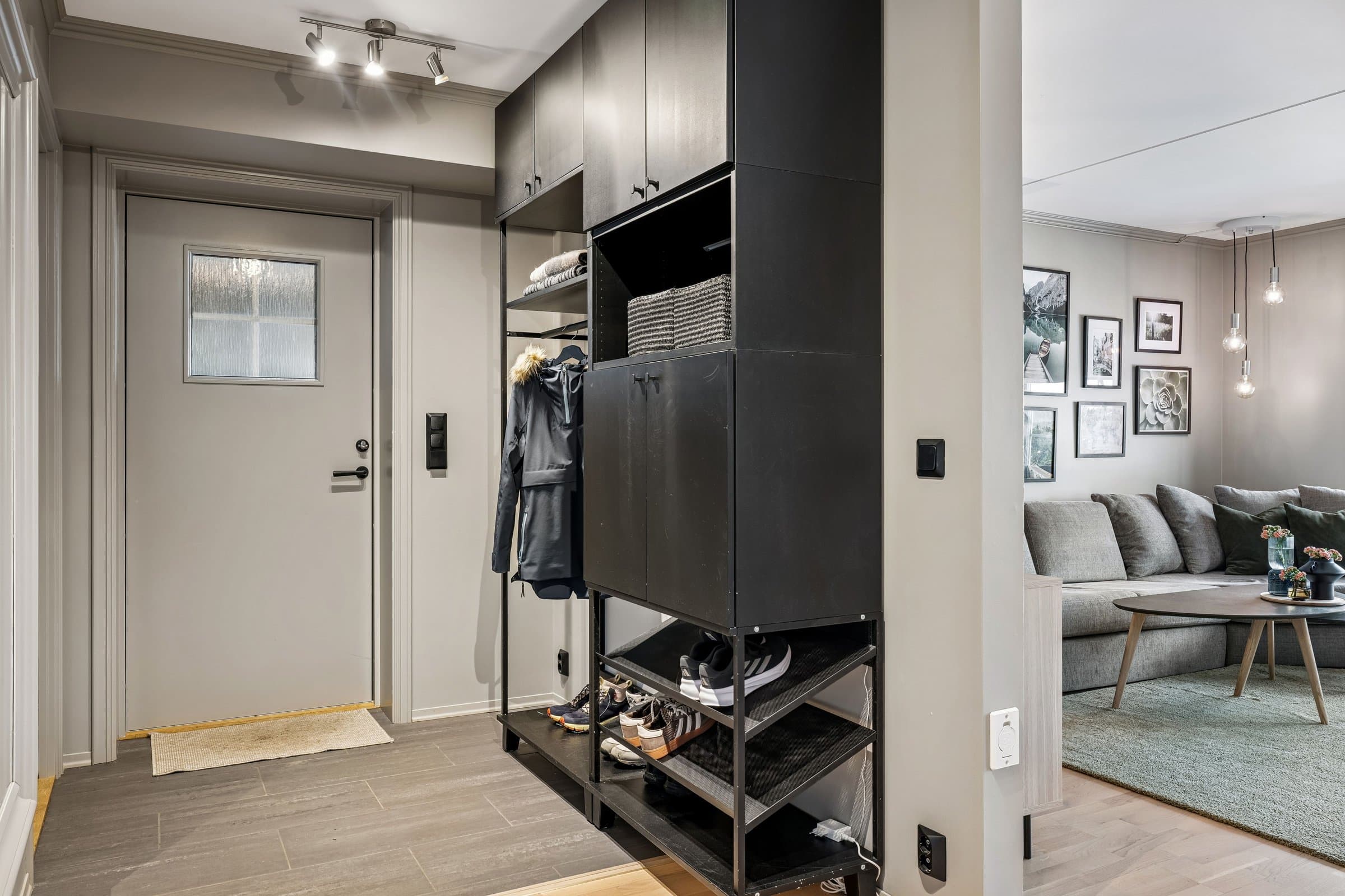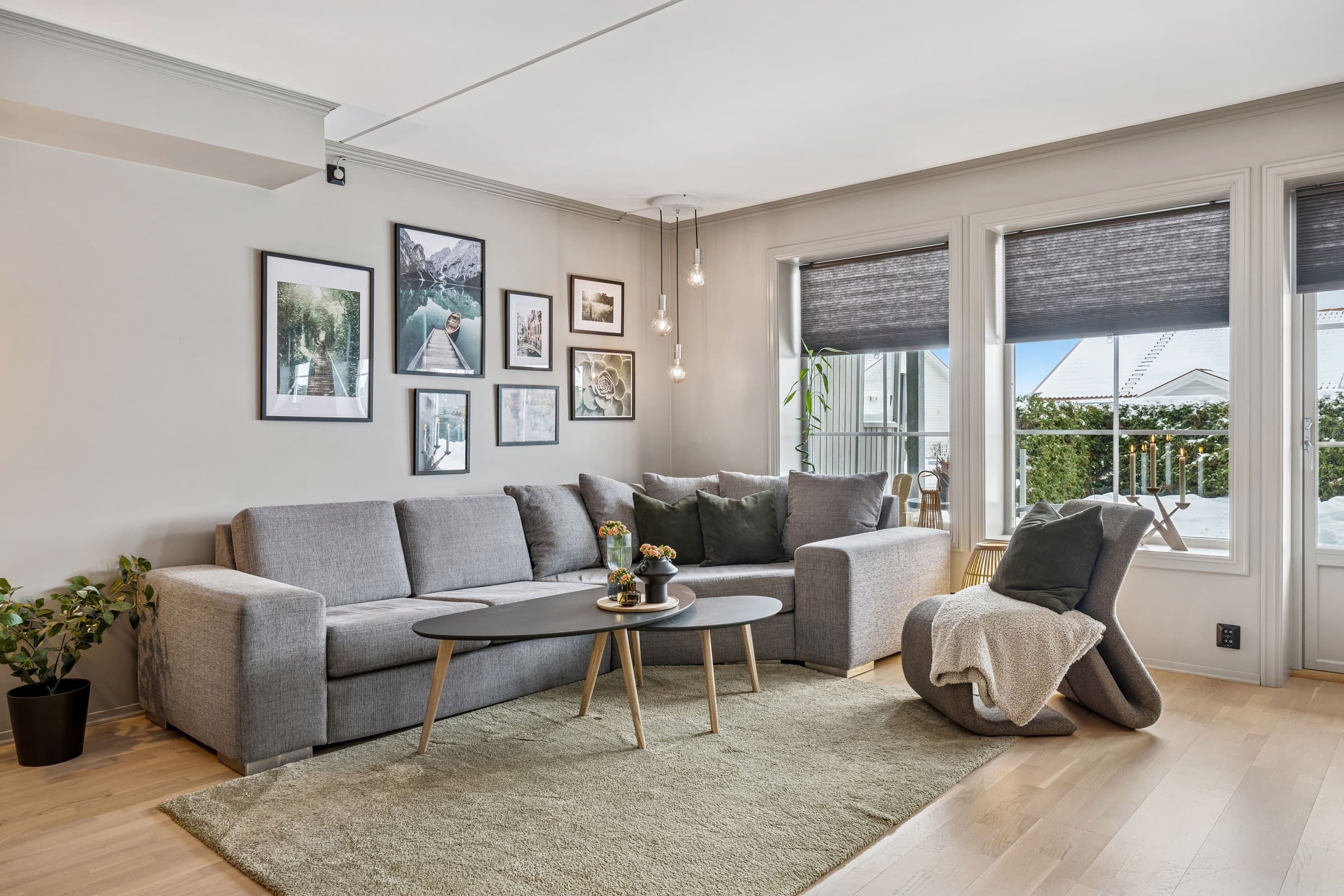 Velkommen til Hjortefaret 96 – en velholdt og moderne selveierleilighet fra 2016 med lave felleskostnader. Beliggende i populære og barnevennlige Rødsåsen i Undrumsdal. Boligen ligger praktisk til i 1. etasje og har en funksjonell planløsning med to soverom, eget vaskerom og gode oppbevaringsmuligheter – både inne og i romslig utebod tilknyttet carport. I carporten er det også installert elbillader. Leiligheten har en usjenert uteplass på terreng, belagt med betongheller og omkranset av gressplen og hekk som gir en privat og skjermet atmosfære. Her kan både små og store nyte rolige dager i grønne omgivelser. Den åpne stue- og kjøkkenløsningen gir en luftig og sosial romfølelse, med naturlig plass til spisebord mellom kjøkken og stue. Kjøkkenet er fra Huseby og har glatte fronter samt integrerte hvitevarer. Boligen fremstår med tidsriktige farger, malte gipsvegger, parkettgulv og himling i malt betong. Oppvarming skjer via elektriske varmekabler. Boligen har pipe samt balansert ventilasjonsanlegg som bidrar til et sunt og behagelig inneklima året rundt. Boligen passer utmerket for førstegangskjøpere, småbarnsfamilier og par – og egner seg også svært godt for eldre enslige eller par som ønsker en lettstelt bolig på ett plan i rolige og trygge omgivelser.