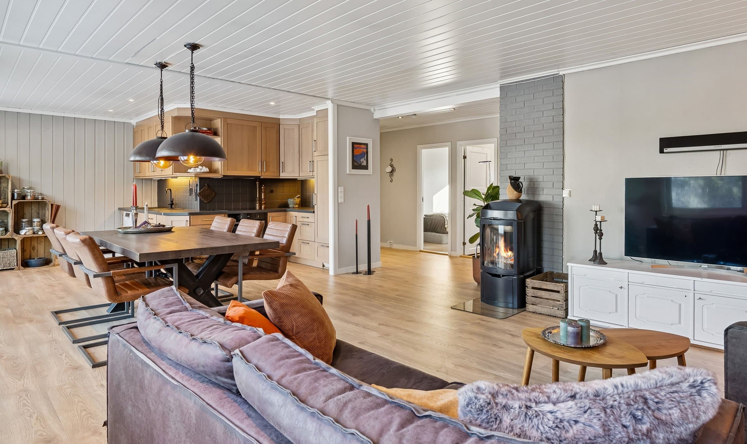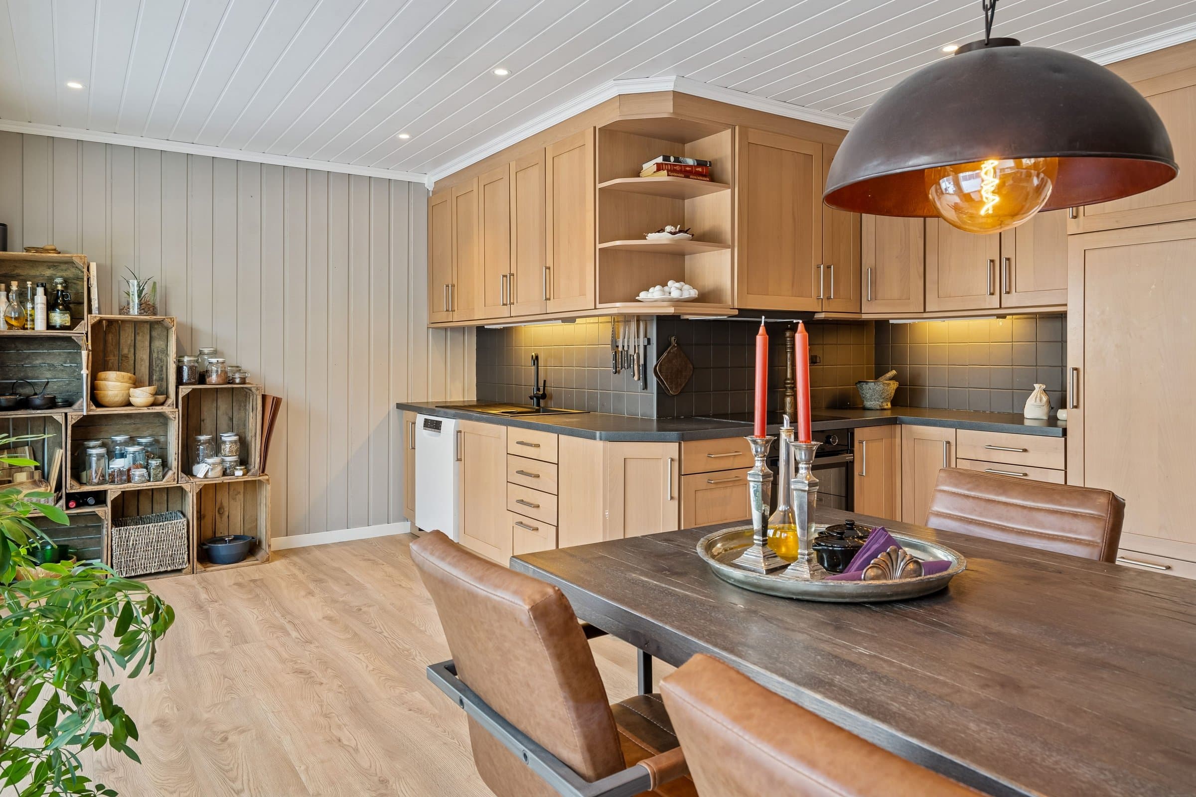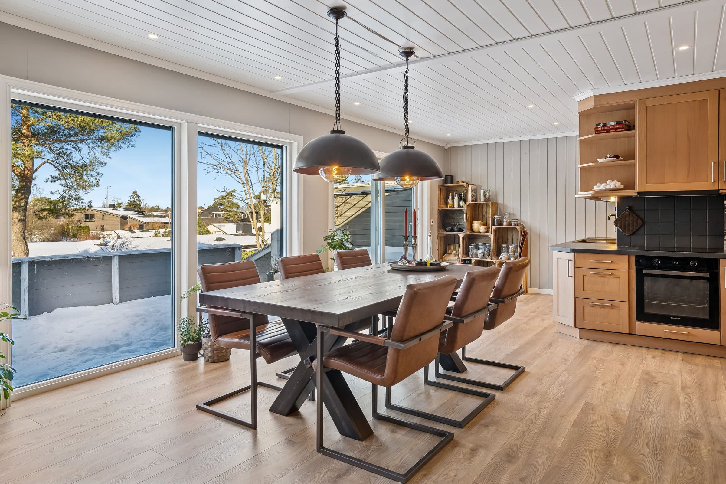 Lampene over spisebordet følger ikke med boligen.