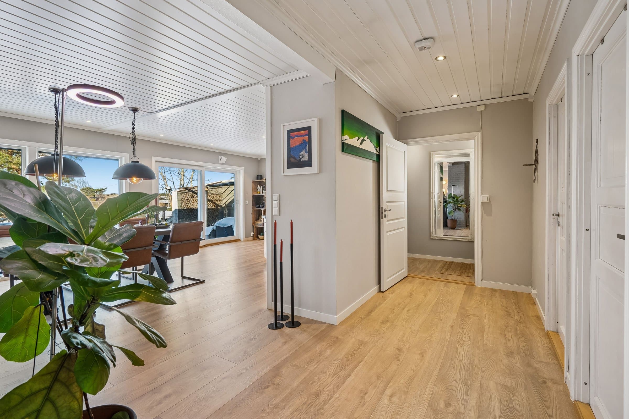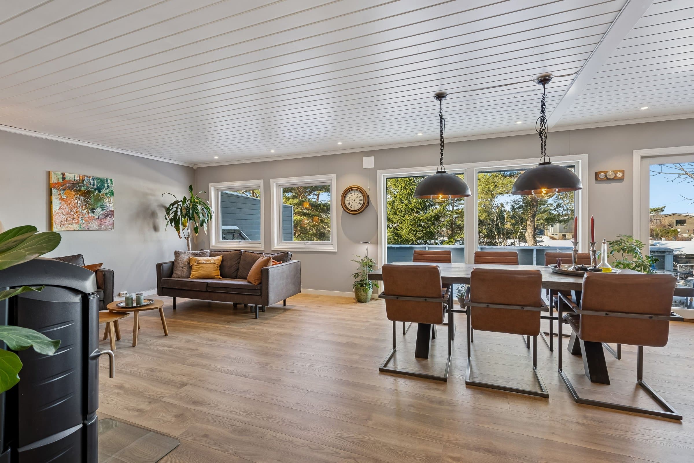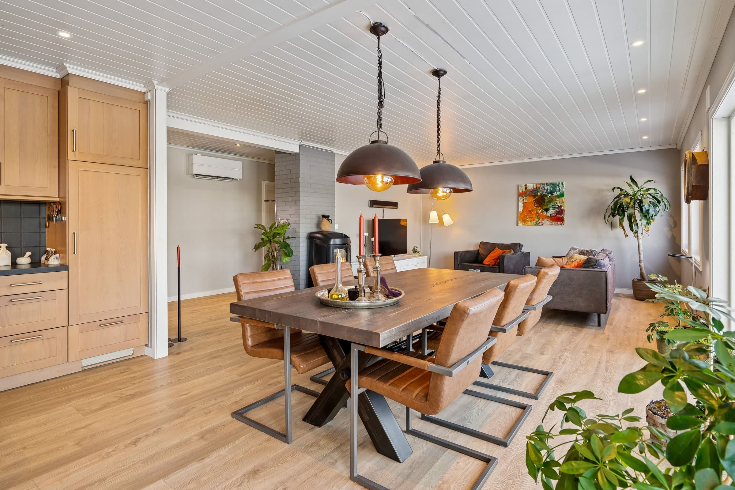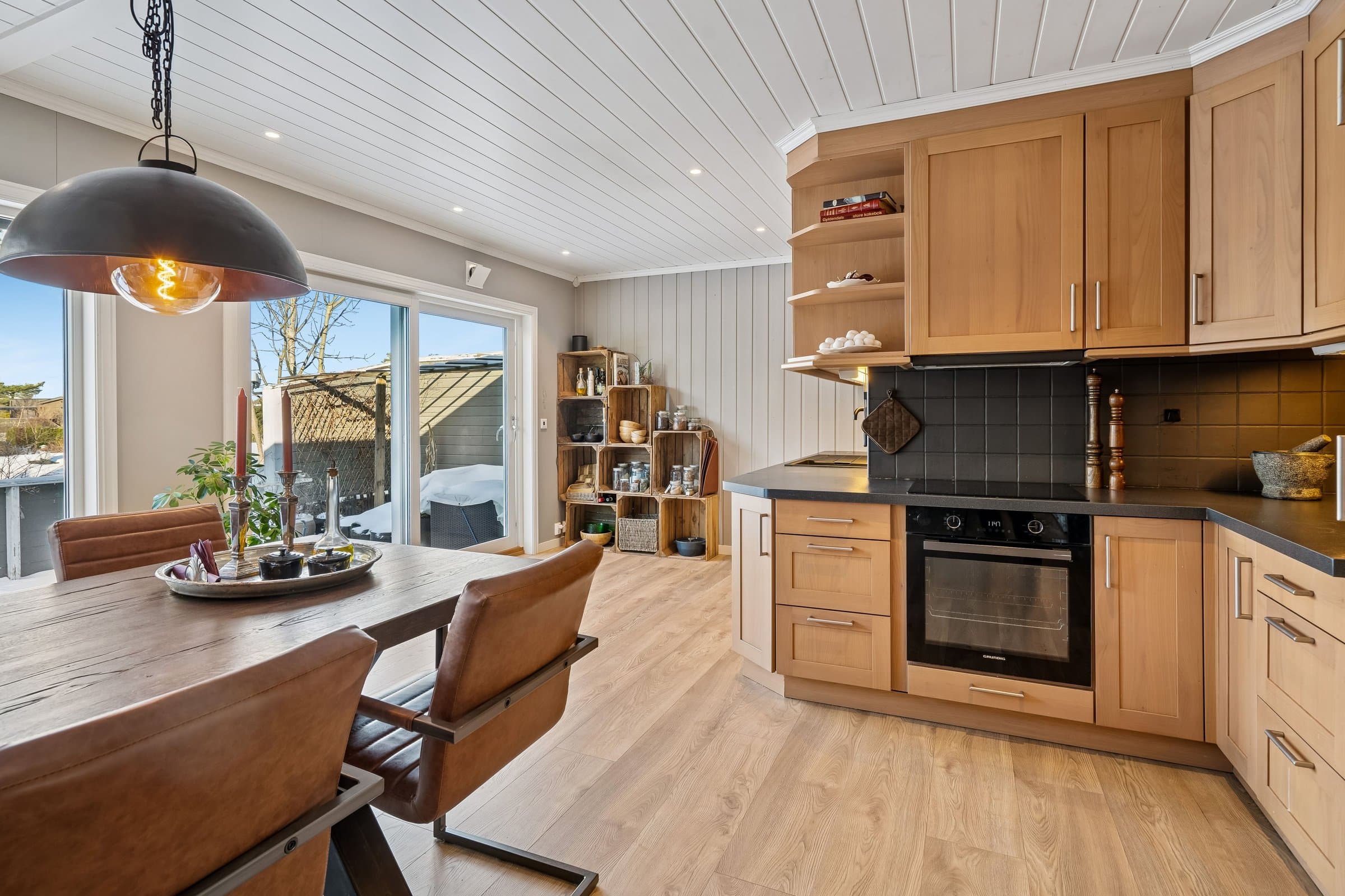 Lampene over spisebordet følger ikke med boligen.