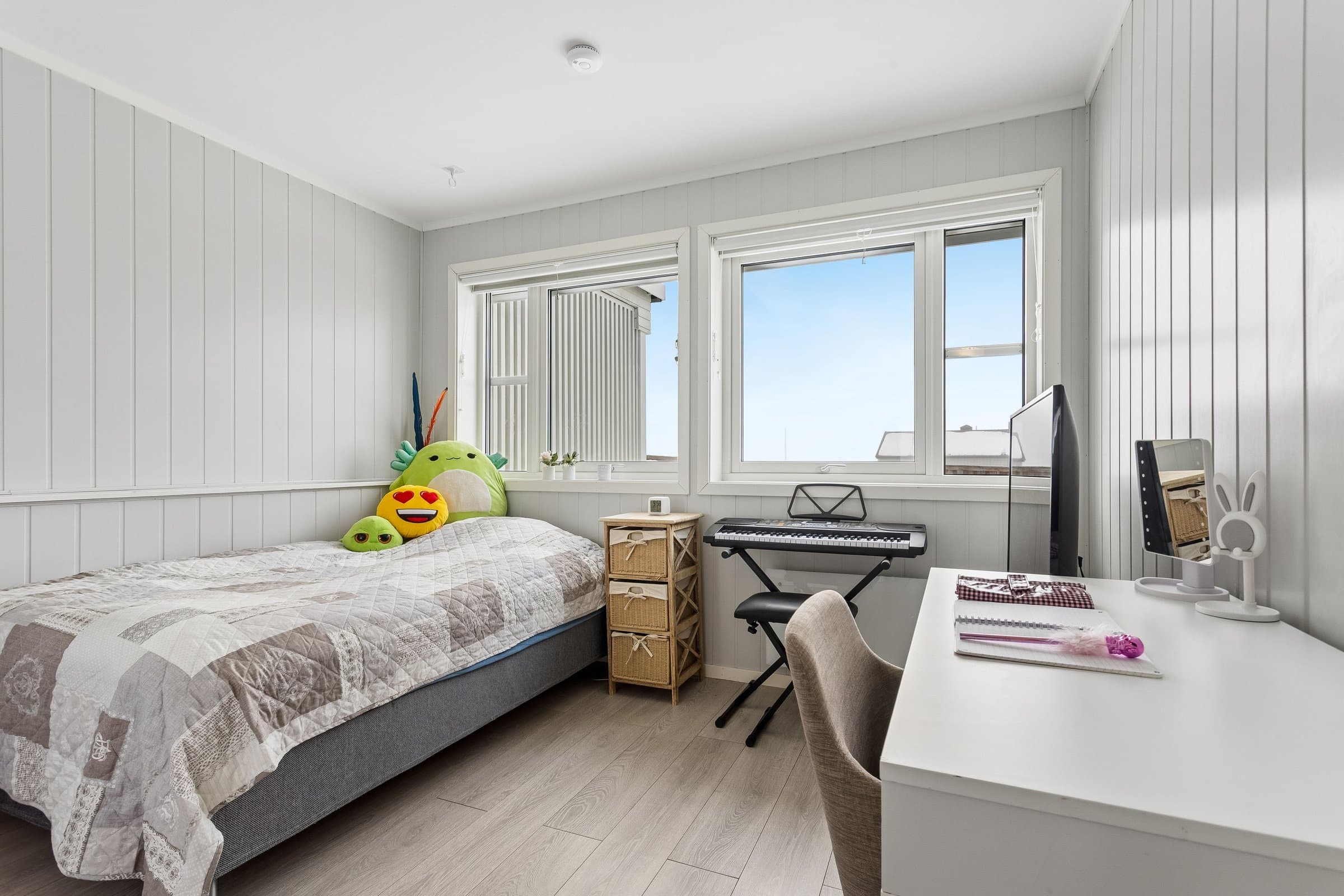 Velkommen til Heradsbygdveien 51, en mordene kjedet enebolig med gjennomgående høy standard, som består av: 1. etasje: •Gang • 3 soverom (det minste innredet som Walk-in-closet) •Teknisk rom/bod •Stue •Bad med dusj (benyttes i dag som vaskerom) 2. etasje: • Åpen stue- og kjøkkenløsning • Soverom med privat bad •Direkte utgang til romslig terrasse Utvendig: •Stor, solrik terrasse (ca. 49 m2) med nydelig utsikt mot Tyrifjorden og Norefjell • Liten hage foran og bak boligen • Integrert solskjerming på terrasse •Varm/kald vannkran med mulighet for tilkobling av avløp •Forsterket bod for plassering av jacuzzi •Carport med plass til to biler (asfaltert og isolert) •Elbillader (22 kW) og opplegg for ekstra lader •Sportsbod innerst i carport •Screens på alle frontvendte vinduer Alle vinduer har lameller eller plisségardiner. Alle elektriske koblingspunkt er oppgradert til Big Box med mulighet til Smarthus tilkoblinger.