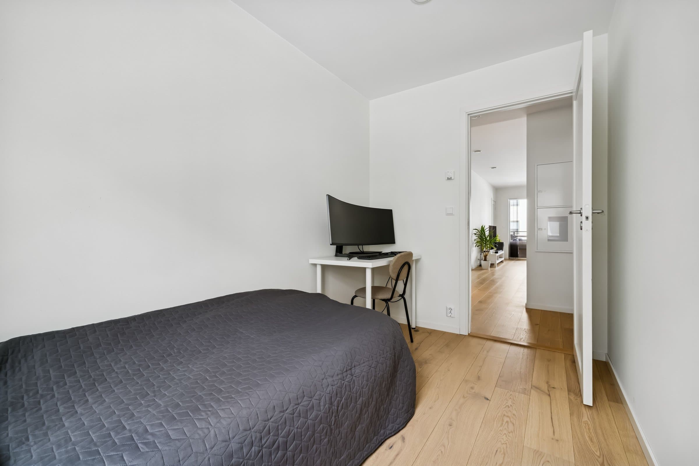 Flott 4-roms leilighet beliggende i 2. etasje med mulighet for kjøp av garasje. Leiligheten har en gjennomtenkt og effektiv planløsning, og fremstår som tilnærmet ny. Her får du en moderne bolig med høy standard og nybygggaranti til 2028. Leiligheten inneholder entré, bad, tre gode soverom og åpen stue-/kjøkkenløsning. Fra stuen er det utgang til en stor, sydvestvendt terrasse med sol fra tidlig formiddag til sen kveld i sommerhalvåret – perfekte forhold for lange, hyggelige sommerkvelder. Det medfølger en praktisk sportsbod på 5 kvm i kjeller. Kort vei til flotte turområder og skiløyper om vinteren – her bor du med nærhet til både natur og byliv. Felleskostnadene inkluderer blant annet bredbånd (kr 299), a konto energi (oppvarming og varmtvann, kr 617), a konto vann og avløp (kr 539,-), samt øvrige felleskostnader som kommunale avgifter, forsikring, drift og vedlikehold, vaktmestertjenester m.m. Høydepunkter: - 3 soverom - Utbyggergaranti til 2028 - Heis - Kun TG1 - Balansert ventilasjon - Vannbåren gulvvarme - Sportsbod i kjeller - Kjøkken med integrerte hvitevarer fra Siemens - Downlights i gang og bad - Stor, solrik terrasse med både morgen- og kveldssol - Lekre fliser på bad - Fritt utsyn og luftig bebyggelse - Felles sykkelbod - Høyhastighets bredbånd - Fremstår som ny Garasje med lader kan kjøpes i tillegg for kr 450 000,–. Felleskostnader for garasje og bod utgjør kr 300,- i måneden. Velkommen til visning!