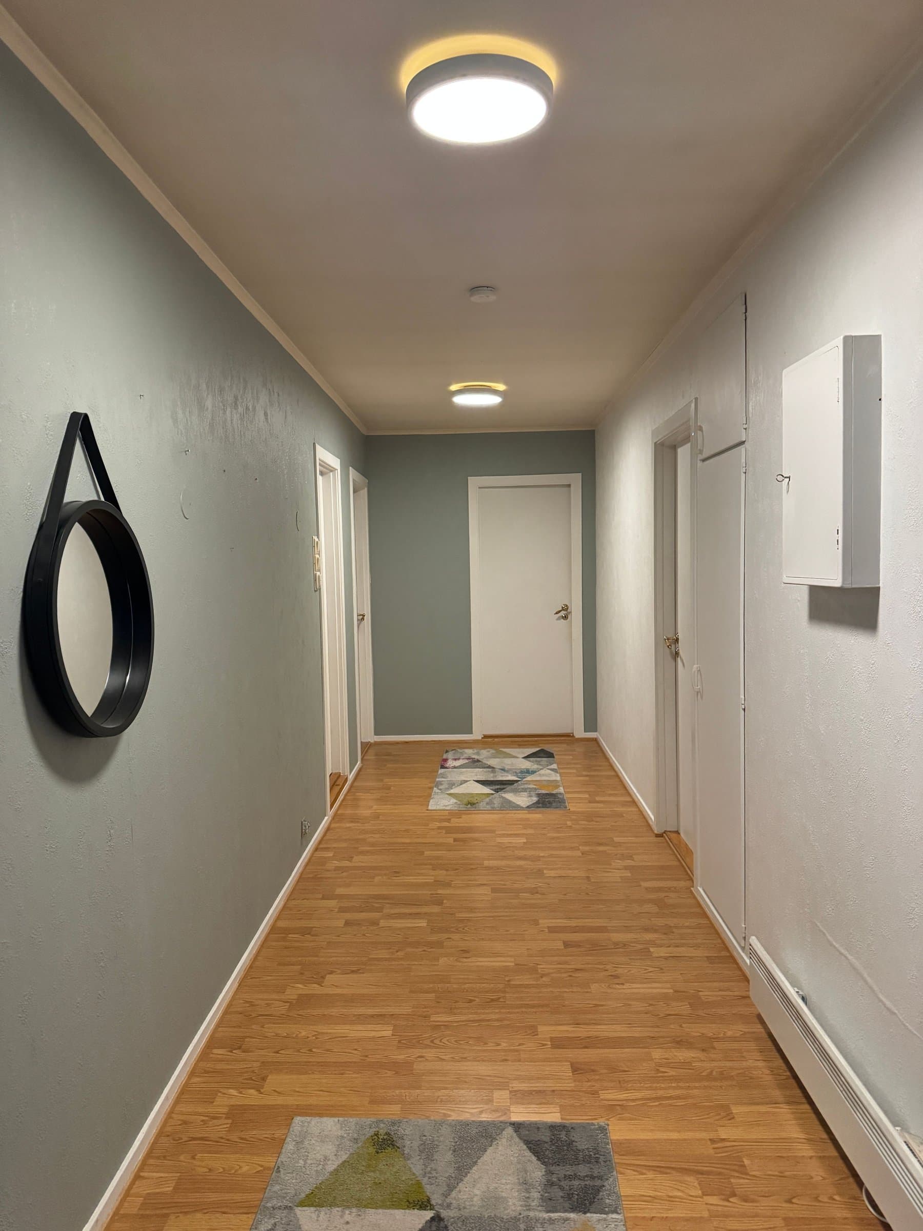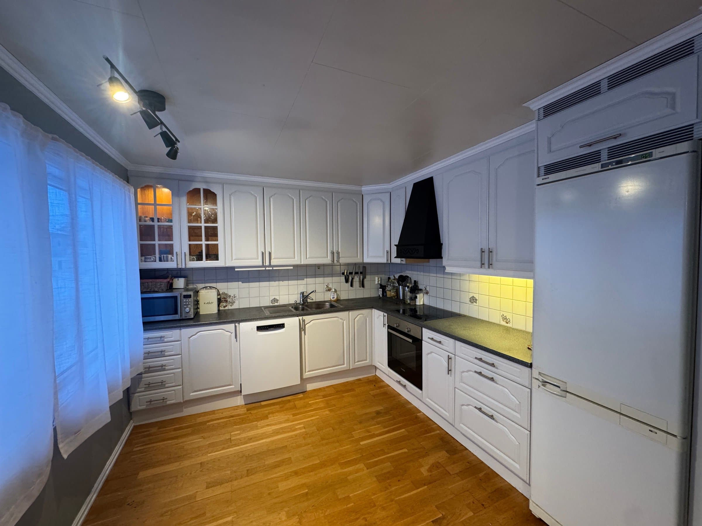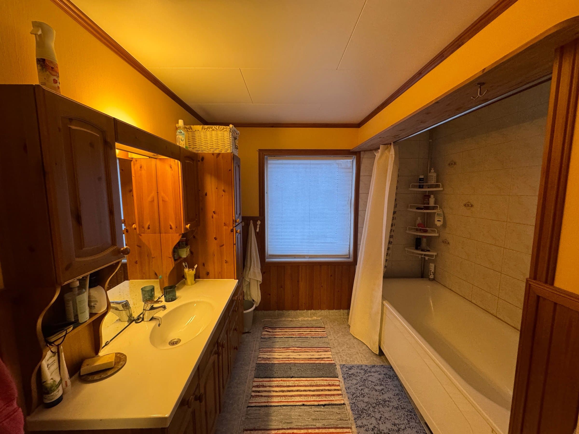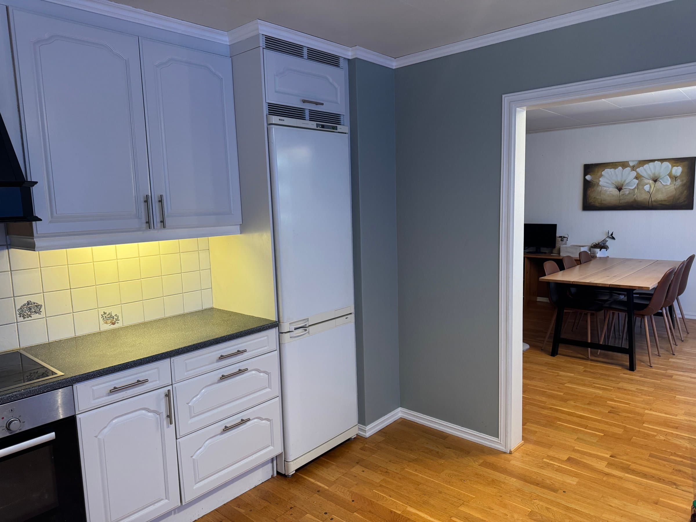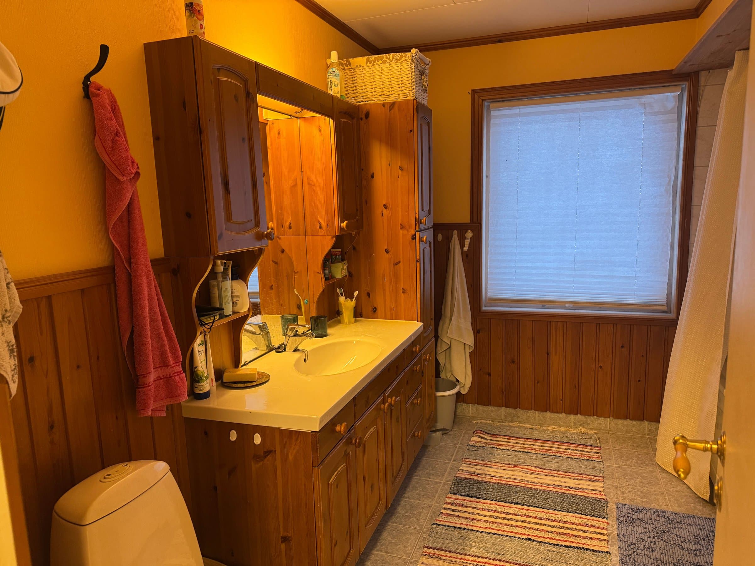 Boligen er delt inn i to enheter, en liten leilighet nede og en stor oppe. Leiligheten nede har to soverom, kjøkken, stue, bad og bod. Her kan du bo billig, da leiligheten nede genererer gode leieinntekter. Leiligheten er i dag utleid, og muligheter for videre utleie. Ny avtale tegnes mellom kjøper og leietaker. Du kan flytte rett inn, eller du kan renovere boligen til dagens standard, alt etter hva du ønsker. Boligen har et stort loft med mange muligheter. Boligen ble malt utvendig i 2025. Takst foreligger i annonsen. Garasje trenger renovering.