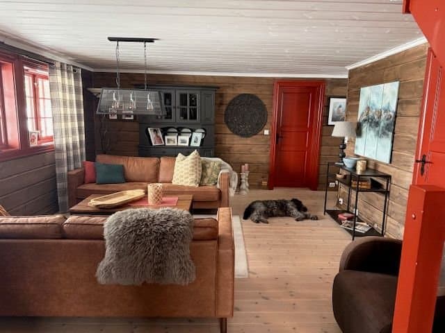 Nydelig 6-roms hytte, nær skiløype og alpinanlegg. Bilvei frem til hytta. Idyllisk beliggenhet!