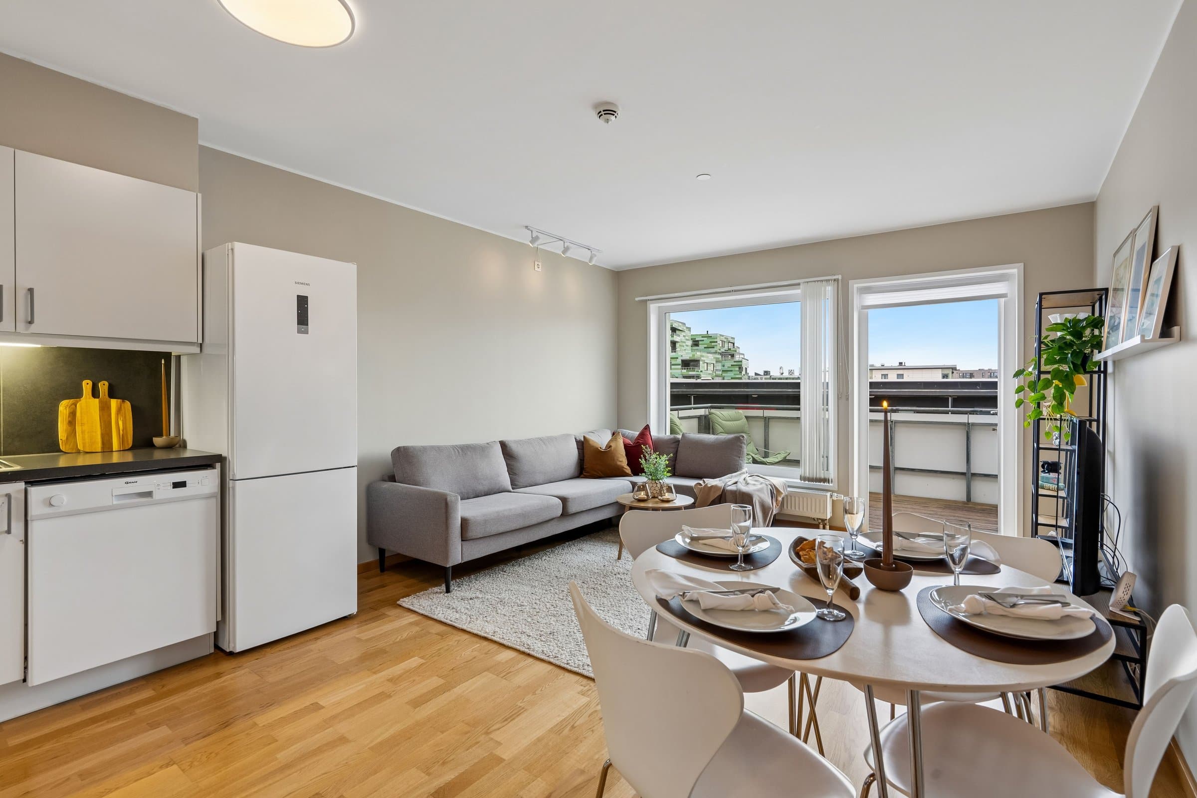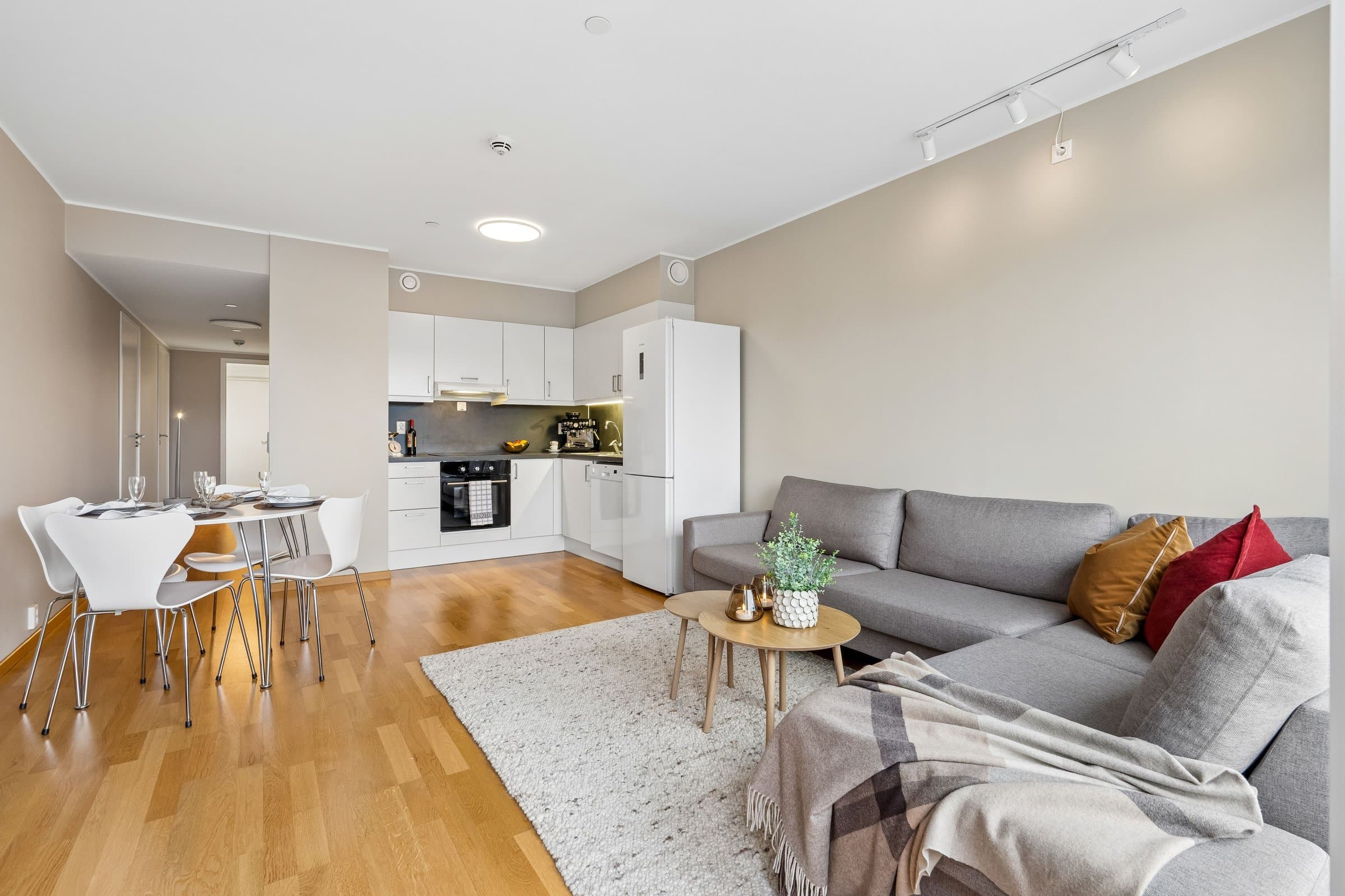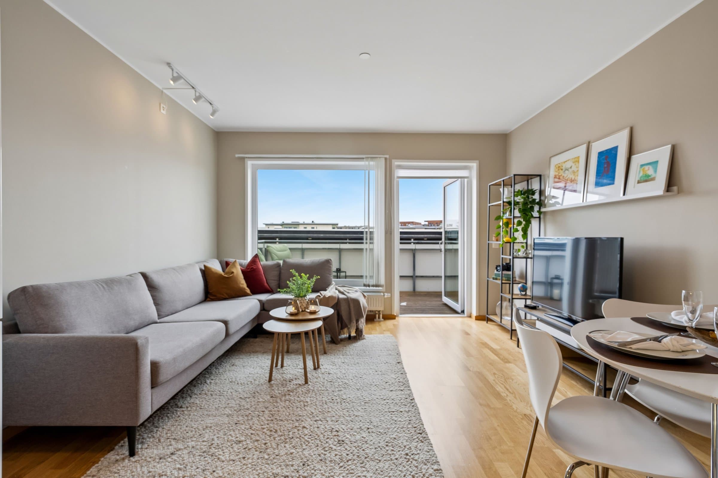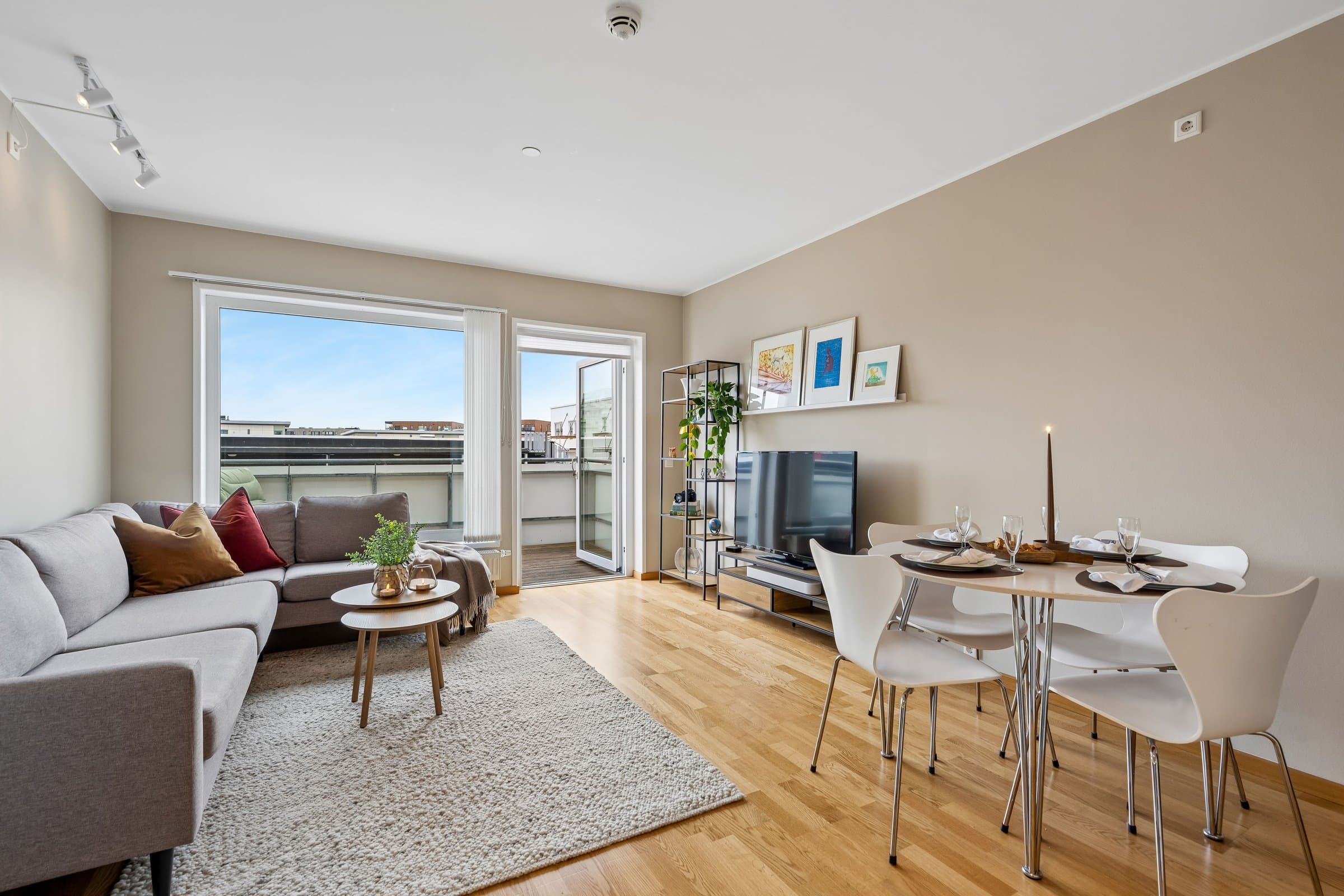 En innbydende og stilren 3-roms selveierleilighet på attraktive Sjøsia. Leiligheten ligger i toppetasjen med tilhørende veldig god utsikt over naboblokkene mot fjellene på Malangshalvøya i sør og mot Fløya/Bønntuva mot øst. Veldig lite innsyn fra nysgjerrige naboer og ingen trinnlyd fra etasjen over. Boligen holder god standard med en funksjonell planløsning, tidsriktige materialvalg og moderne uttrykk. Her får du en lys og innbydende leilighet som oppleves både romslig og komfortabel. Oppvarming, varmtvann og bredbånd er inkl. i lave felleskostnader så andre kostander minimeres. Fra leiligheten har du kort gangavstand dagligvarebutikker, apotek, sentrum og rekreasjonsområder som Telegrafbukta og lysløypa. En bolig som passer perfekt for deg som ønsker både kvalitet, stillhet og nærhet til byens fasiliteter. Velkommen!