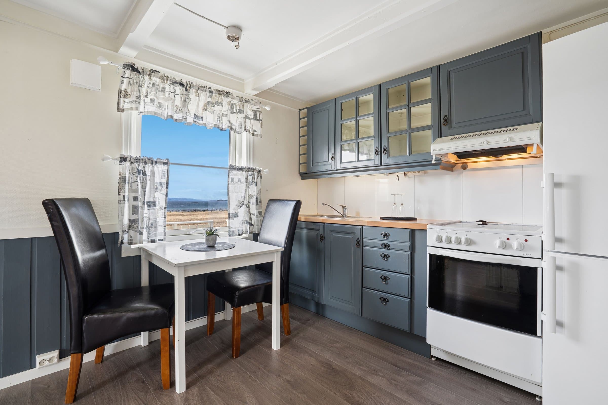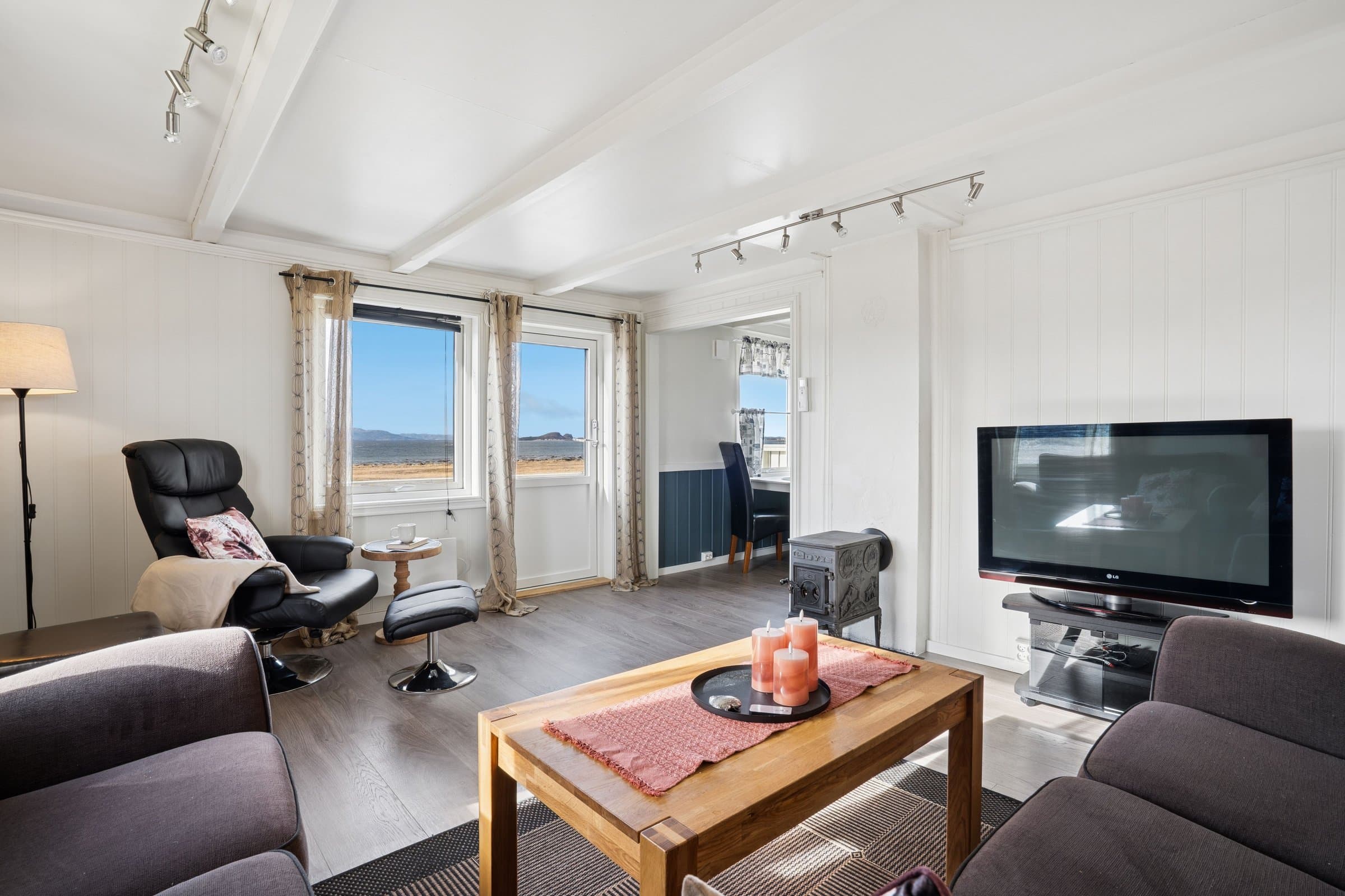 Drømmer du om sjøutsikt? Kompakt og innholdsrik enebolig med sørvendt veranda! Velkommen til en bolig der beliggenheten er i fokus. Her våkner du til synet av sjøen rett utenfor vinduet. Denne eneboligen på 66 kvm over to etasjer (pluss kjeller) byr på en unik mulighet for deg som vil bo sentralt, men med følelsen av frihet og luft. Perfekt som førstegangskjøp. Planløsning: Boligen er smart utnyttet over to plan. I andre etasje finner du to soverom i en praktisk rekke – ideelt som kombinert soverom og kontor eller walk-in closet. Kjelleren er uinnredet og gir gode lagringsmuligheter eller potensial for videreutvikling.