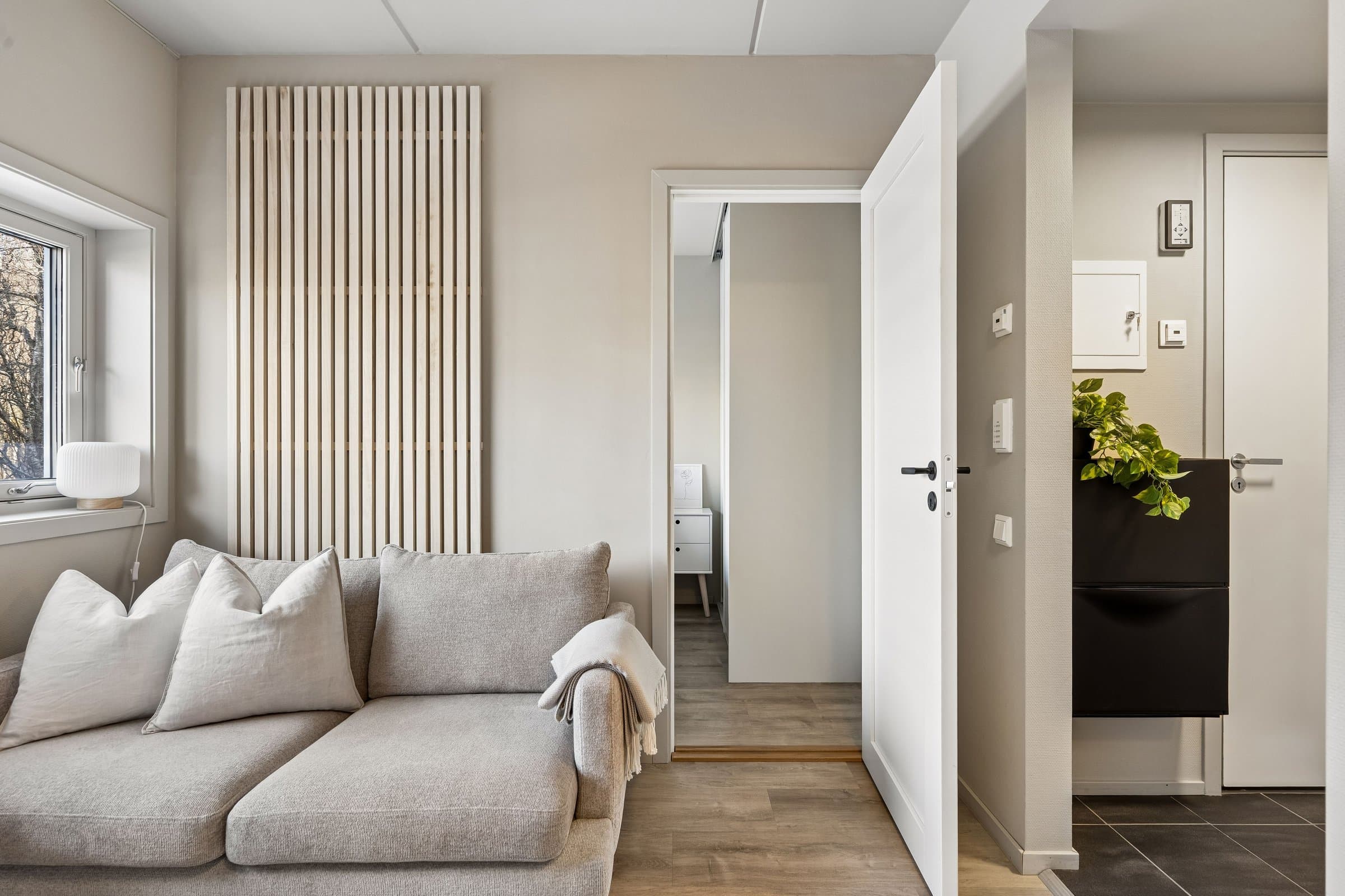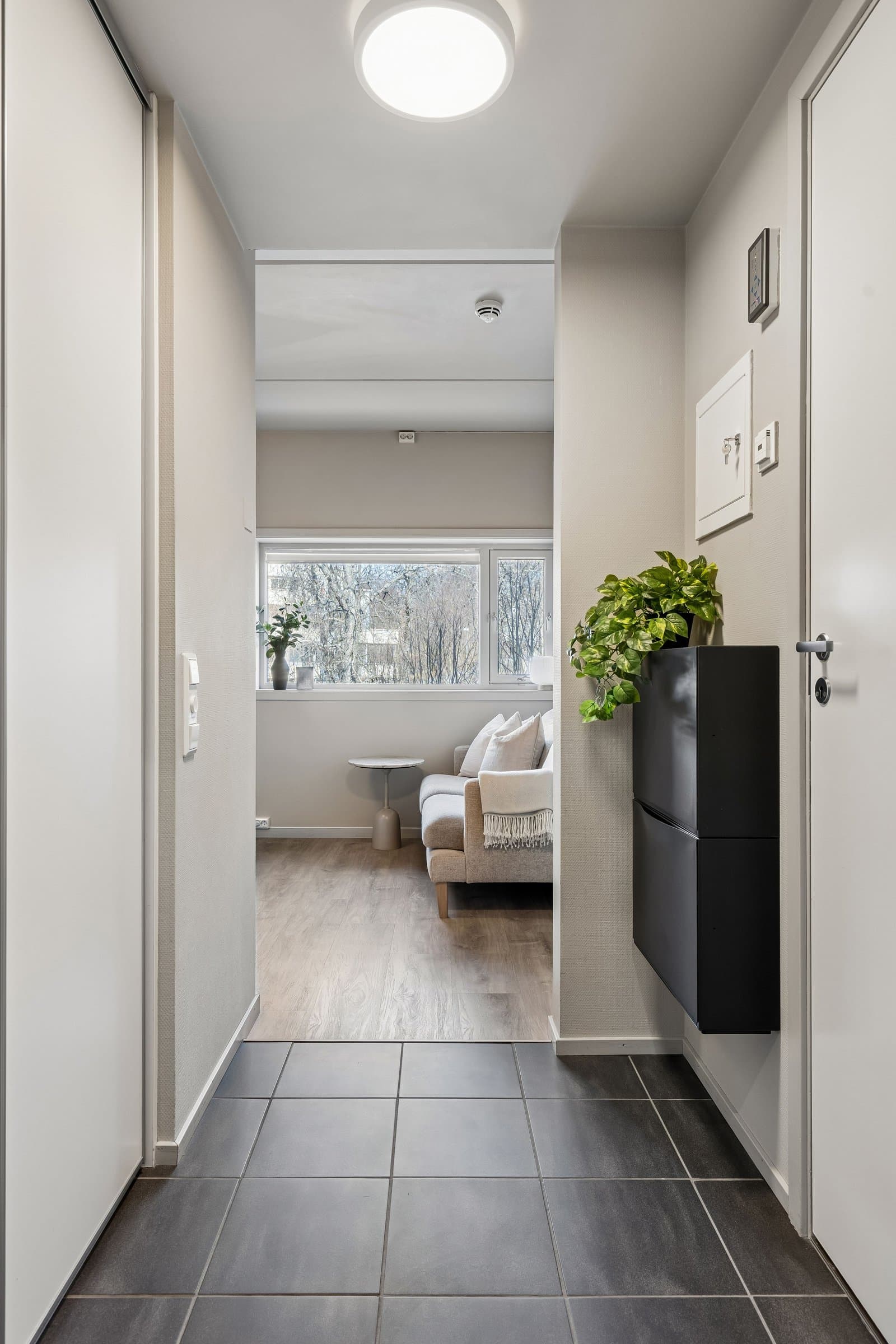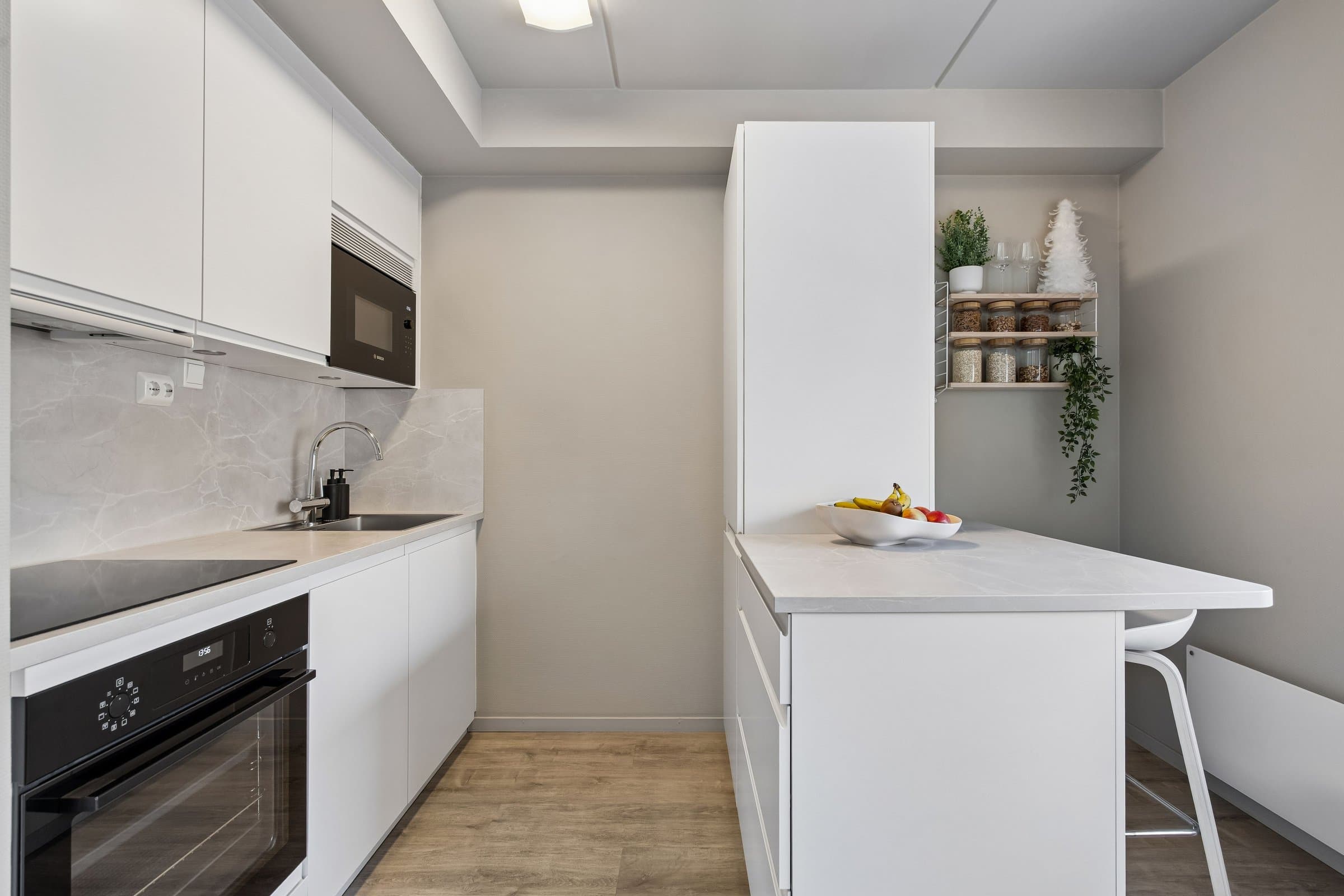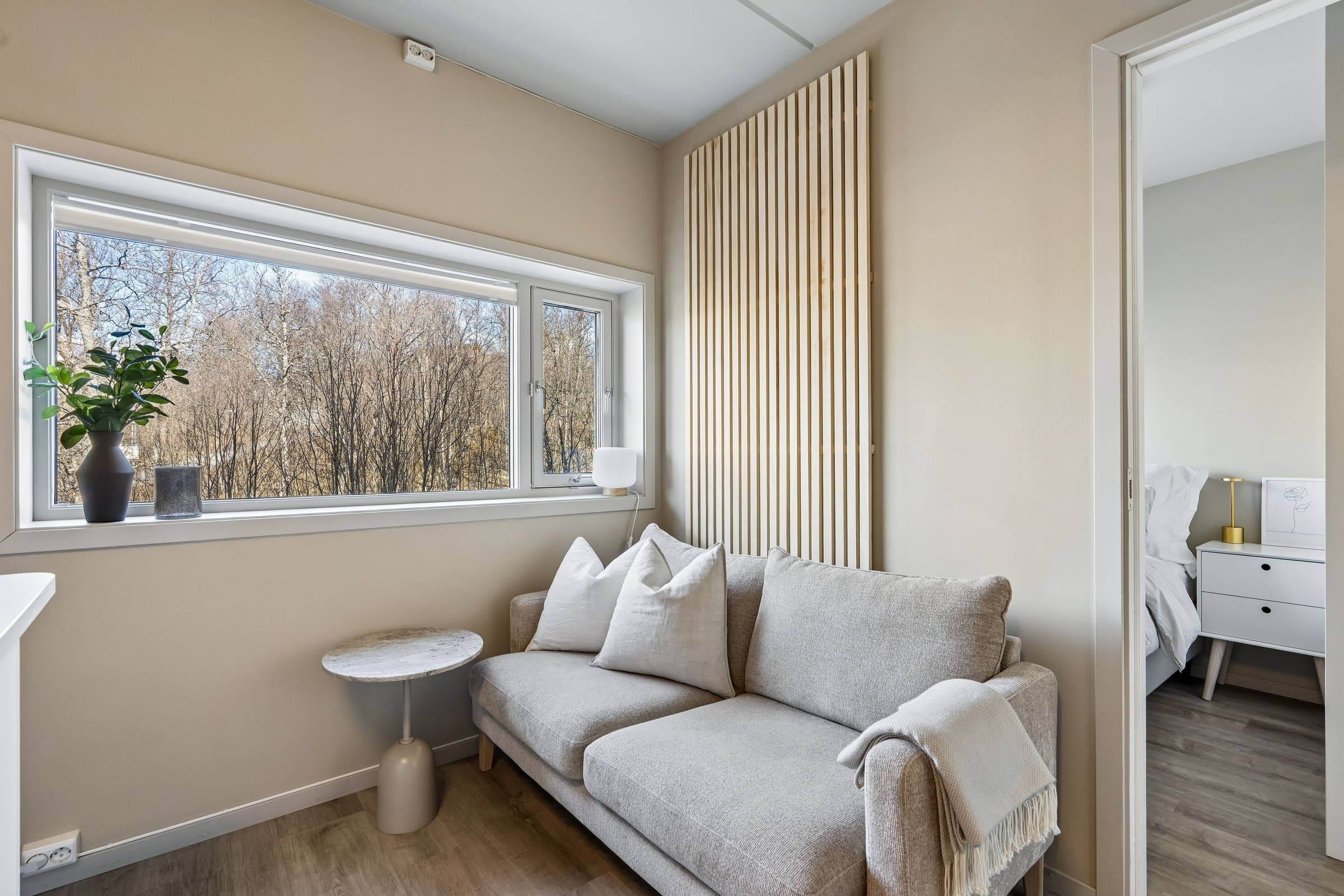 Velkommen til Wanny Woldstads veg 129 – en oppgradert og arealeffektiv 2-roms leilighet i 3. etasje med attraktiv beliggenhet på Fagereng. Kort oppsummert • Oppgradert 2-roms leilighet • Kjøkken fra 2023 med kjøkkenøy, spiseplasser og integrerte hvitevarer • Eget soverom • Nytt gulv i stue, kjøkken og soverom • Malte overflater • Garderobeløsninger fra Elfa • Praktisk oppbevaringsnisje med Elfa-system • Effektiv planløsning (26 m² BRA) • Heis i bygget • Stor bod i innendørs bodanlegg • Innendørs sykkelparkering • Lave felleskostnader • Fastrente på fellesgjeld: 2,88 % • Busstopp rett utenfor boligen • Direkte buss til UiT, UNN, Jekta og sentrum • Ca. 4 minutter til lysløypa • Kort vei til matbutikk, treningssenter og skole Leiligheten fremstår som oppgradert, moderne og arealeffektiv, med en planløsning som utnytter kvadratmeterne godt. Boligen inneholder oppholdsrom med åpen kjøkkenløsning, eget soverom, bad og gode oppbevaringsmuligheter. Kjøkkenet er fra 2023 og har kjøkkenøy samt integrerte hvitevarer. Kjøkkenøyen gir gode arbeidsflater og fungerer også som spiseplass med sitteplasser, noe som utnytter rommet på en smart måte og bidrar til en sosial og praktisk løsning i oppholdsrommet. I stue, kjøkken og soverom er det lagt nytt gulv, og overflater er malt, noe som gir boligen et lyst og oppdatert preg. Soverommet er separat fra oppholdsrommet og har garderobeløsning fra Elfa som gir gode oppbevaringsmuligheter. Leiligheten har også en praktisk oppbevaringsnisje med Elfa-system som bidrar til en ryddig og funksjonell løsning i en arealeffektiv leilighet. Leiligheten ligger i et bygg med heis og har i tillegg tilgang til en stor bod i innendørs bodanlegg. Det er også innendørs sykkelparkering i bygget, og gratis gjesteparkering. Boligen passer godt for førstegangskjøpere, studenter eller som pendlerbolig, med en effektiv planløsning og sentral beliggenhet på Tromsøya. Leiligheten fremstår som oppgradert og innflyttingsklar. Deler av møblementet kan eventuelt medfølge etter nærmere avtale.