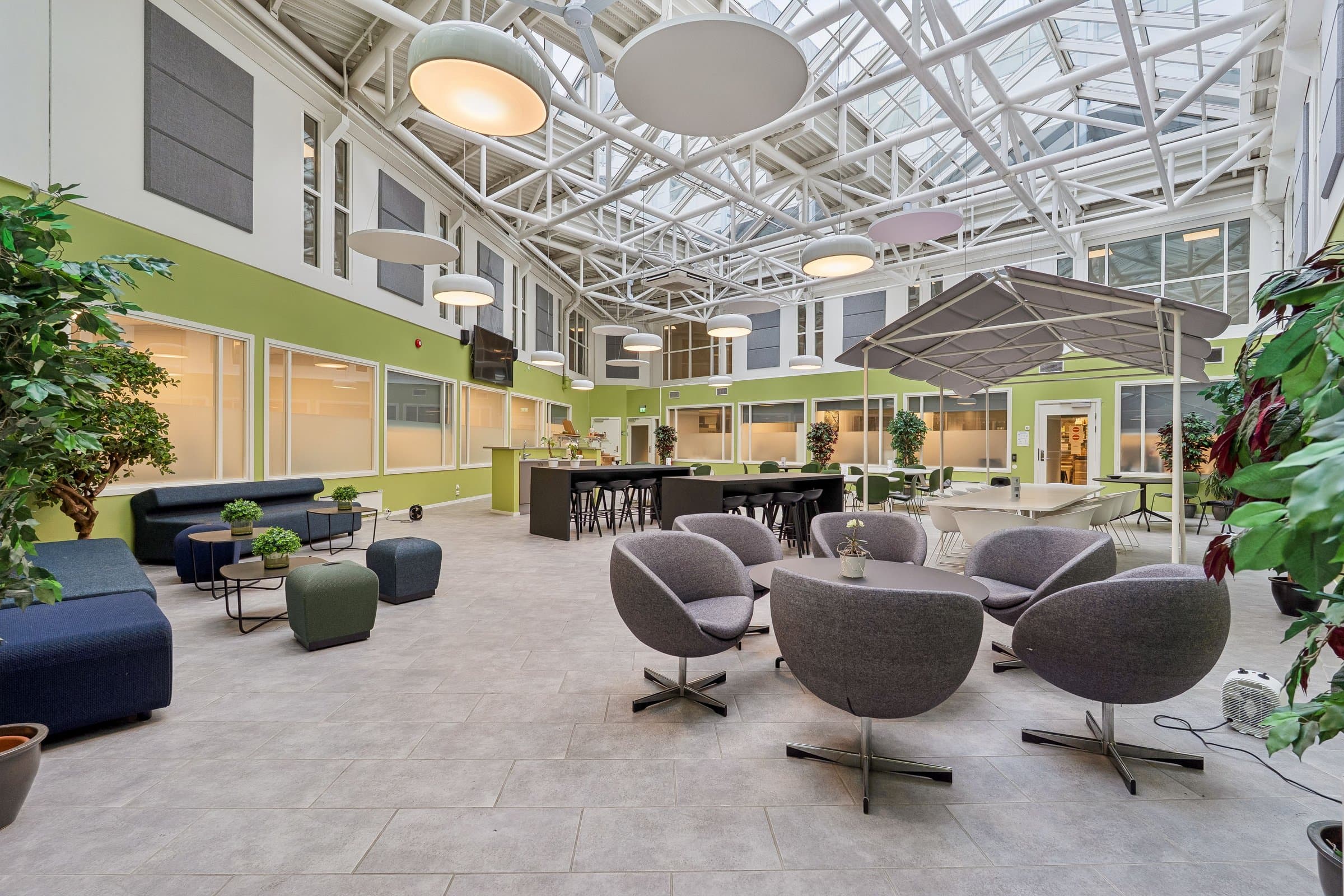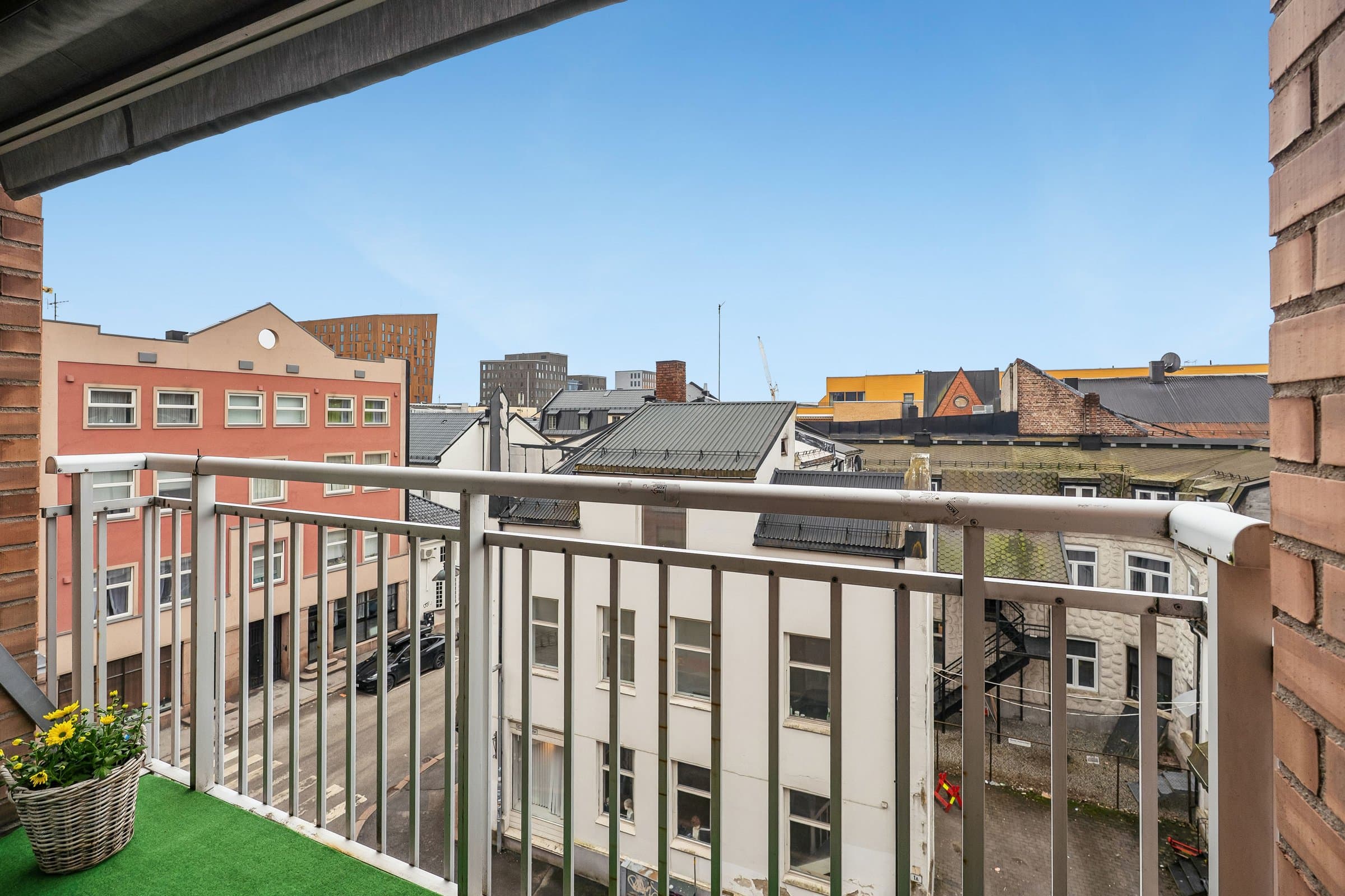 Ønsker du å bo midt i Drammen, med "ALLE" faseliteter i bygget eller innen gangavstand? Fra leiligheten kan du ta heisen ned i første etasje og du er inne i byggets store dagligvarebutikk Coop Extra. Du kan gå over torget til jernbanestasjonen eller stoppe og ta en kaffe på konditoriet, eller en matbit på en av de nærliggende restaurantene. Boligen har en fransk ballkong, men ønsker du å slikke enda mer sol eller grille- tar du heisen opp på takterrassen. Der finner du solsenger, spisegrupper og griller. Vil du derimot starte dagen med trening? Da er sameiets godt utstyrte trimrom et ypperlig sted. Kanskje har du et jubileum i nær framtid? Da kan du samle slekt og venner i byggets pene, sentrale fellesrom. Bilen kan du parkere på egen parkeringsplass i kjelleren.