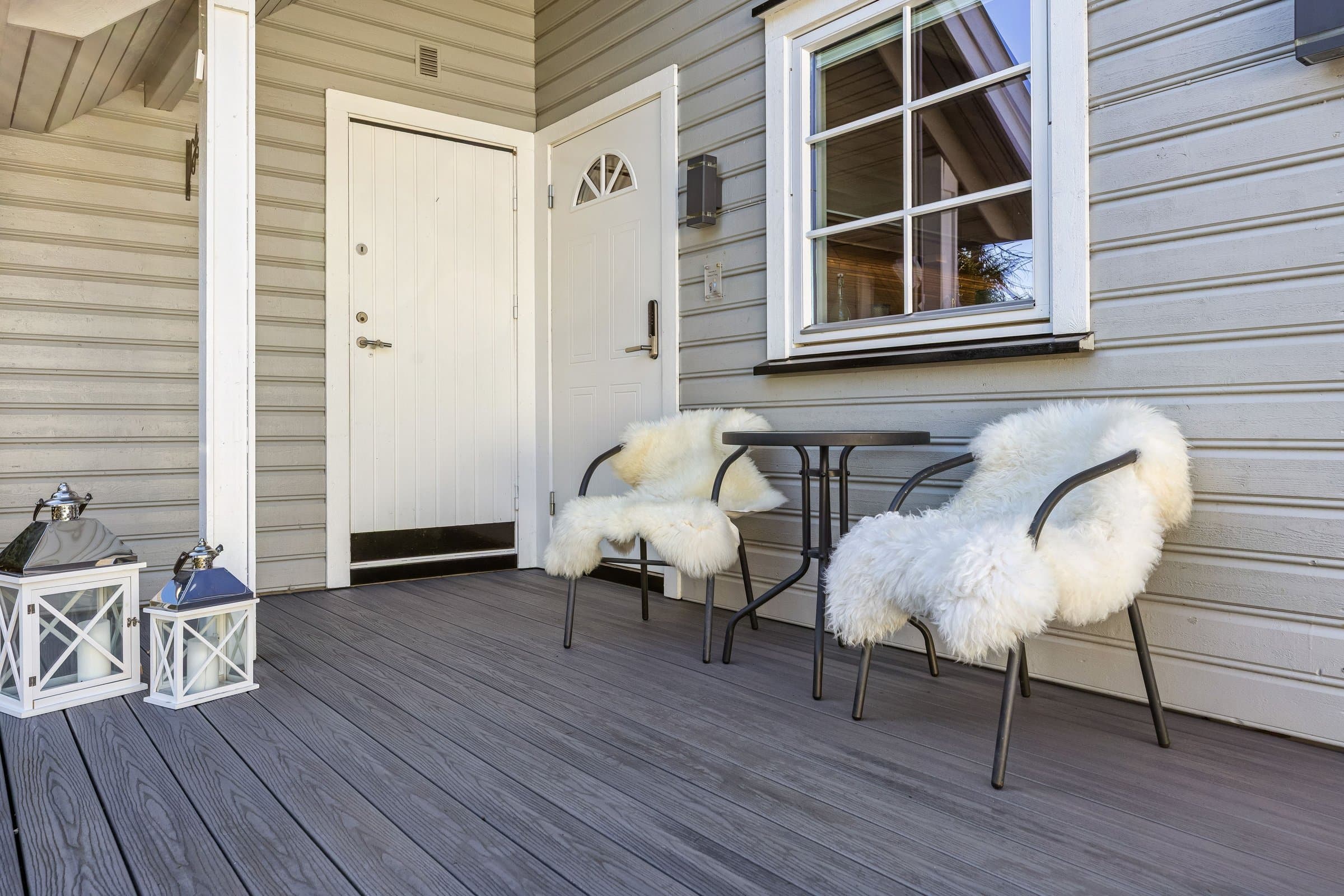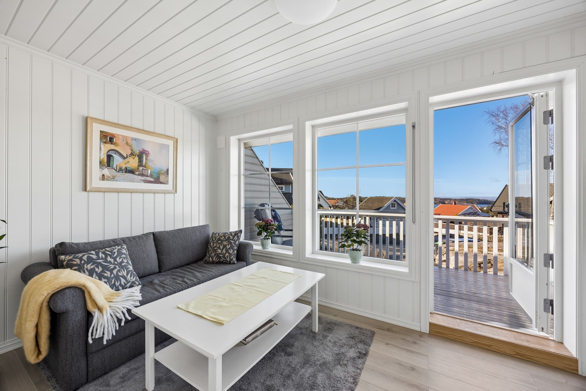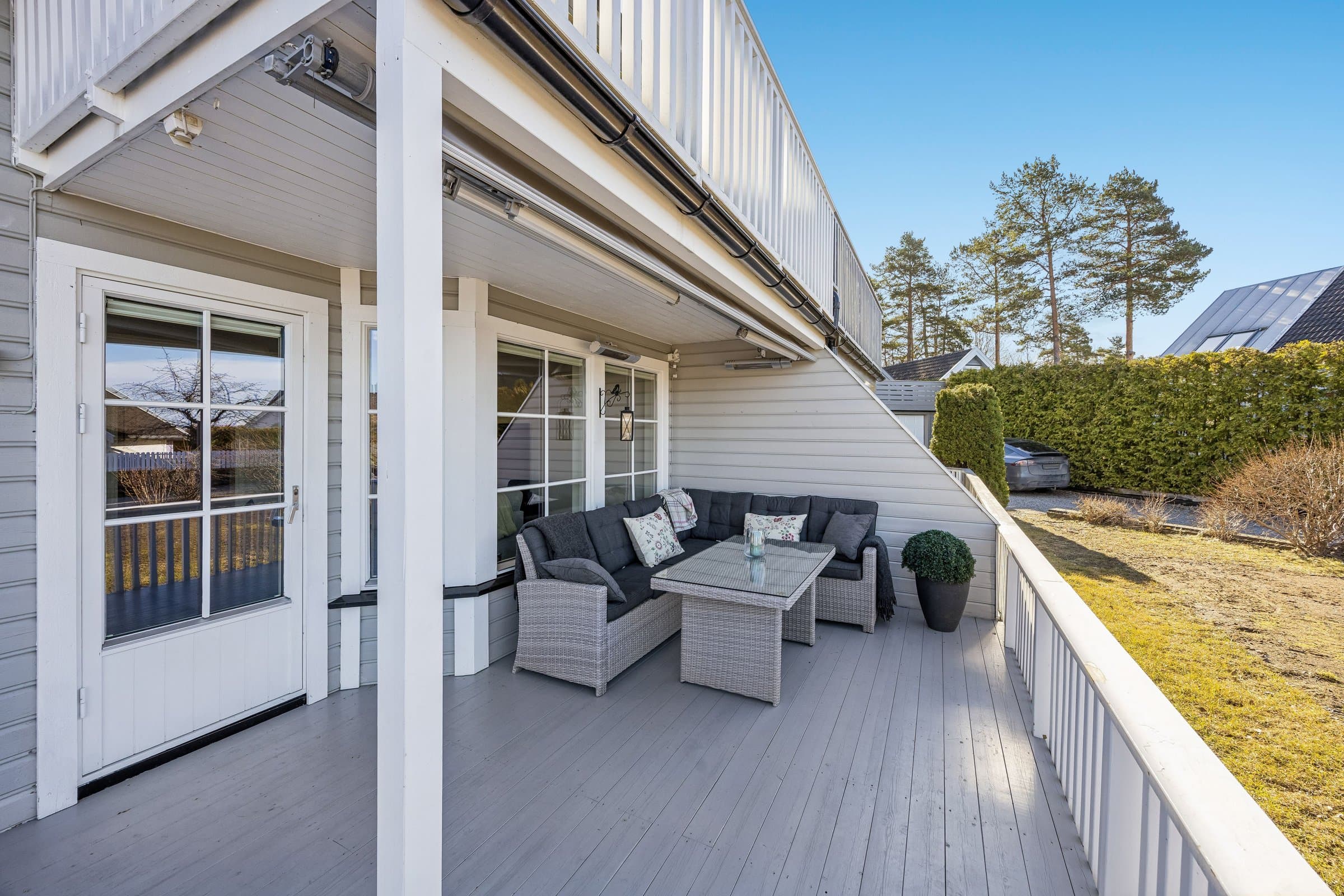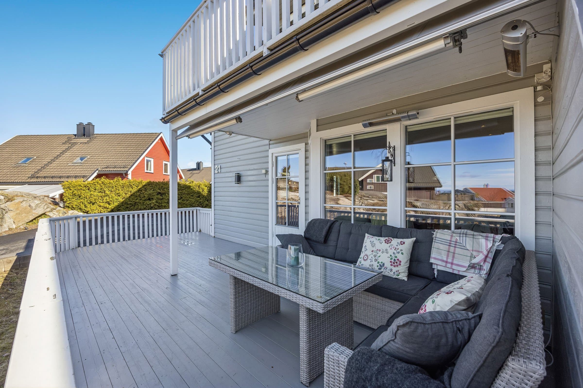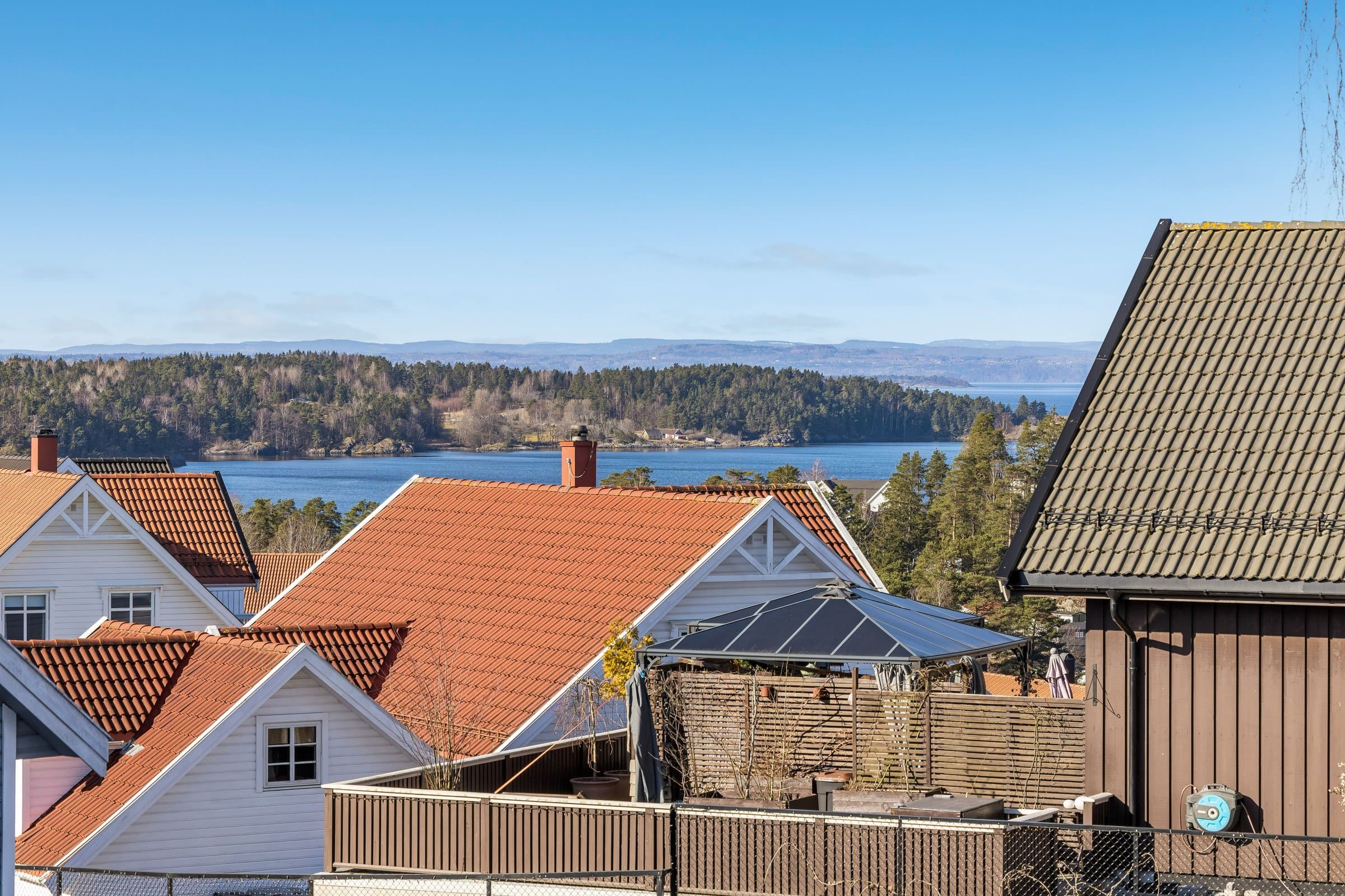 Velkommen til Granittveien 21 Innerst i en rolig blindvei på Øståsen ligger Granittveien 21 – en vertikaldelt tomannsbolig hvor du får følelsen av en enebolig, kombinert med en praktisk og lettstelt hverdag. Boligen går over to etasjer og har en planløsning som utnytter arealet godt, med tre gode soverom, separat kjøkken og romslig stue med utgang til terrasse. Flere rom har utsyn mot Oslofjorden. Fra stuen går du rett ut til en sydvestvendt terrasse på ca. 26 m². Her er det gode solforhold fra ettermiddag til kveld, og plass til både spisegruppe og sittemøbler. Terrassen er delvis overbygget og har både markise og varmelamper.
