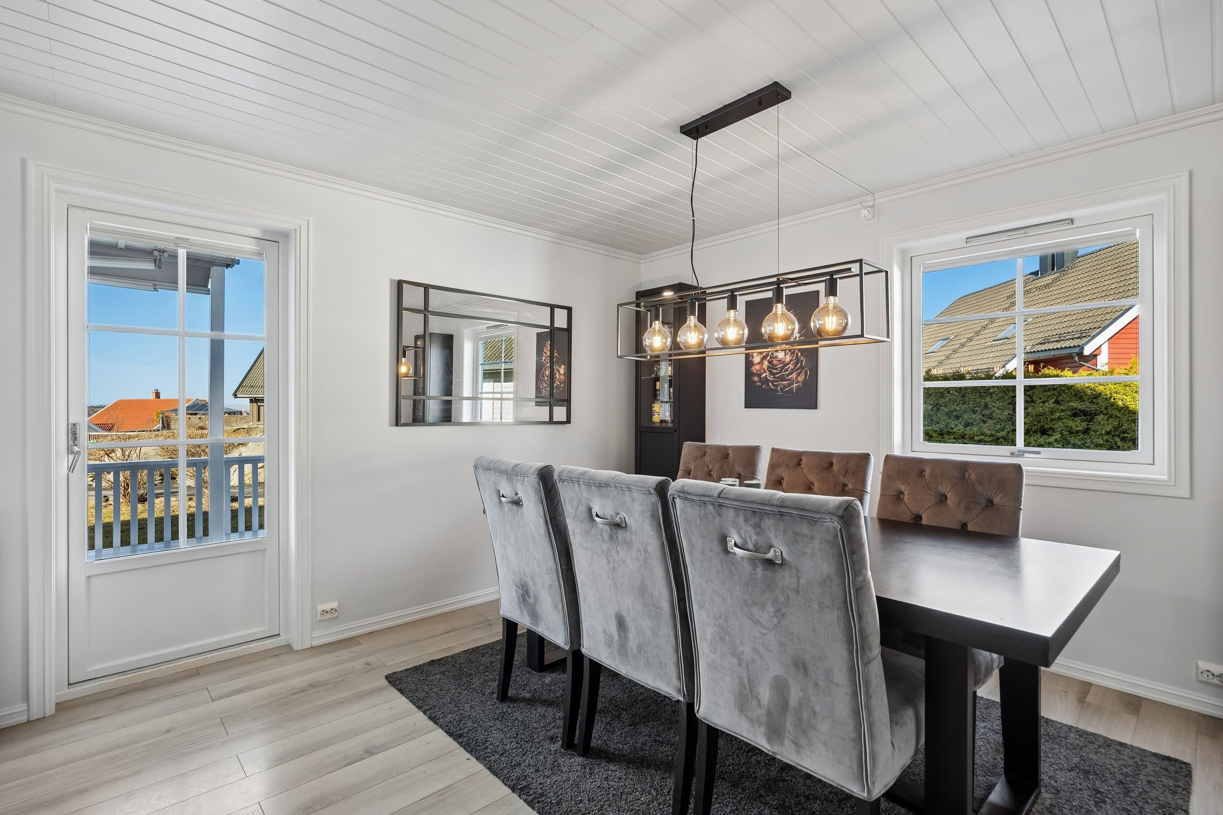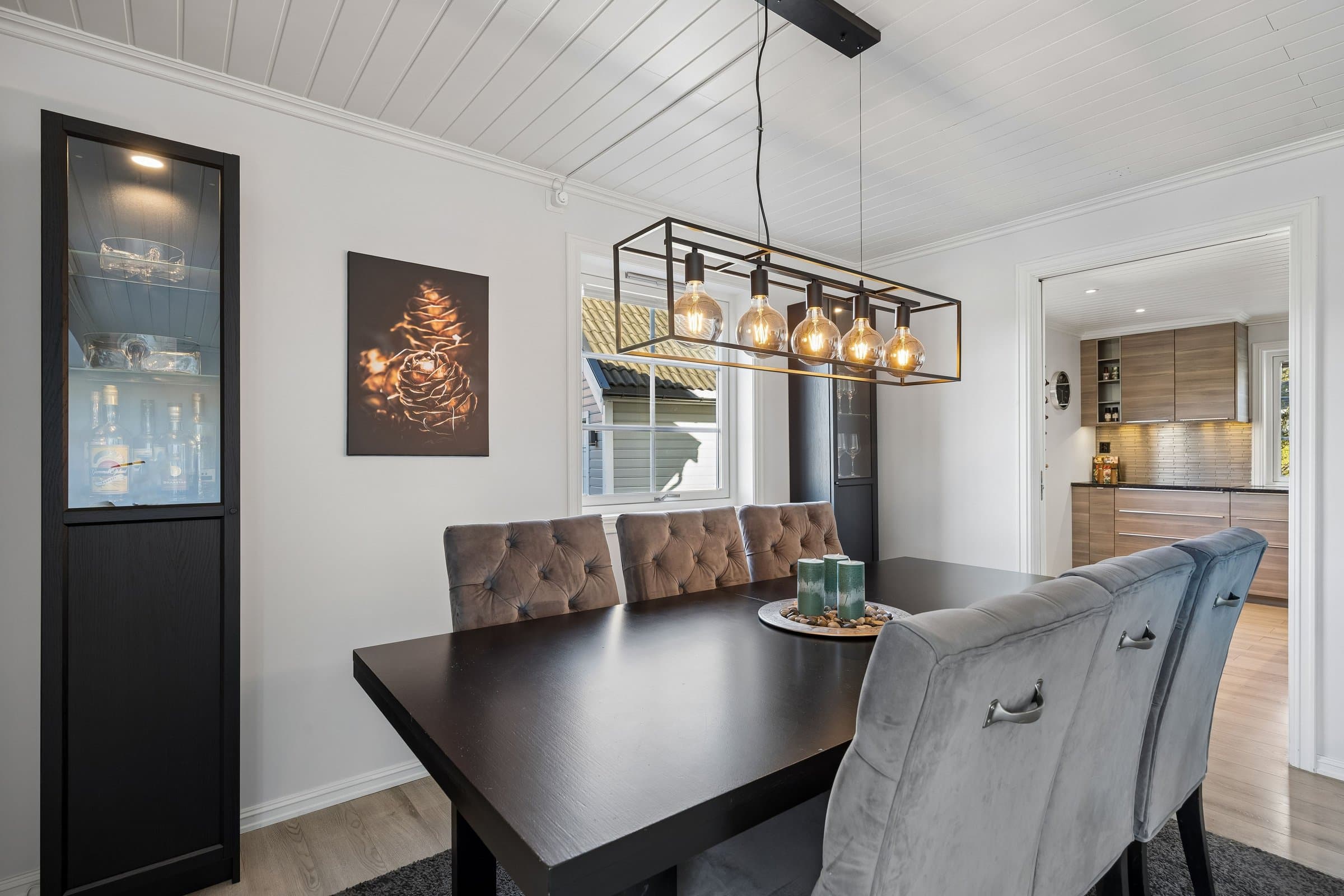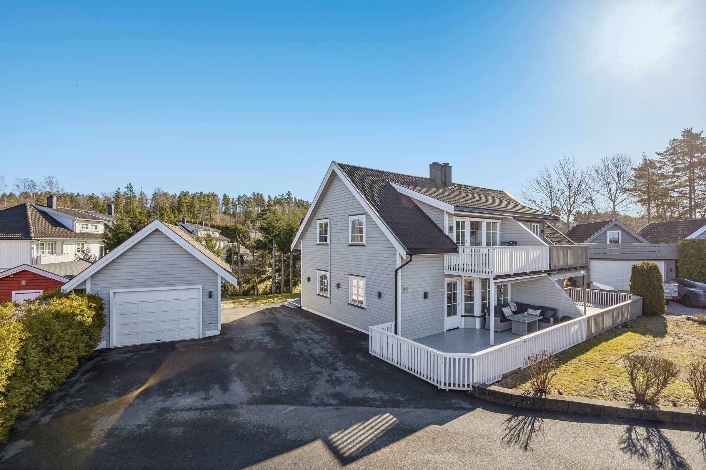 • Stor garasje med elbillader og tilhørende bod • Stor asfaltert gårdsplass med plass til flere biler og god plass til lek for barn • Uteområder på begge sider av boligen med morgensol ved inngangsparti og ettermiddags-/kveldssol på terrassen • Vedbod og ekstra lagringsplass i tilknytning til garasje • Stort loft med gulv for lagring • Uteområdene er godt opplyst om kvelden av 6 utvendige lamper på huset og 4 på garasje med lysføler • Boligen har pipe, så det er mulighet for etablering av peis/ildsted