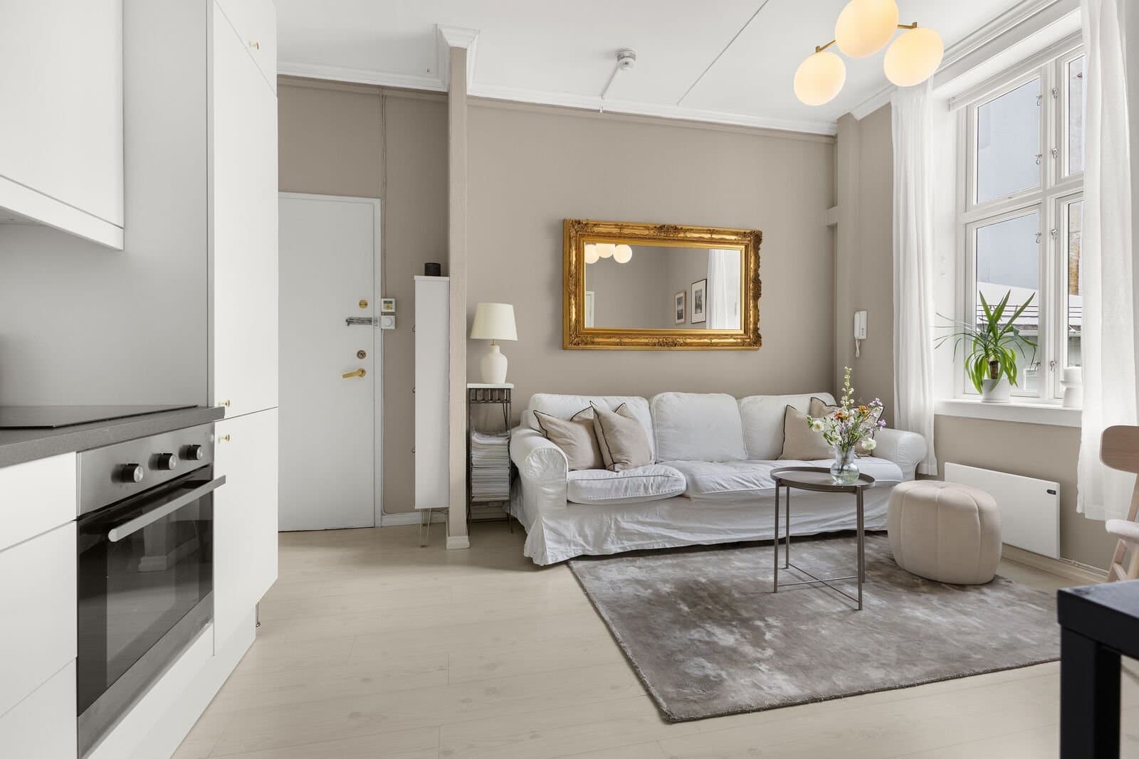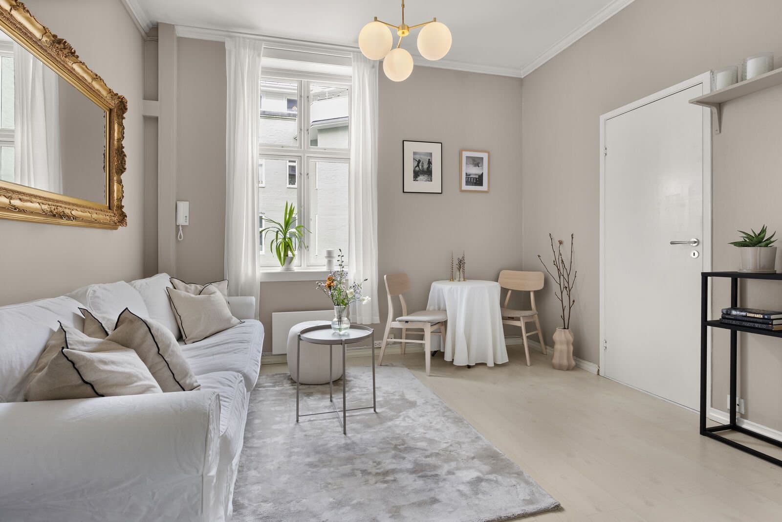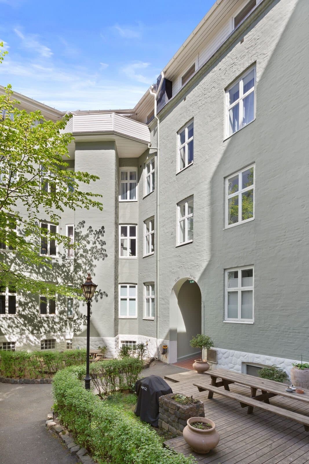 Velkommen til Langes gate 4! Sentralt på St. Hanshaugen. Her bor du i nærhet til "alt", samtidig i en rolig gate. Leiligheten ligger i byggets 2.etasje, og vender i sin helhet mot indre gårdsrom. Leiligheten har en god og praktisk planløsning med god utnyttelse av hver eneste kvadratmeter. Hyggelig bakgård med møblering og grill som fritt kan benyttes av beboere i borettslaget. - Vender mot rolig bakgård. - Vinduer fra 2018. - Varmtvann og fibernett inkl. - Ingen forkjøpsrett. - Bod tilknyttet leiligheten i kjeller. Entré: Med adkomst via lukket portrom og bakgård har du felles trappeoppgang til leiligheten. Leiligheten ligger skjermet til i byggets 2.etasje. Det er en lys entré med dørcalling og plass til å sette fra seg skoene og henge fra seg yttertøy. Stue: Lys stue med naturlig plass til sofa og annen ønsket møblering. God plassutnyttelse. Store vindusflategir godt med naturlig lys. Kombinert på takhøyde på 2,90 meter gir dette en god romfølelse. Åpen kjøkkenløsning med praktisk plassering i stue. Kjøkken: Kjøkken med åpen løsning mot stue. Kjøkkeninnredning med glatte fronter fra 2009. Benkeplate av laminat. Nedsenket oppvaskkum med ett-greps armatur. Flislagt mellom benkeplate og overskap. Benkeskapsbelysning og stikkontakter under overskap. Integrerte hvitevarer. Kjøleskap med frysedel, stekeovn og nedfelt platetopp. Baderom: Lyst og flislagt baderom fra 1997. Varmekabler på gulvet. Nedsenket himling med malt flate og downlights. Baderommet er oppgradert med vegghengt servantskap med glatte fronter, nedsenket servant med ett-greps armatur og vegghengt speilskap med overbelysning. Dusjhjørne med dusjarmatur tilkoblet hånddusj. Gulvstående toalett. Vannrør av kobber. Avløpsrør av plast. Opplegg for vaskemaskin. Avtrekksventil for mekanisk avtrekk plassert i himling. Rom benyttet som soverom: Fint rom som vender mot fredelig bakgård. Plass til seng og garderobeløsning.