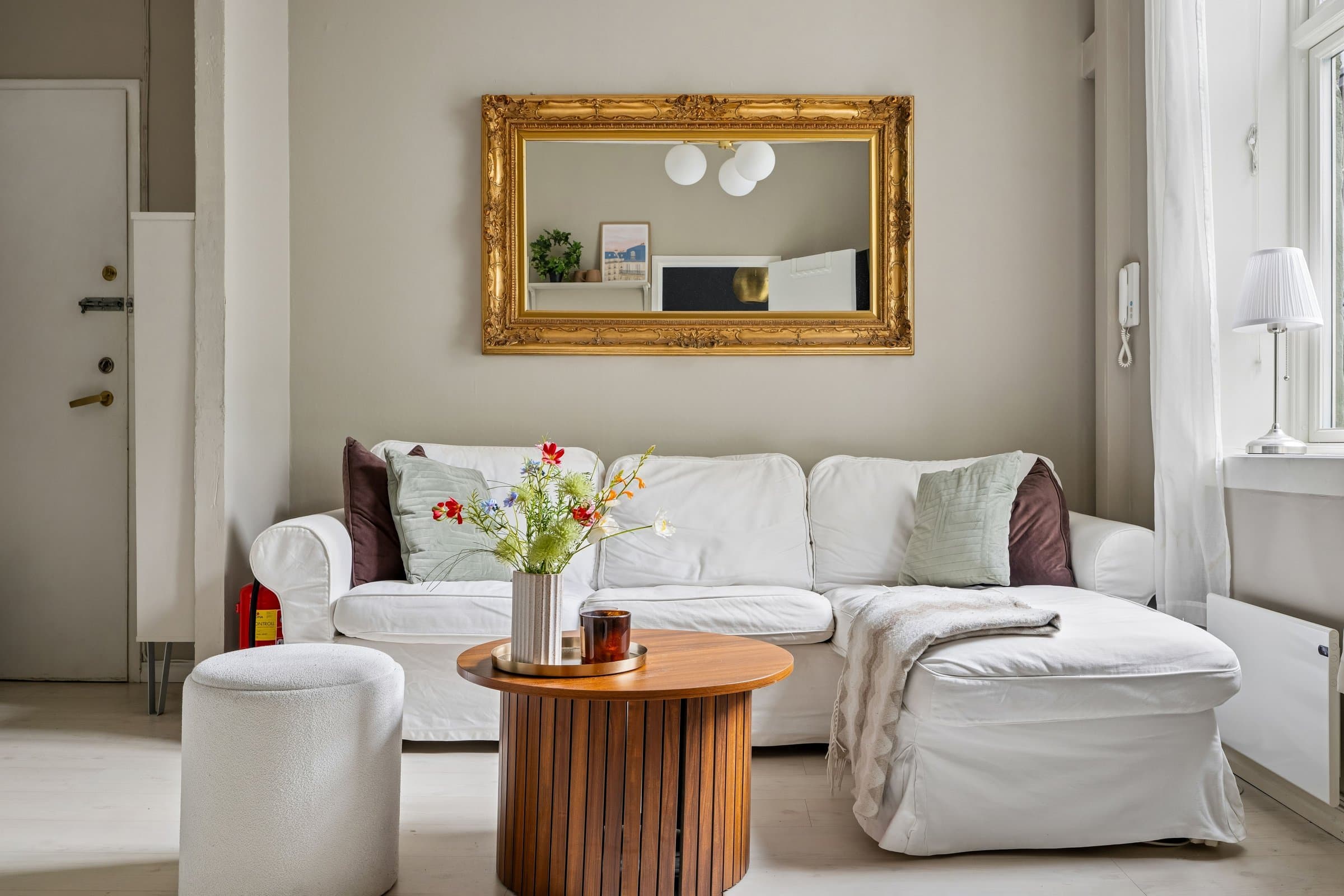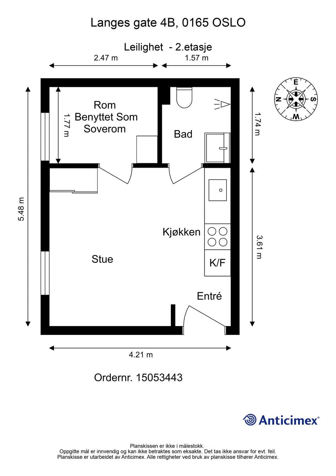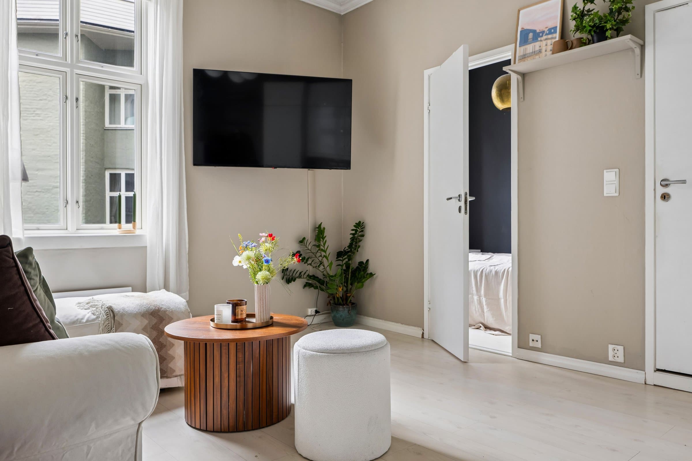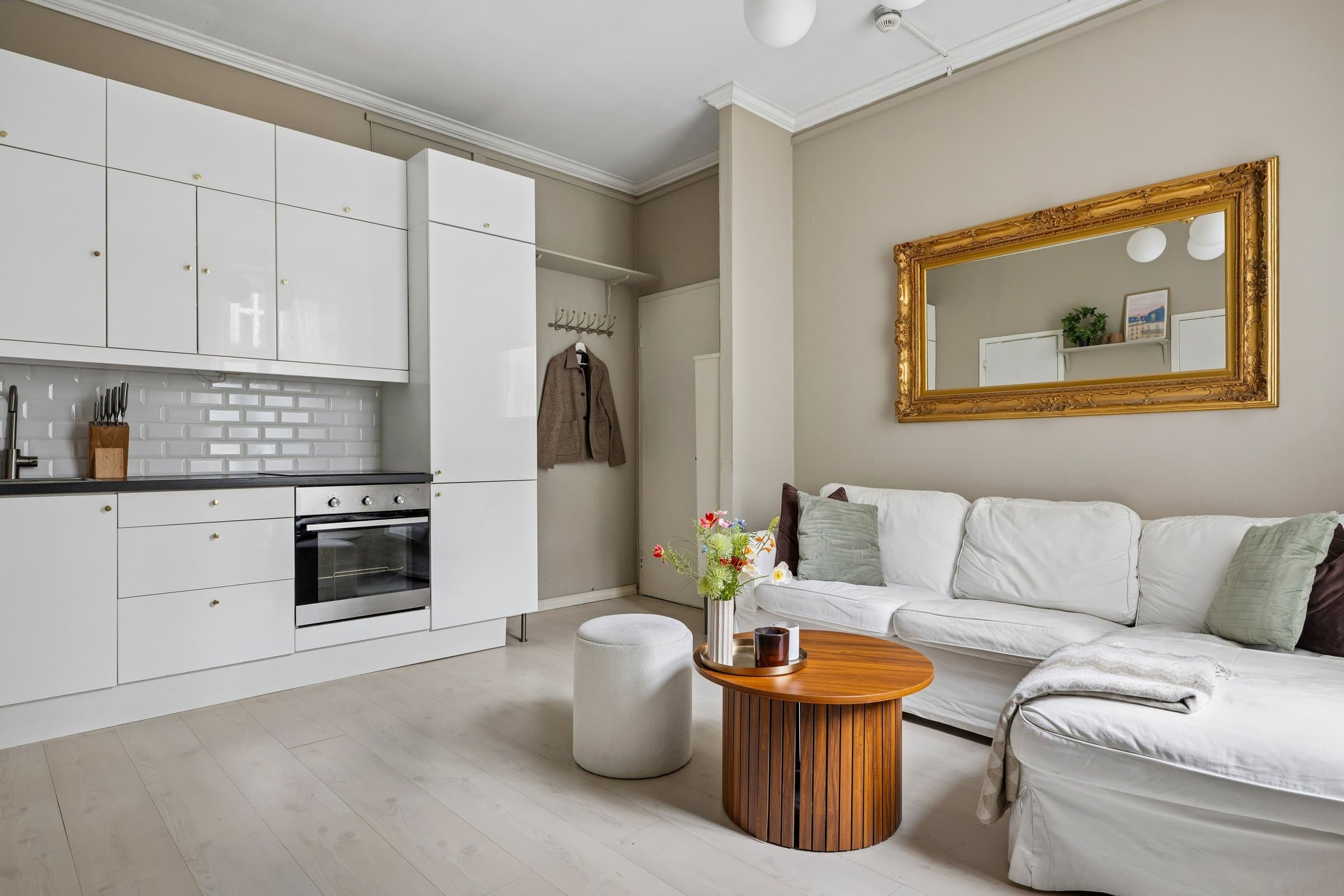 Velkommen til Langes gate 4! Sentralt på St. Hanshaugen. Her bor du i nærhet til "alt", samtidig i en rolig gate. Leiligheten ligger i byggets 2.etasje, og vender i sin helhet mot indre gårdsrom. Leiligheten har en god og praktisk planløsning med god utnyttelse av hver eneste kvadratmeter. Hyggelig bakgård med møblering og grill som fritt kan benyttes av beboere i borettslaget. - Vender mot rolig bakgård. - Vinduer fra 2018. - Varmtvann og fibernett inkl. - Ingen forkjøpsrett. - Bod tilknyttet leiligheten i kjeller. Entré: Med adkomst via lukket portrom og bakgård har du felles trappeoppgang til leiligheten. Leiligheten ligger skjermet til i byggets 2.etasje. Det er en lys entré med dørcalling og plass til å sette fra seg skoene og henge fra seg yttertøy. Stue: Lys stue med naturlig plass til sofa og annen ønsket møblering. God plassutnyttelse. Store vindusflategir godt med naturlig lys. Kombinert på takhøyde på 2,90 meter gir dette en god romfølelse. Åpen kjøkkenløsning med praktisk plassering i stue. Kjøkken: Kjøkken med åpen løsning mot stue. Kjøkkeninnredning med glatte fronter fra 2009. Benkeplate av laminat. Nedsenket oppvaskkum med ett-greps armatur. Flislagt mellom benkeplate og overskap. Benkeskapsbelysning og stikkontakter under overskap. Integrerte hvitevarer. Kjøleskap med frysedel, stekeovn og nedfelt platetopp. Baderom: Lyst og flislagt baderom fra 1997. Varmekabler på gulvet. Nedsenket himling med malt flate og downlights. Baderommet er oppgradert med vegghengt servantskap med glatte fronter, nedsenket servant med ett-greps armatur og vegghengt speilskap med overbelysning. Dusjhjørne med dusjarmatur tilkoblet hånddusj. Gulvstående toalett. Vannrør av kobber. Avløpsrør av plast. Opplegg for vaskemaskin. Avtrekksventil for mekanisk avtrekk plassert i himling. Rom benyttet som soverom: Fint rom som vender mot fredelig bakgård. Plass til seng og garderobeløsning.