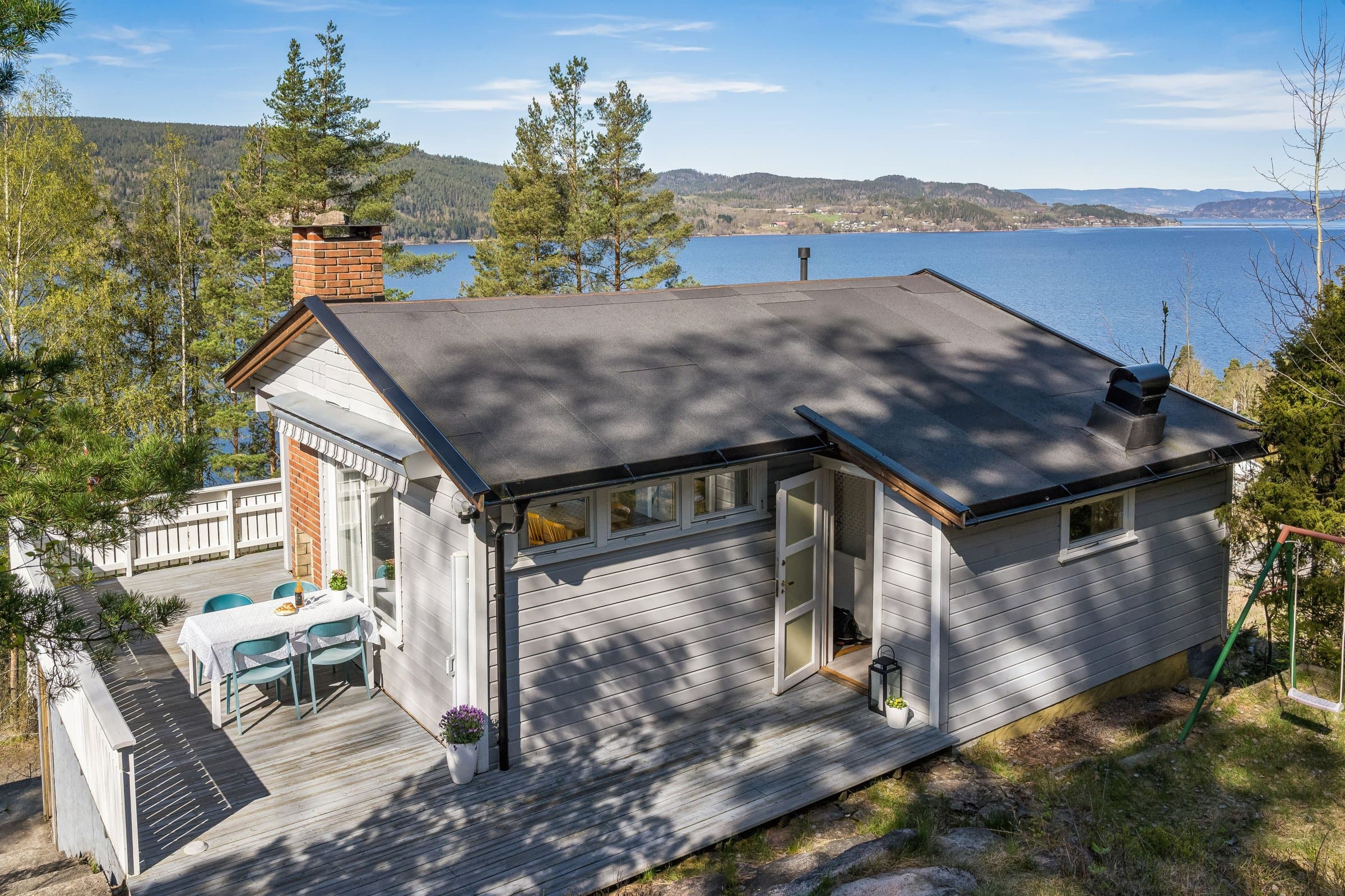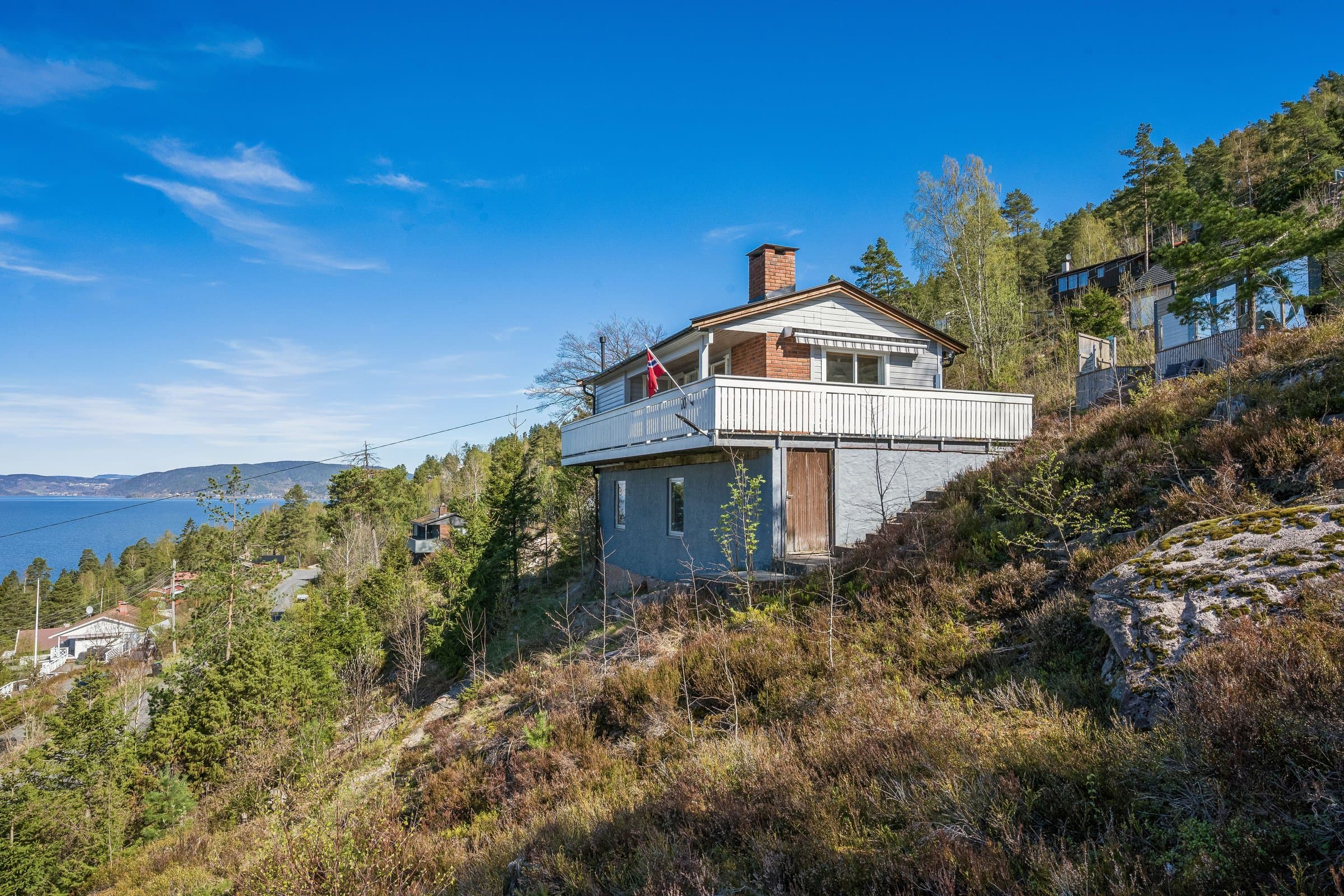 Velkommen til Selvigfjellet 10 –trivelig fritidsbolig på selveid tomt, med nyere anneks samt båtfeste. Eiendommen ligger i et etablert hyttefelt mellom Klokkarstua og Hyggen, og byr på svært gode solforhold, flott fjordutsikt og kort gangavstand til sjøen med badeplass og volleyballbane. Tomten er i hovedsak naturtomt og har terrasse/veranda både foran hytta og annekset. Det er gode parkeringsmuligheter på egen tomt, inkludert elbillader. Hovedhytta inneholder: • Lys og hyggelig stue med peis og store vindusflater som gir flott utsikt mot blant annet Svelvik • Kjøkken med effektiv oppbevaringsplass • To soverom med garderobeskap • Toalettrom med Cinderella urinal og vask • Bad med Cinderella forbrenningstoalett, servantinnredning og dusjkabinett Under hytta finnes romslige bod-/kjellerrom med gode lagringsmuligheter og potensial for videre innredning. Hytta har innlagt strøm, innlagt sommervann og gråvannsavløp. Taket ble skiftet i 2021. Annekset: Annekset er av nyere dato og holder en gjennomgående høy standard. Det inneholder stue samt bad med servant og Cinderella forbrenningstoalett. Her får du: • Gulvvarme • Eikeparkett • Store vindusflater som slipper naturen inn • Dobbel terrassedør som gir en luftig hagestue-følelse • Egen terrasse med glassrekkverk og fantastisk utsikt mot solnedgangen over Drammensfjorden Kort fortalt • Solrik beliggenhet • Flott utsikt • Kort vei til sjø og strand • Nyere anneks med høy standard • Båtfeste • Gode parkeringsmuligheter med elbillader • Kort kjøretur til Holmsbu, Tofte og Sætre med butikker, serveringssteder og servicetilbud, i tillegg til dagligvarebutikk på Klokkarstua i ca. 10 minutters kjøreavstand. Velkommen på visning til ditt nye drømmested!
