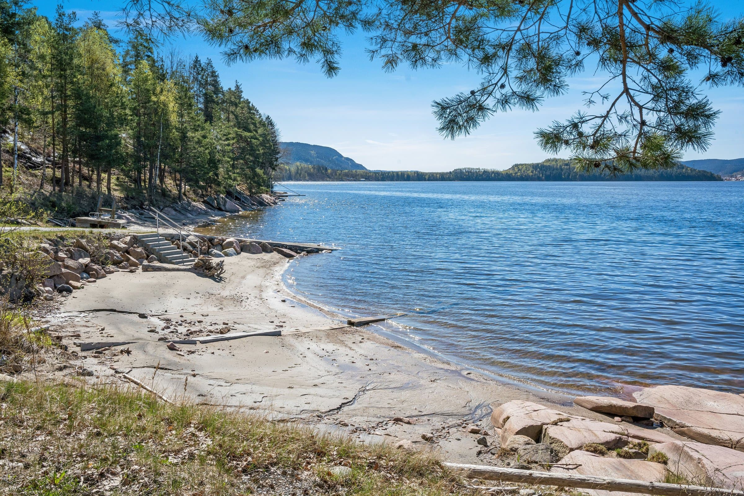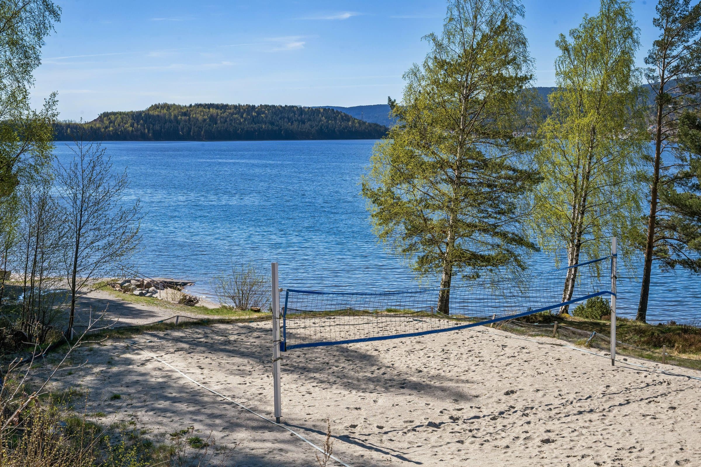Hytta ligger lett tilgjengelig med bilvei helt frem til eiet tomt. Det er parkeringsplass både på oversiden og nedsiden av tomta, der ene parkeringsplassen har elbillader. Tomta ligger svært kort vei fra opparbeidet strand og sandvolleyballbane, kun en gåtur på få minutter. Området er veletablert med egen velforening.