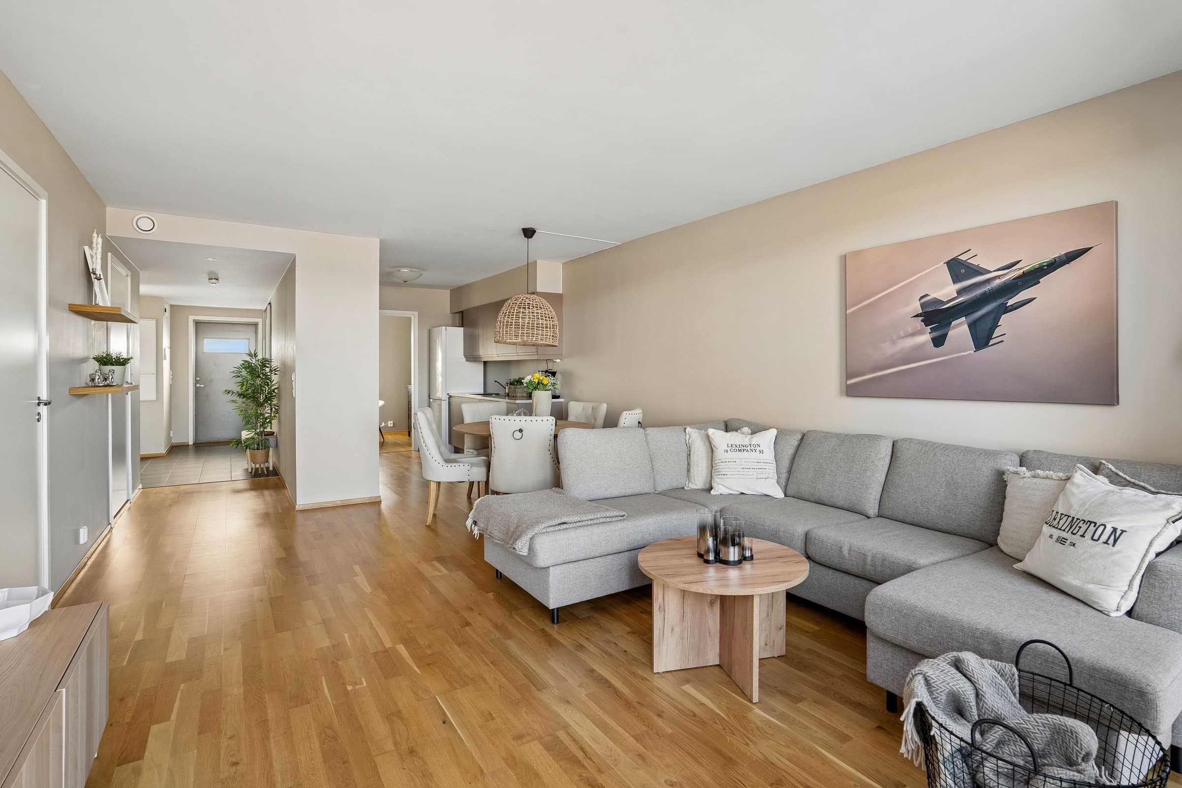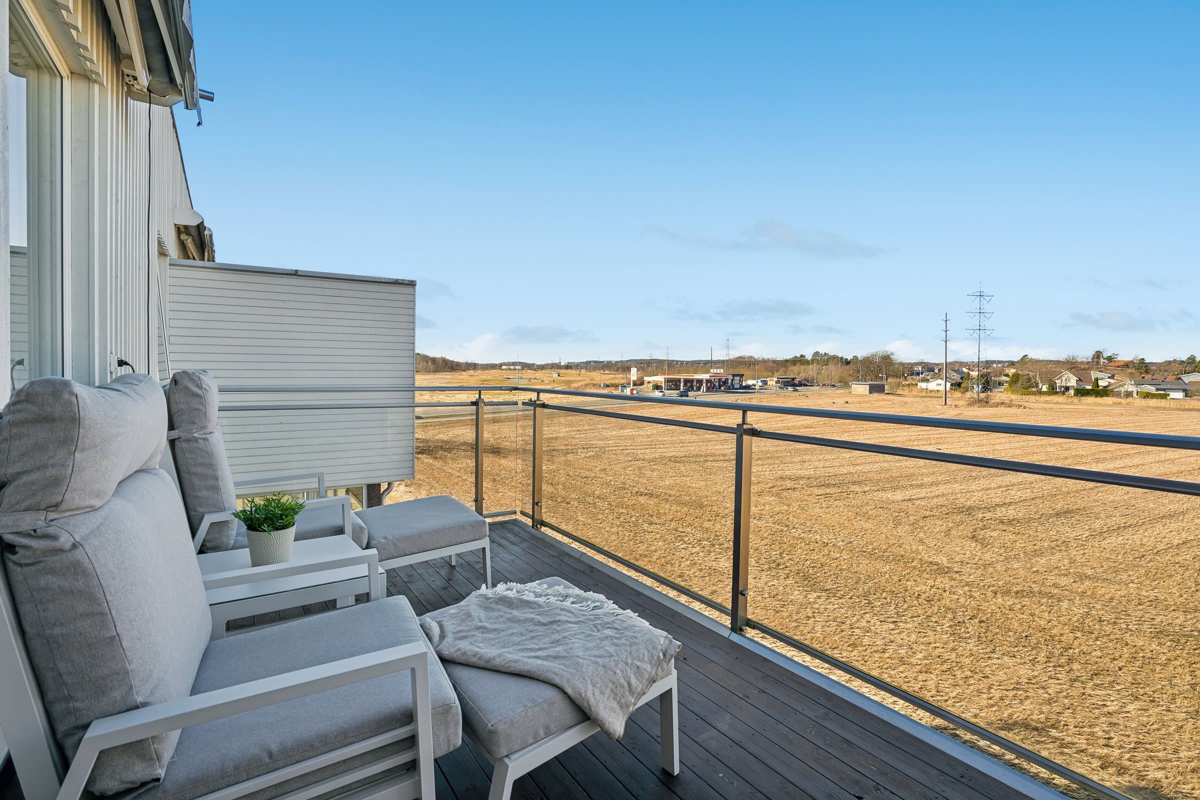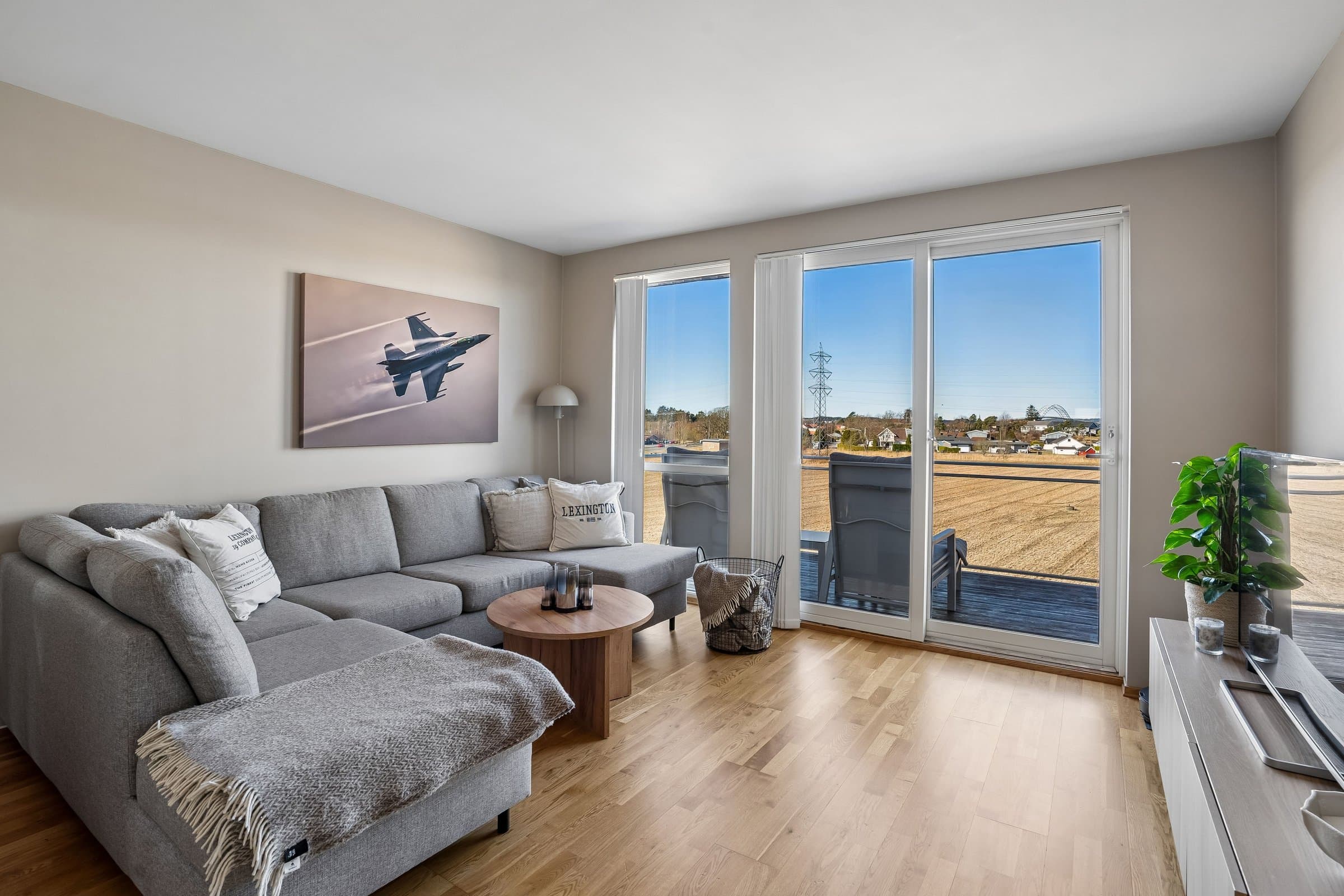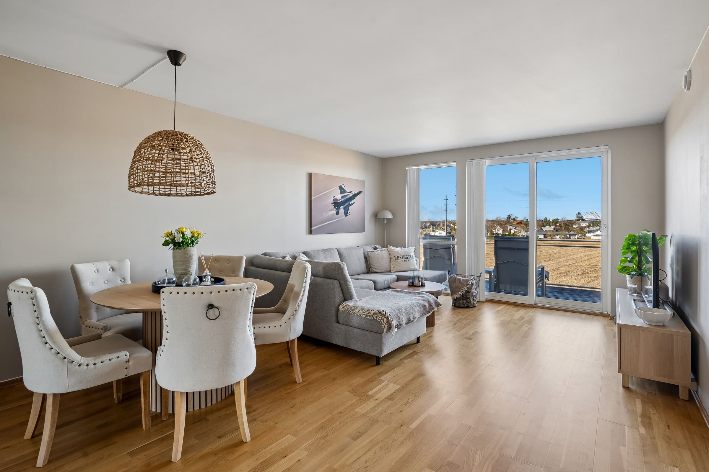 Lys og pen 4 roms eierleilighet med landlig og flott utsyn. Leiligheten ligger solrikt til med morgensol ved inngangspartiet og ettermiddags‐/kveldssolen kan nytes på den vestvendte terrassen.