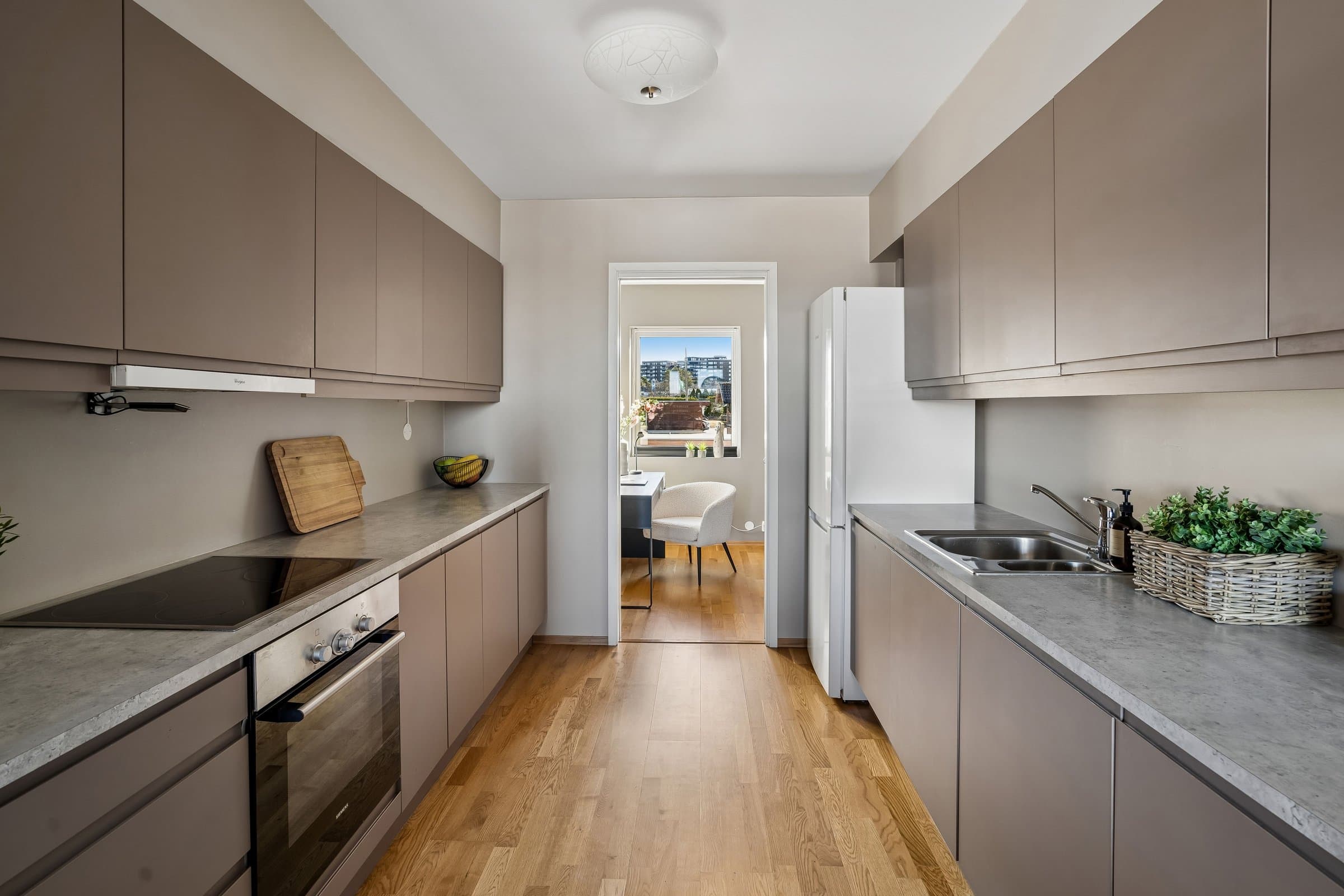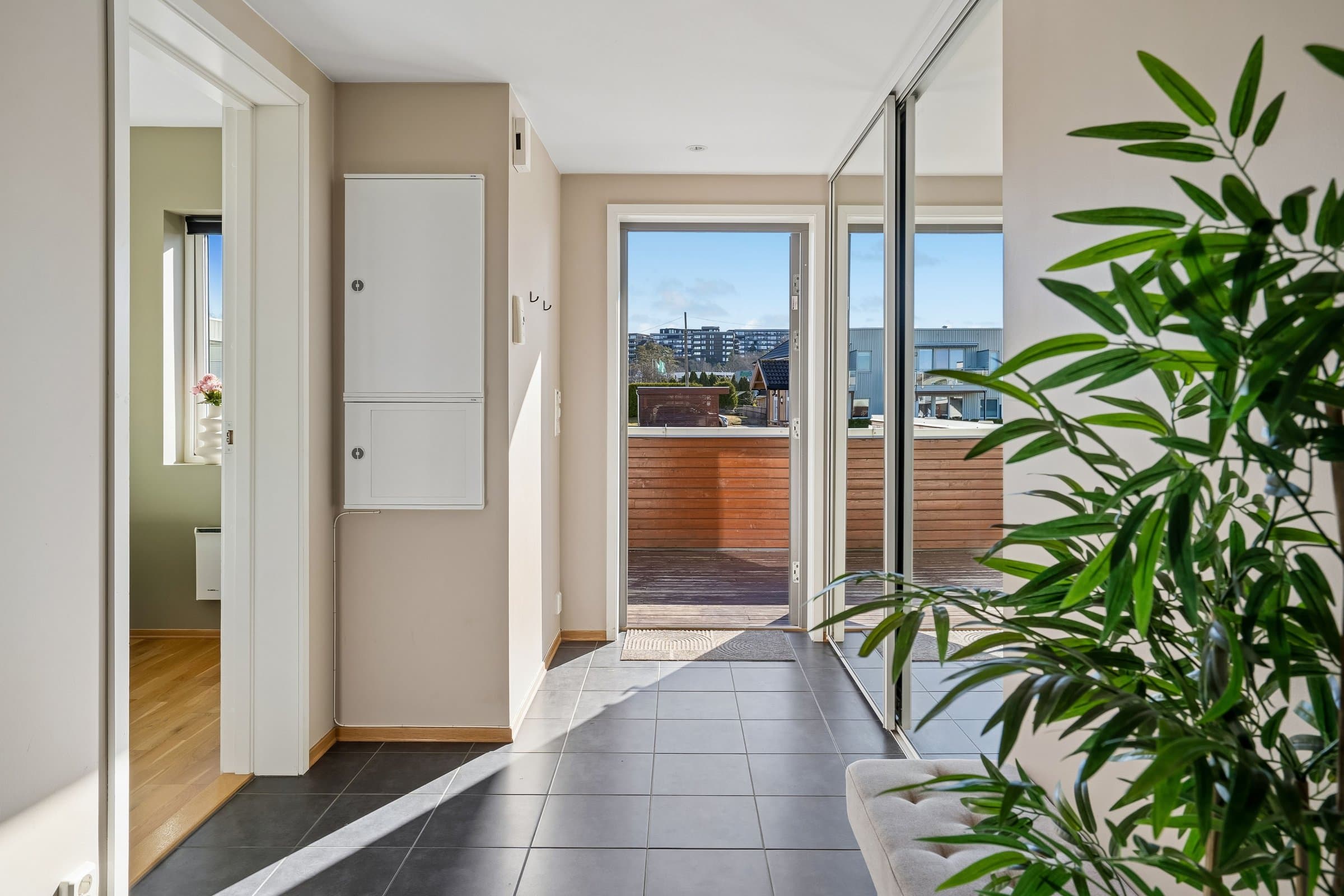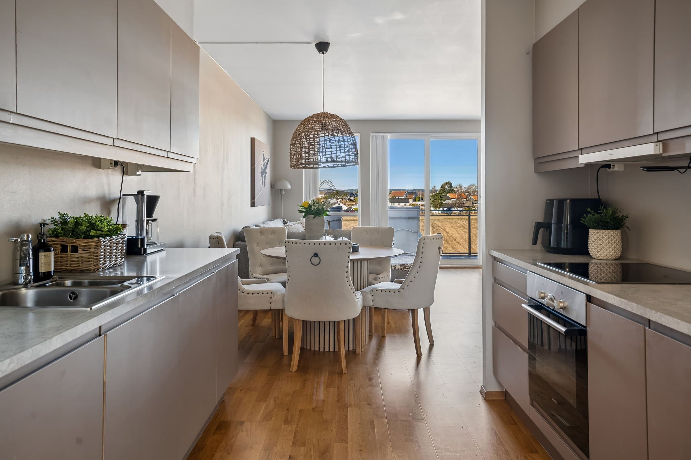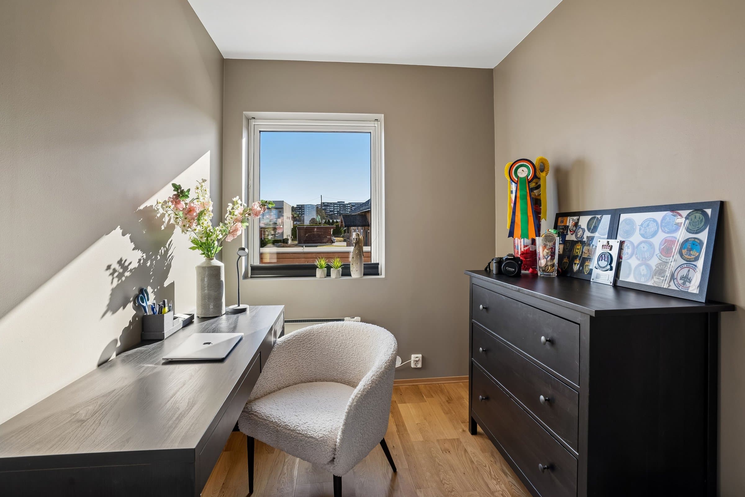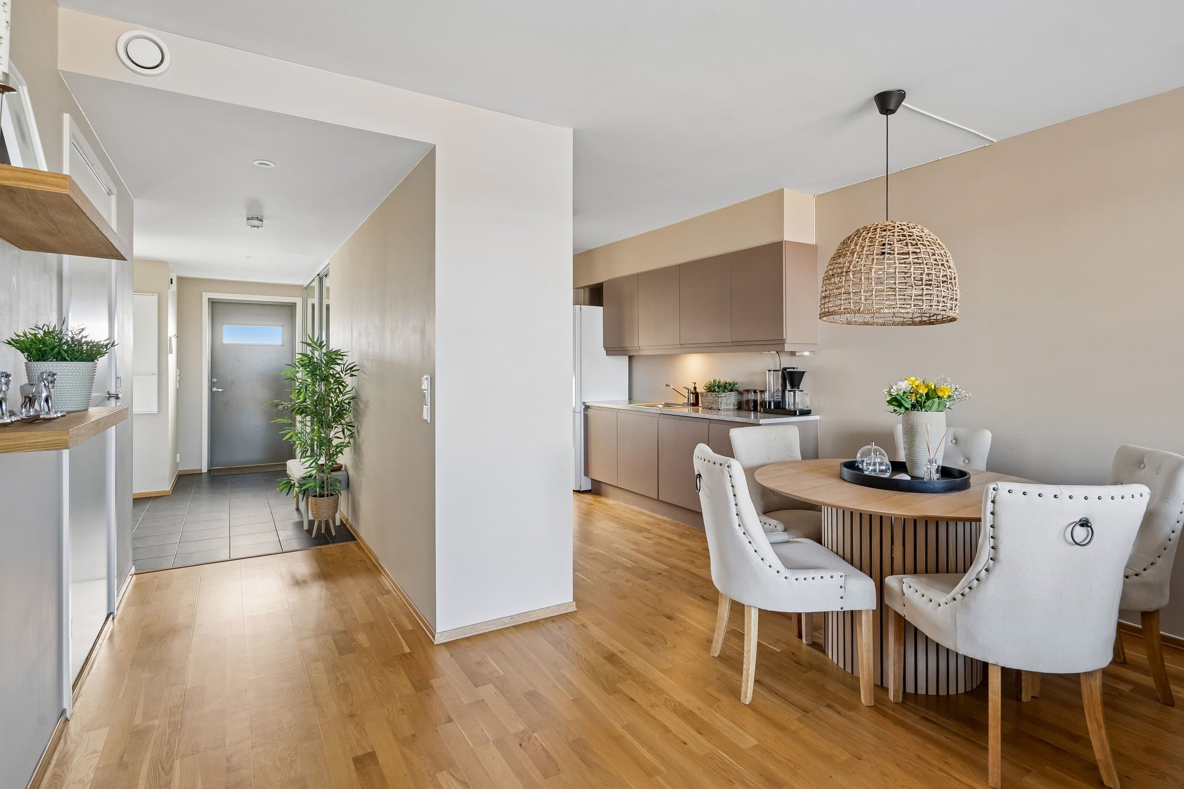 Lys og pen 4 roms eierleilighet med landlig og flott utsyn. Leiligheten ligger solrikt til med morgensol ved inngangspartiet og ettermiddags‐/kveldssolen kan nytes på den vestvendte terrassen.