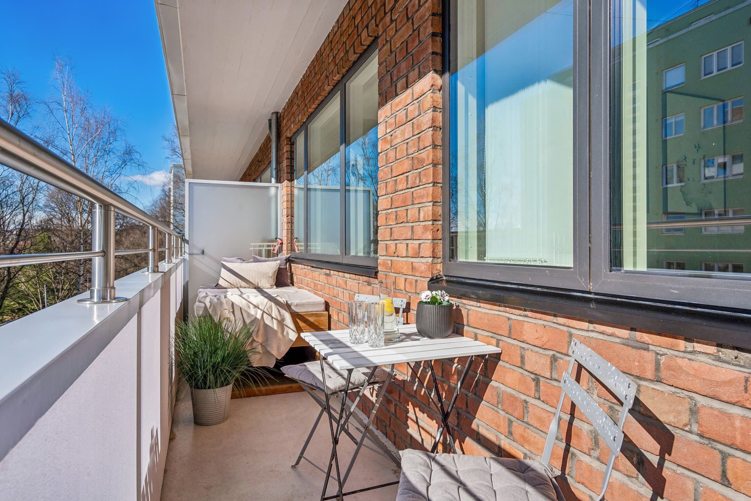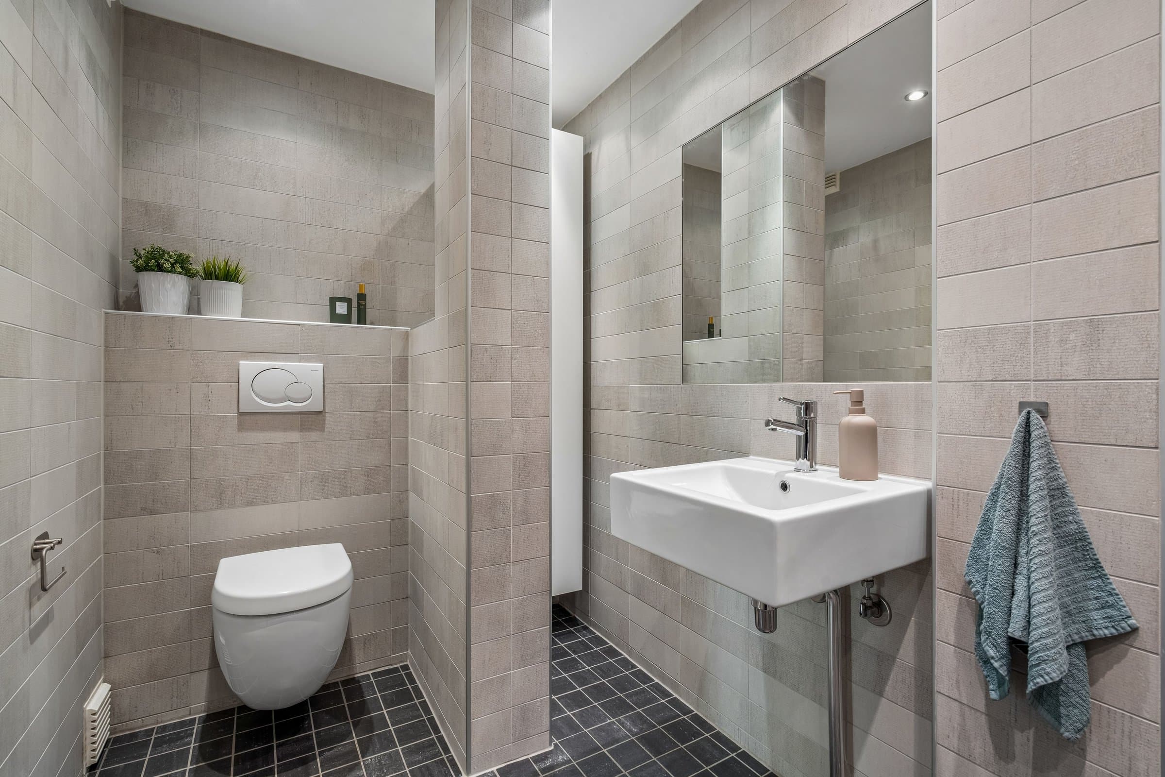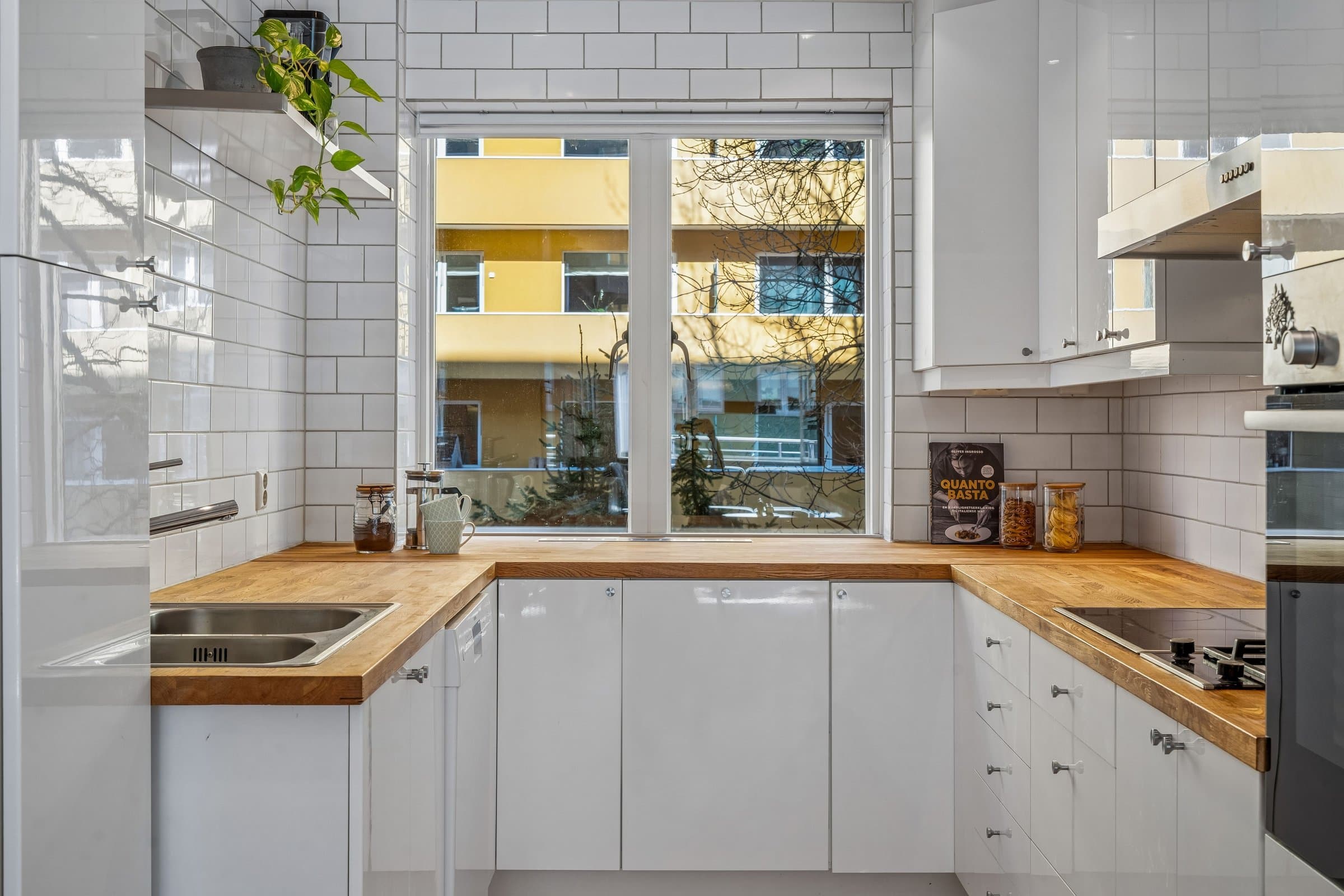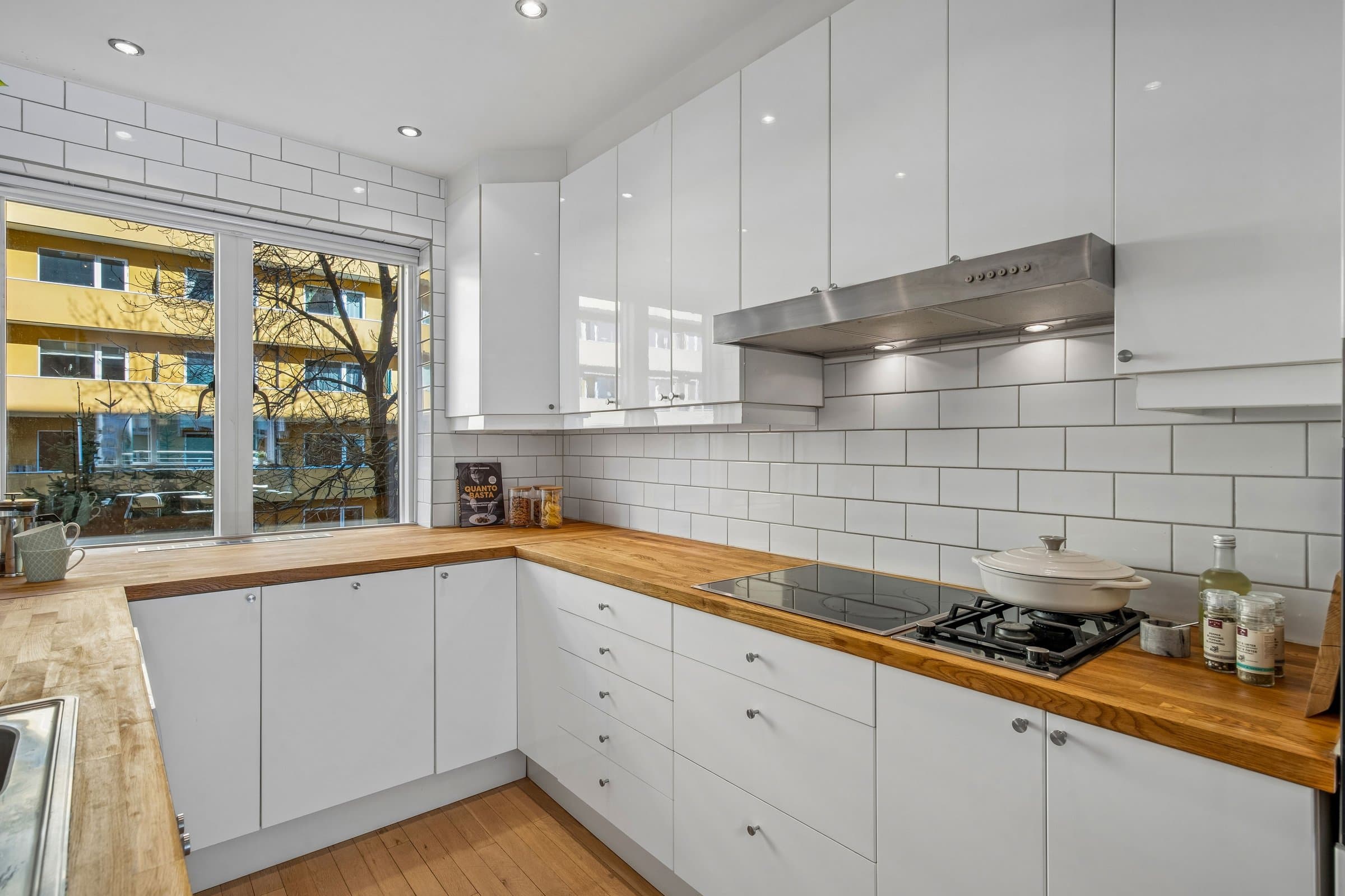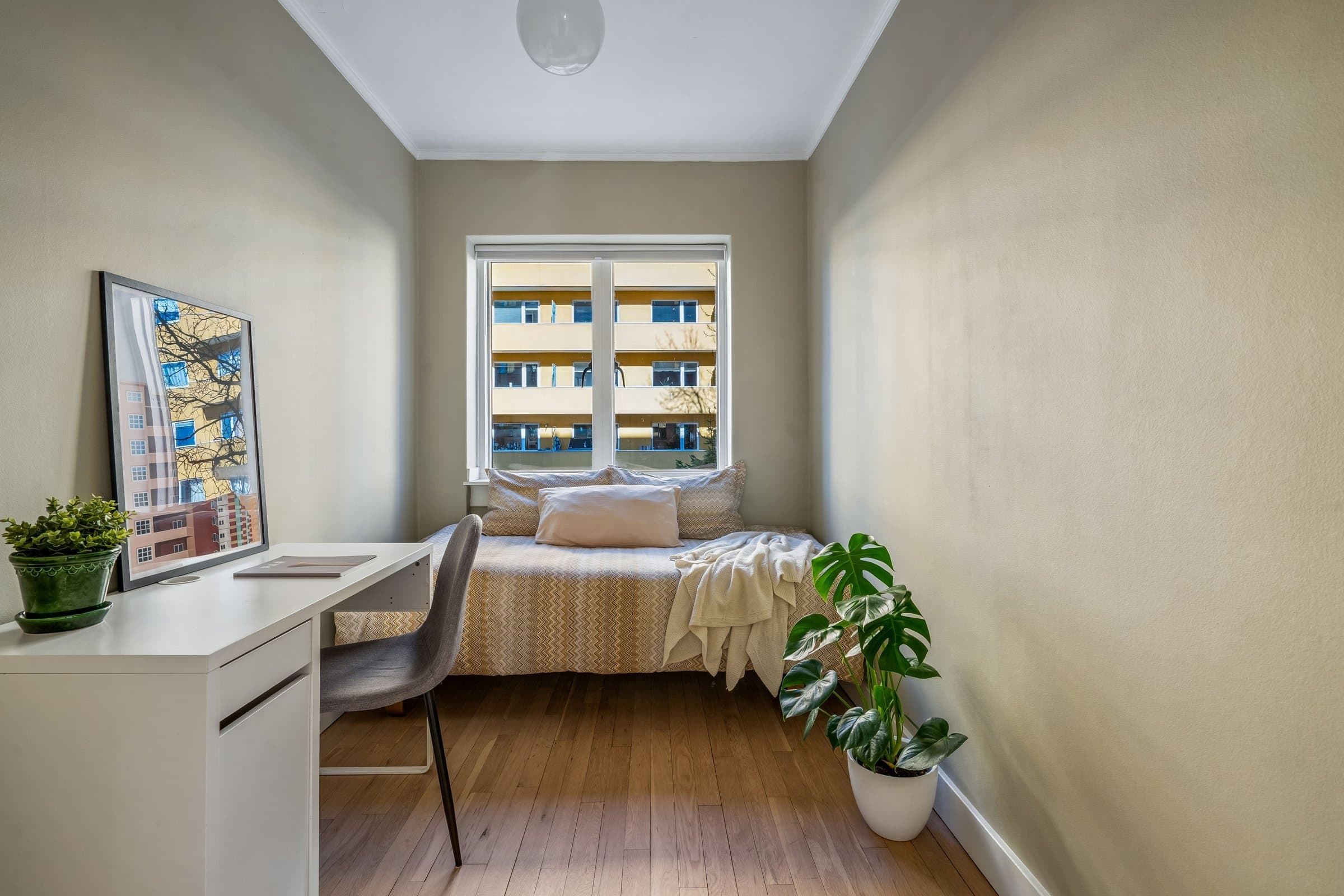 Leiligheten ligger i gårdens 3. etasje og inneholder: Entré, to soverom, bad/wc og delvis åpen kjøkken- og stueløsning. Stue har direkte utgang til balkong på 8m². Balkong: Solrik, sørvestvendt balkong på 8,1 m² direkte ut fra stue. Rekkverkhøyde på 116 cm. Balkongene ble modernisert i 2016 i regi av borettslaget. Varmekilder: Varmtvann og fjernvarme inkludert i felleskostnader. Varmekabler på bad. Åpen original peis i stue. Kjøkken: Pent, lyst kjøkken i praktisk delvis åpen løsning mot stuen. Kjøkkeninnredning med glatte folierte høyglans fronter. Heltre benkeplate og rustfritt beslag. Vegg med malte flater, samt flisvegg. Integrerte hvitevarer som platetopp, to gassbluss/plater, kjøleskap stekeovn og oppvaskmaskin. Frittstående kjøl- og fryseskap. Ventilator i stål med kullfilter. Det er godt med skap- og benkeplass på kjøkkenet. Downlights i himling. Felles varmtvannsbereder. Bad/wc: Pent, flislagt baderom. Badet ble pusset opp i regi av borettslaget i 2009. Badet er utstyrt med servant og speil, dusjhjørne med svingdører og dusjbatteri samt termostat. Veggmontert toalett. Opplegg for vaskemaskin, vannkran for vaskemaskin. Stikkontakt for vaskemaskin og tørketrommel. Flislagte gulv og vegger. Varmekabler i gulv. Downlights i himling. Overflater: Gulv: Originale tregulv som ble slipt og behandlet i 2017. Vegger: Malte flater og flis. Himling: Malte flater. Downlights i entré/gang og på bad/wc. Boder: Bod på 2,5 m², merket "26" og et skiskap i kjeller. Det er også felles sykkelbod i kjeller. Elektrisk: 40 amp hovedsikring, 4 fordelingskurser. Automatsikringer og jordfeilbryter.