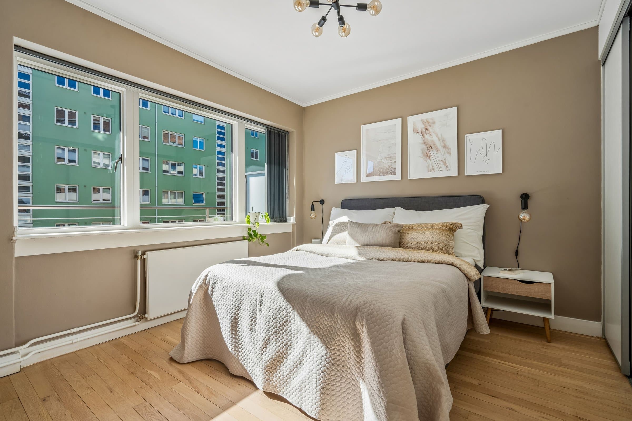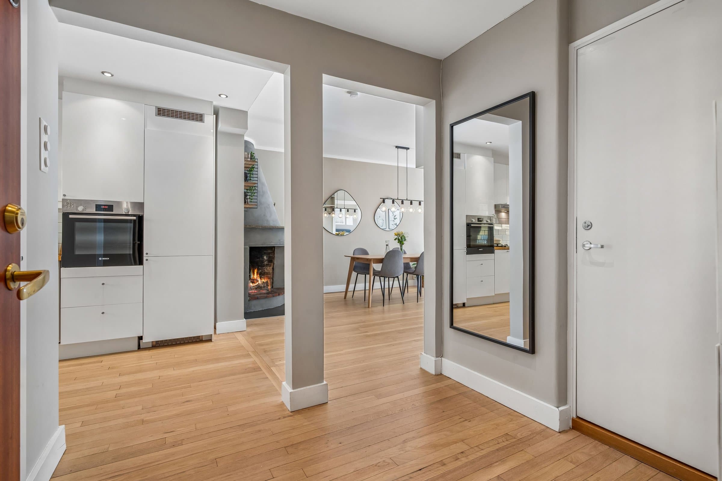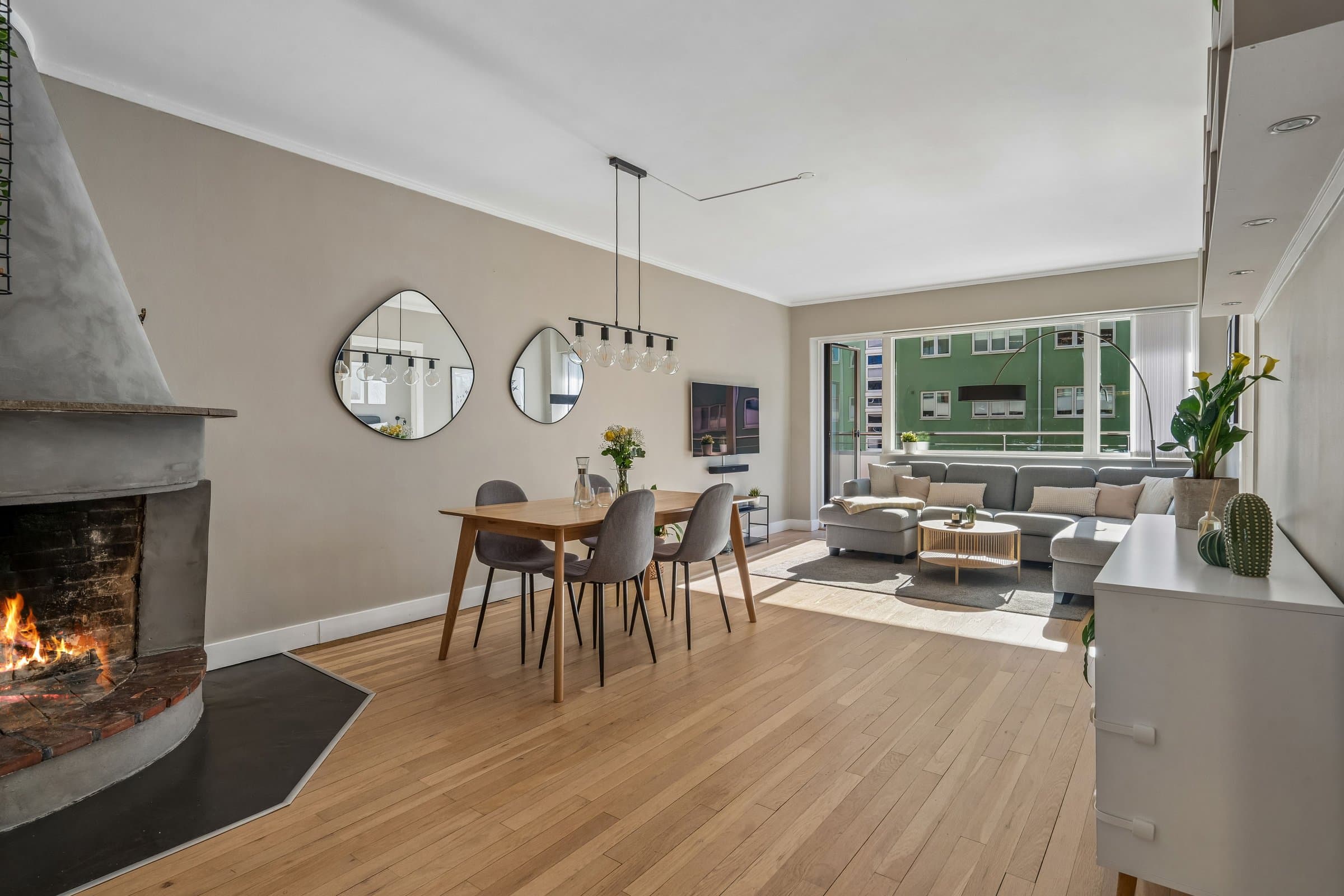 Lekker 3-roms med solrik balkong, heis og peis. Mulighet for parkering. Den gjennomgående planløsningen og de store vindusflatene slipper inn mye lys. Leiligheten har god standard. Planløsningen er meget arealeffektiv. Leiligheten består av gang, pent og praktisk kjøkken med mye skap- og benkeplass i delvis åpen løsning mot stuen, hyggelig stue med original peis og utgang til stor balkong, to romslige soverom og bad/wc med opplegg for vaskemaskin. Balkongen ble pusset opp og utvidet i 2016.