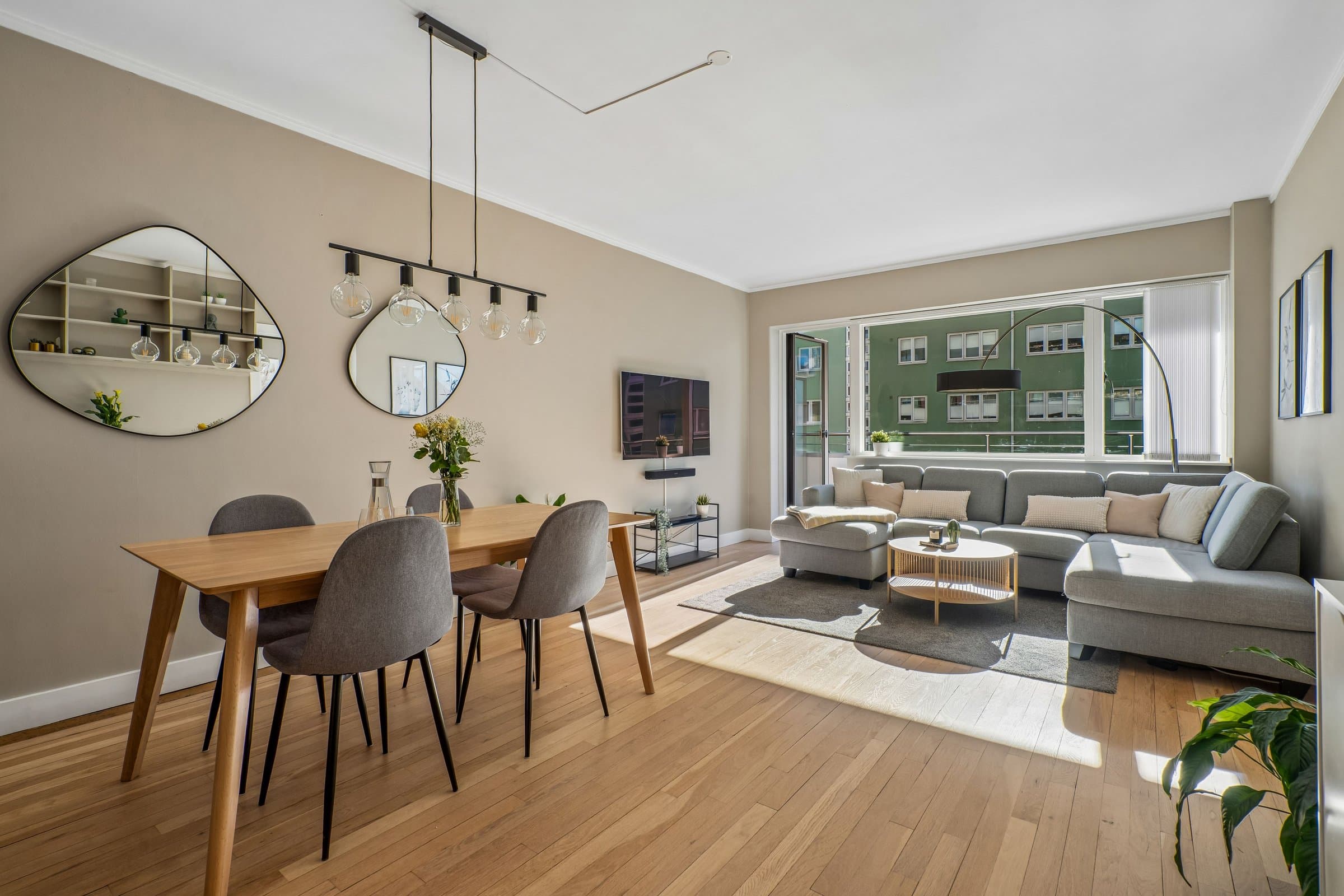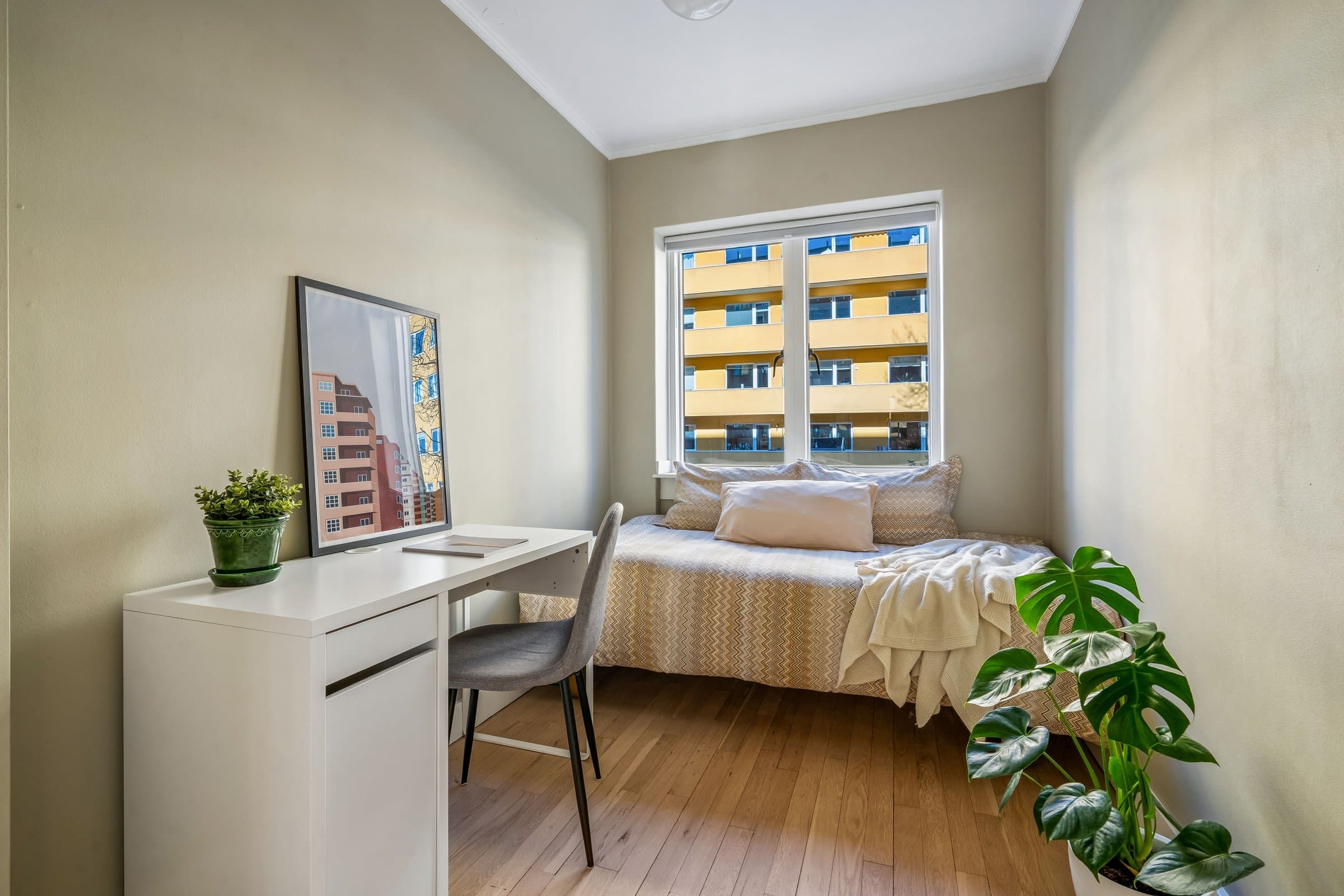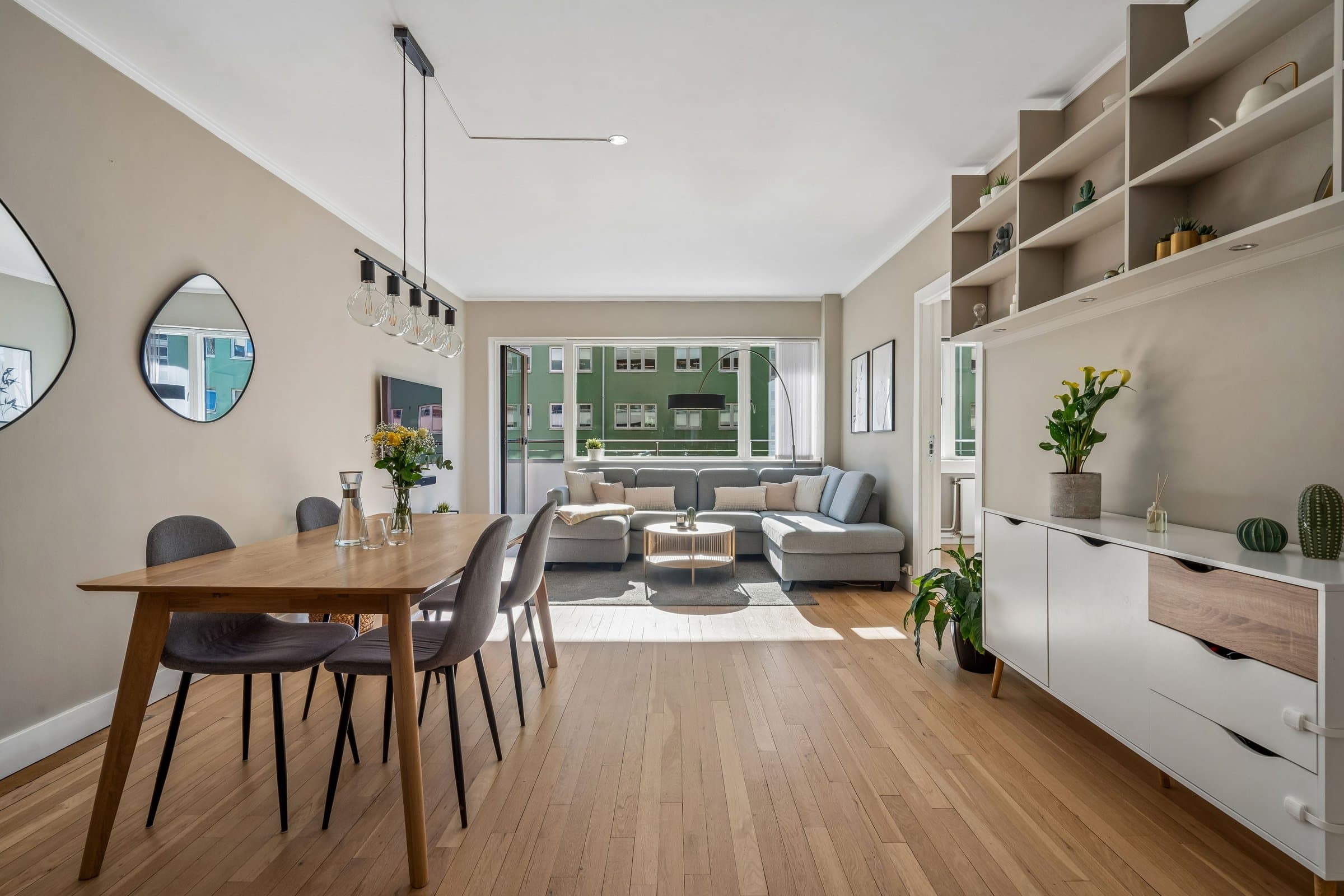 Lekker 3-roms med solrik balkong, heis og peis. Mulighet for parkering. Den gjennomgående planløsningen og de store vindusflatene slipper inn mye lys. Leiligheten har god standard. Planløsningen er meget arealeffektiv. Leiligheten består av gang, pent og praktisk kjøkken med mye skap- og benkeplass i delvis åpen løsning mot stuen, hyggelig stue med original peis og utgang til stor balkong, to romslige soverom og bad/wc med opplegg for vaskemaskin. Balkongen ble pusset opp og utvidet i 2016.