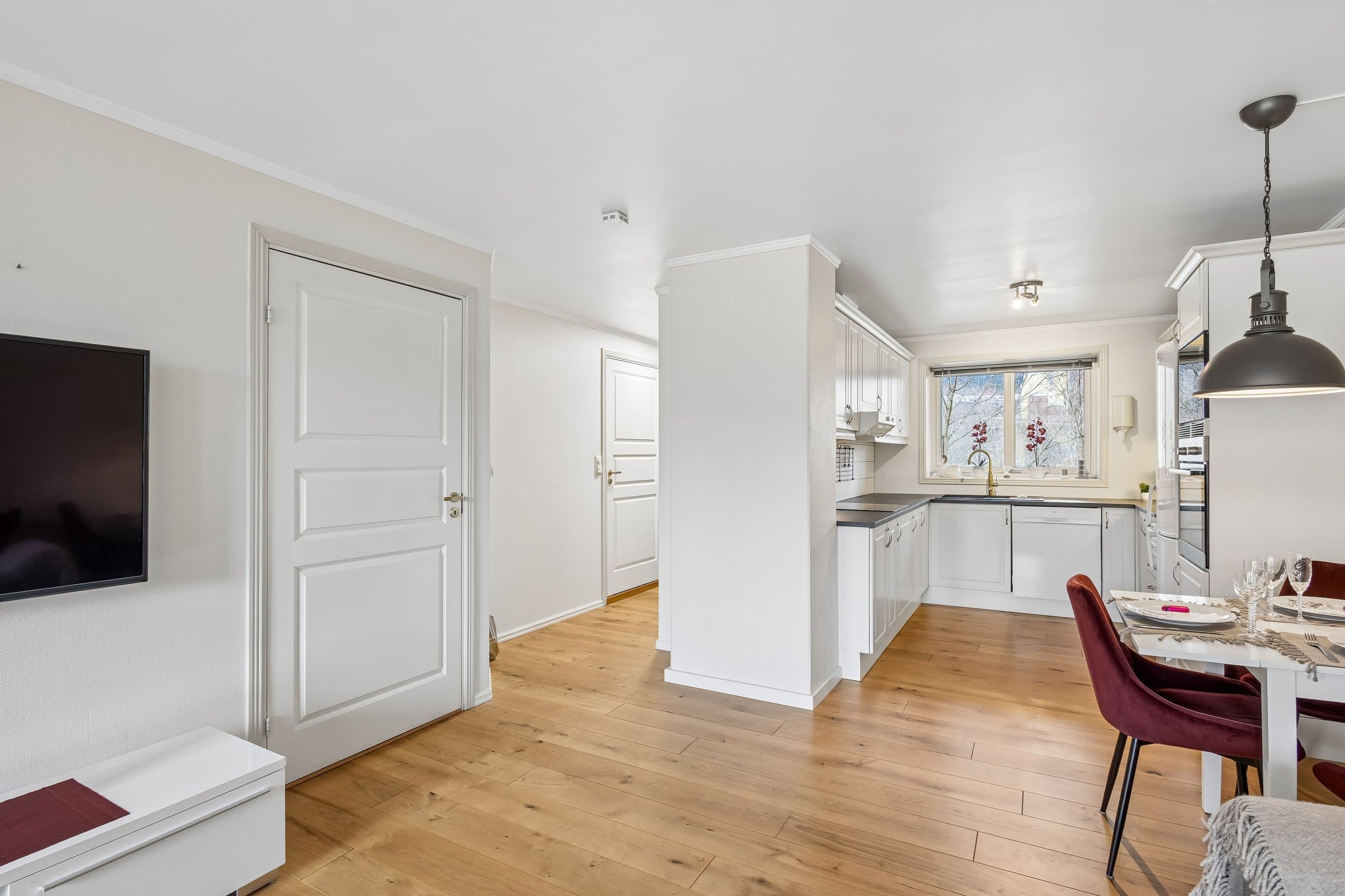 Gjennomgående fin 2-roms selveierleilighet i 2 etasje. Pen leilighet som er noe oppgradert senere år bestående av gang med garderobeskap, bad, kjøkken, stue og soverom med skyvedørsgarderobe. Plass til liten kontorplass på soverommet. Mulighet for montering av vedovn i stue. Stor innglasset terasse med varme. 2 egne boder. Røykvarslere tilknyttet SFTY med nabovarsling, innbruddsalarm og følg meg funksjon hvor det er mulig å inkludere feks nærmeste pårørende. Heis Fast plass i P-kjeller hvor plassen er forbredt for Easy lader til elbil. Store fellesarealer med felles rom for bilhjul, sykkel, hobbyrom med felles verktøy, innvendig og utvendig bod med felles redskaper som feks. uteredskaper, Honda gressklipper og Ryobi elektrisk snøfreser. Sameiet har parkering for gjester.