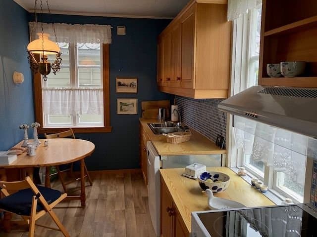 Eiendommen har gåavstand til butikker, kommuneadministrasjon, bibliotek, bank, kafè, bussholdeplass. Kort vei til fjorden.