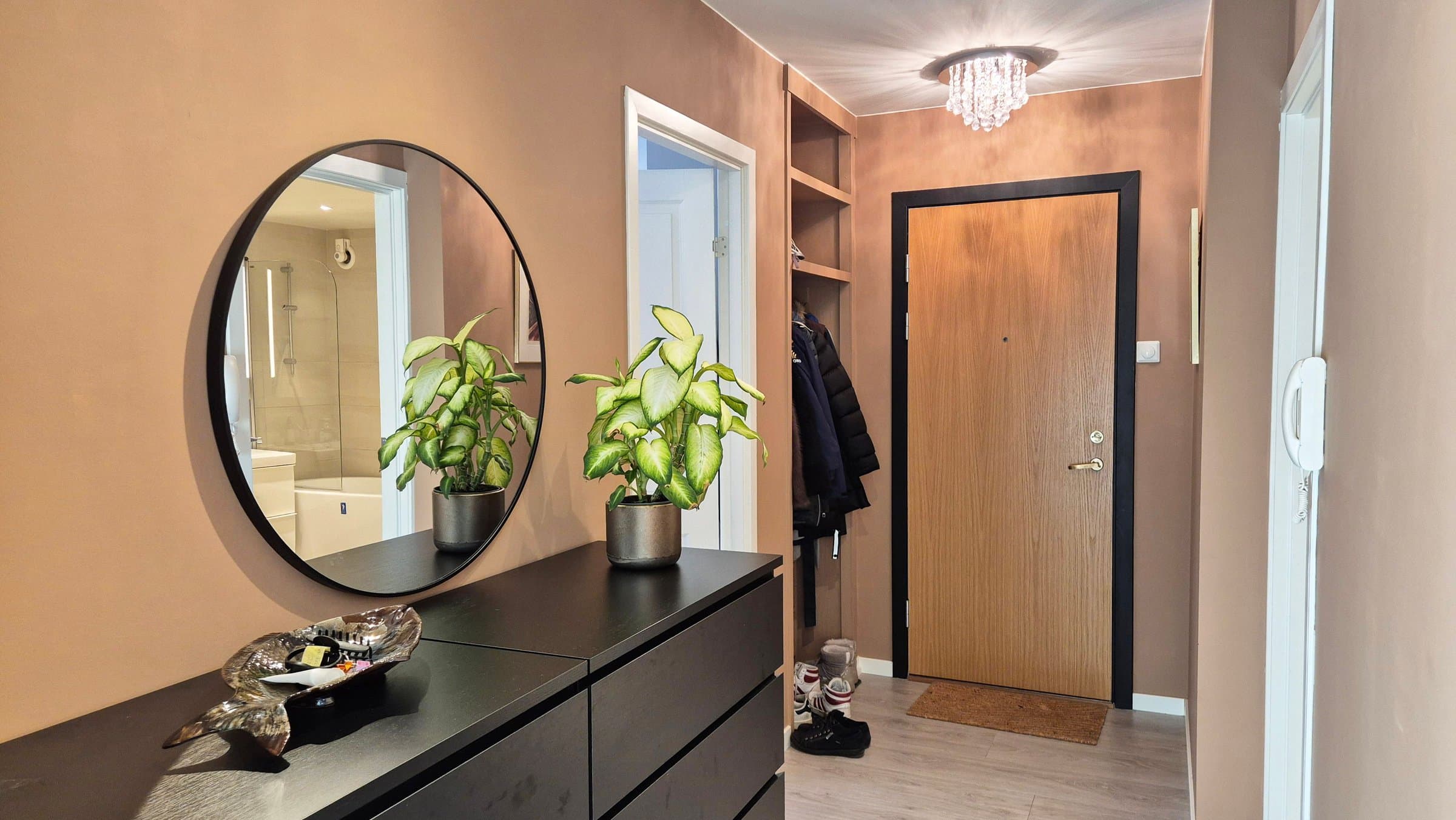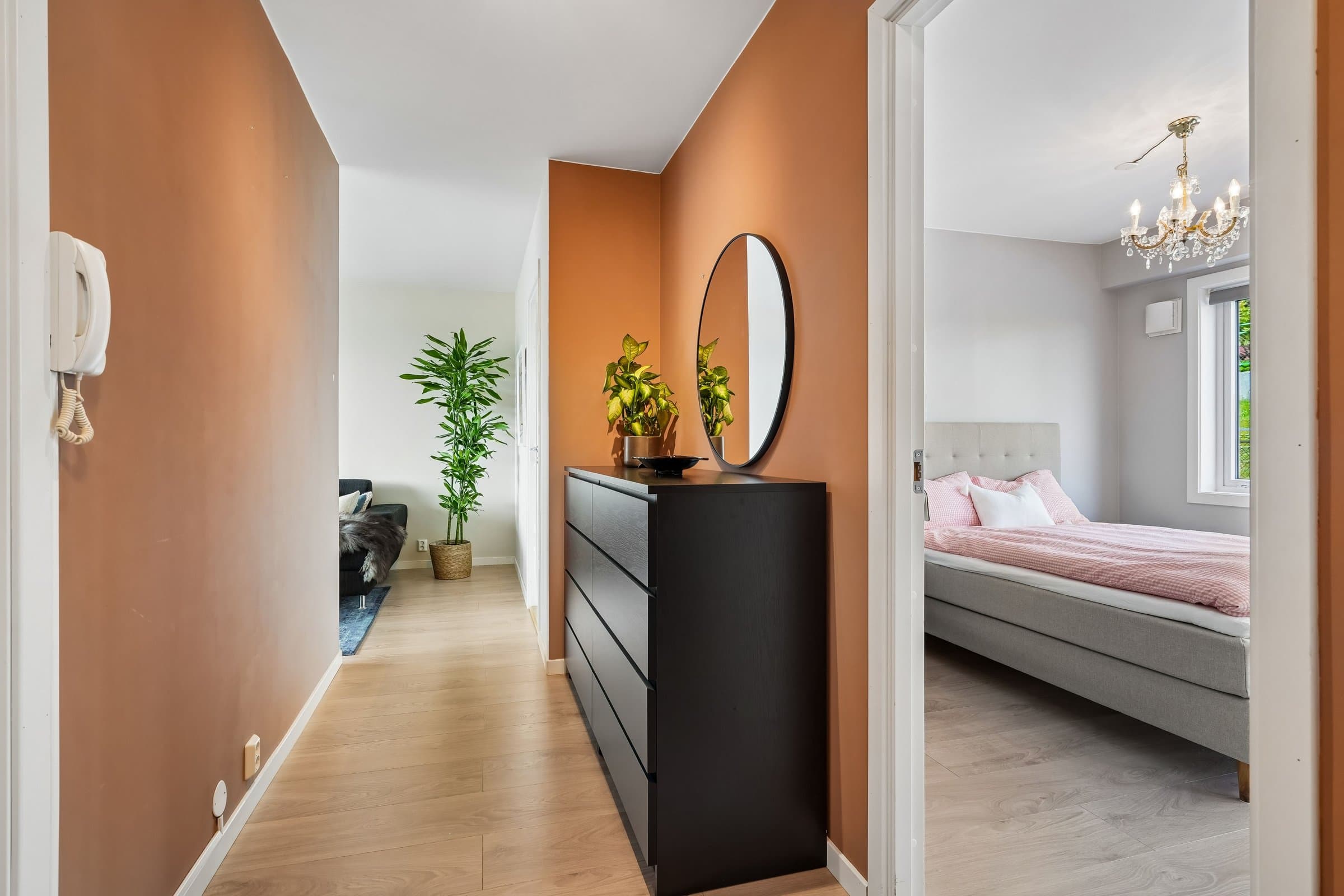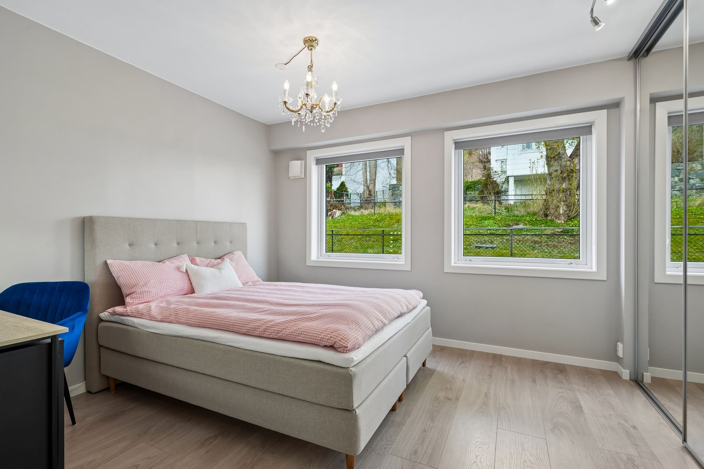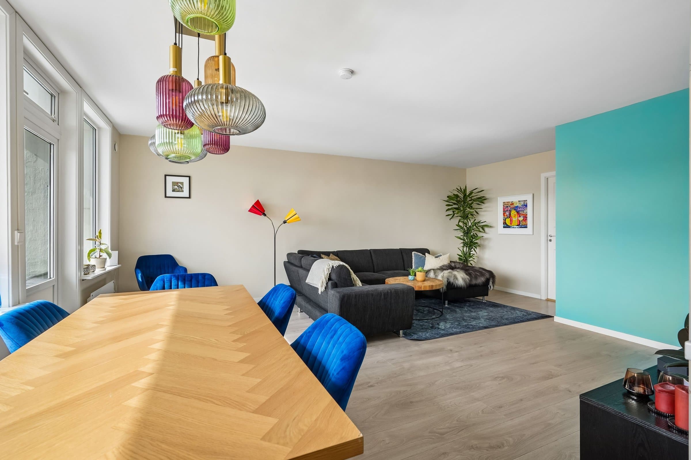 Meget sentral og romslig leilighet like ved Color Line Stadion og i gangavstand til sentrum, i veldrevet og godt vedlikeholdt borettslag. Rikelig med gratis gateparkering foran blokka, men også mulighet for å leie garasjeplass av borettslaget (etter ansienitet). Pipeløp gir mulighet for å sette inn peis/ovn. Beliggende i 3. etasje uten gjenboere har leiligheten flott utsikt over Borgundfjorden og innover mot Sunnmørsalpene, både fra kjøkkenet, gjennom stuevinduene og fra solrik, sydvendt veranda. Fra inngangspartiet på oppsiden er det kun én trapp opp til leiligheten. Tre egne boder pluss felles sykkelbod gir rikelig med lagringsplass. Leiligheten har to store soverom. I andre, tilsvarende leiligheter i borettslaget har beboerne delt ene soverommet i to med lettvegg, en fin mulighet hvis man har behov for det. Romslig bad fra 2016 har lekre fliser på gulv og vegger og innbydende badekar med dusjvegg. Vegghengt toalett, god belysning fra spotter i taket og selvsagt gulvvarme og opplegg for vaskemaskin og tørketrommel. Lys og luftig entré med god plass til å henge fra seg yttertøy og oppbevare sko, og med plass til kommoder. Porttelefon gjør det enkelt å åpne ytterdør i blokka for besøkende. God og moderne planløsning, stue med spisestue og kjøkken i en praktisk, delvis åpen løsning. Store vindusflater mot sør gir rikelig med naturlig lys. Kjøkkeninnredning med lyse fronter og benkeplate i laminat. Det er montert komfyrvakt og system for lekkasjesikring. Spiseplassene ved kjøkkenvinduet er det perfekte stedet å starte dagen med morgensol og kaffe. Stor veranda langs hele leilighetens frontfasade. God plass til sittegruppe i det lune hjørnet av verandaen, under terrassevarmen som både utvider «utesesongen» og forlenger de hyggelige og sosiale sommerkveldene med gode venner. Leiligheten ble totalfornyet i 2016 med nytt bad og kjøkken og nye overflater, og rør og el-anlegg fornyet. Felles avløpsrør i blokka fornyet i 2025.