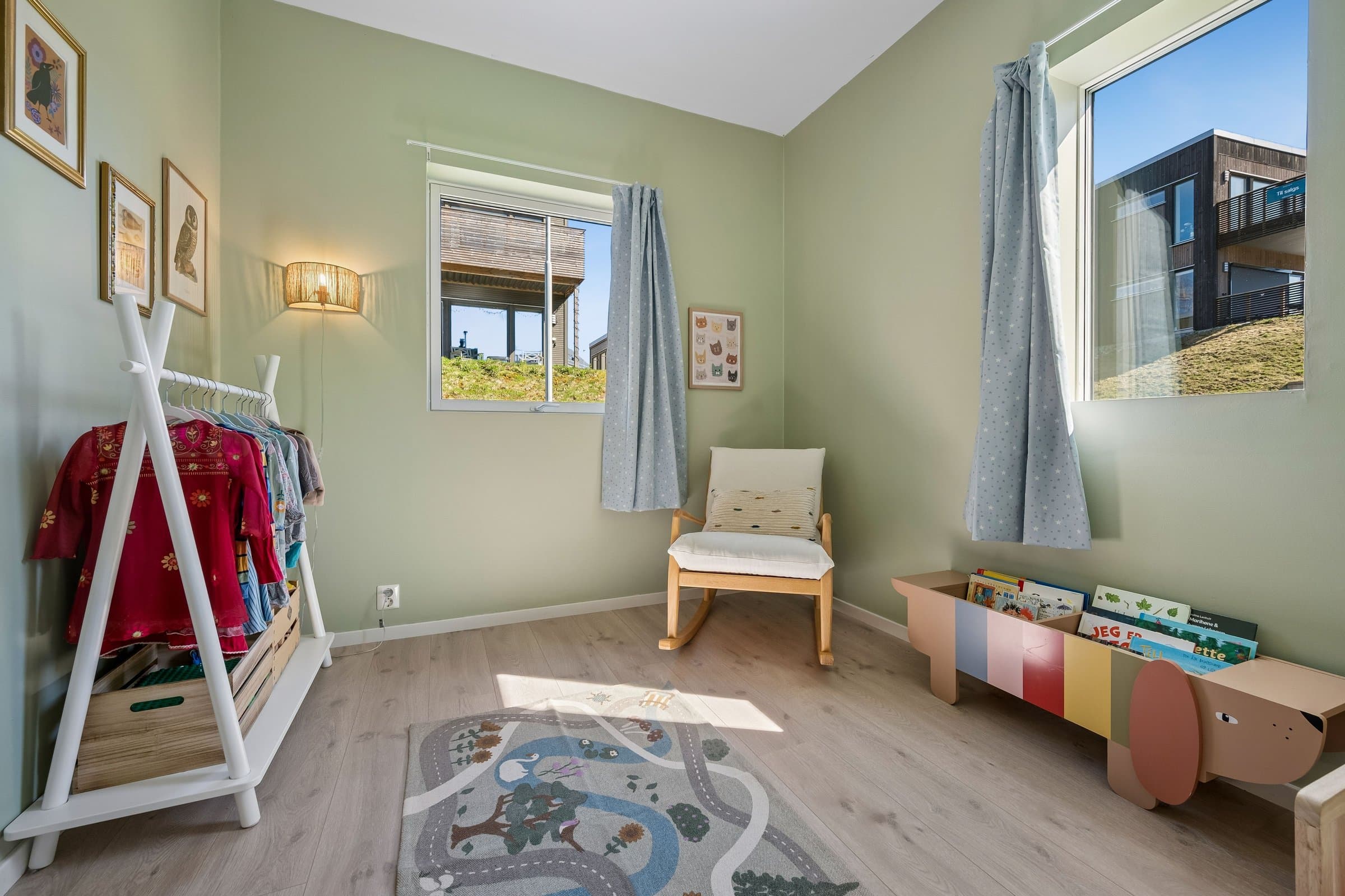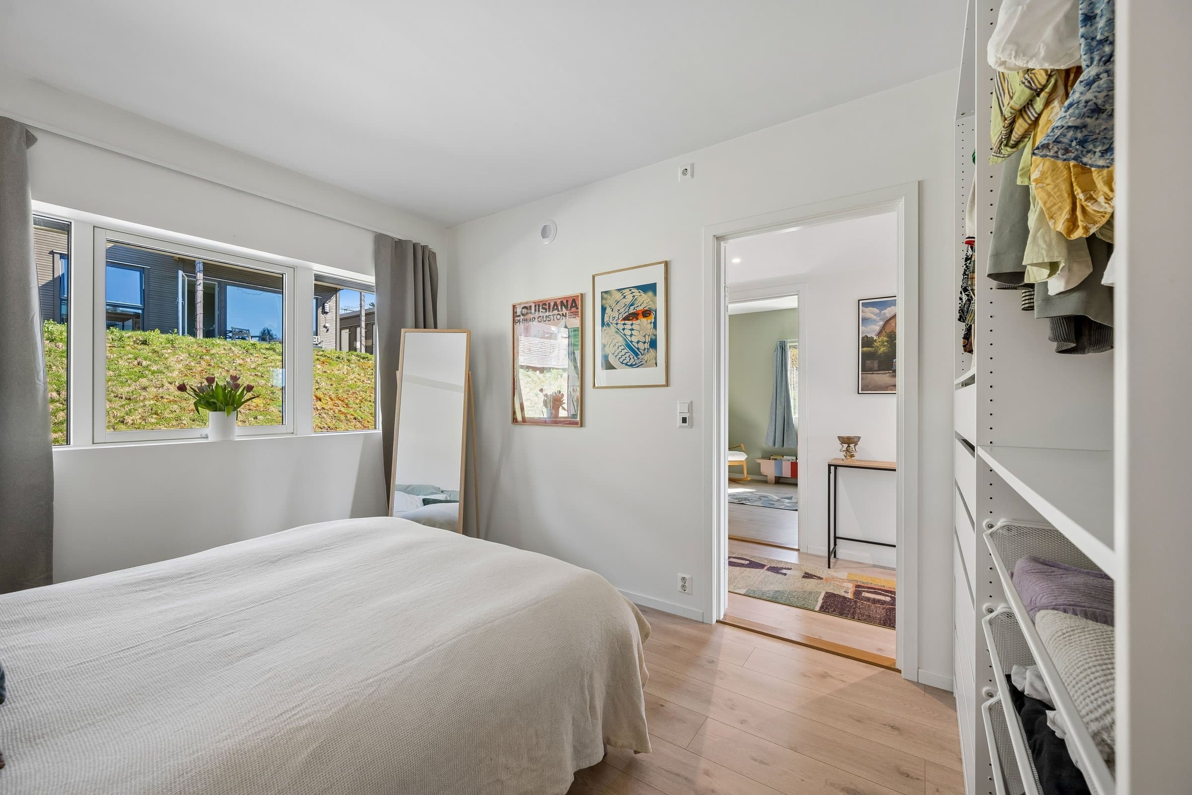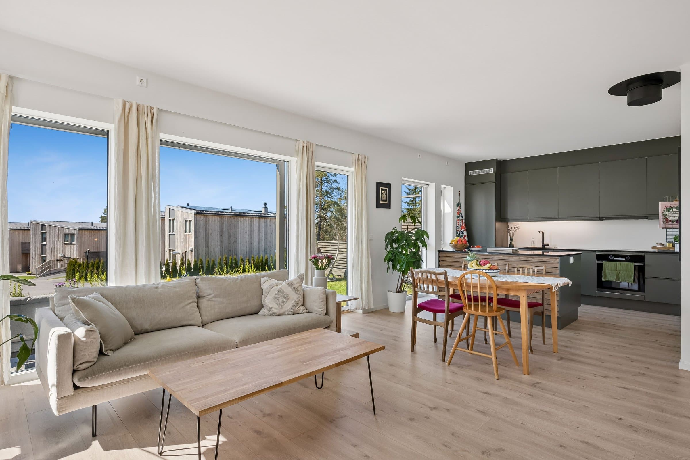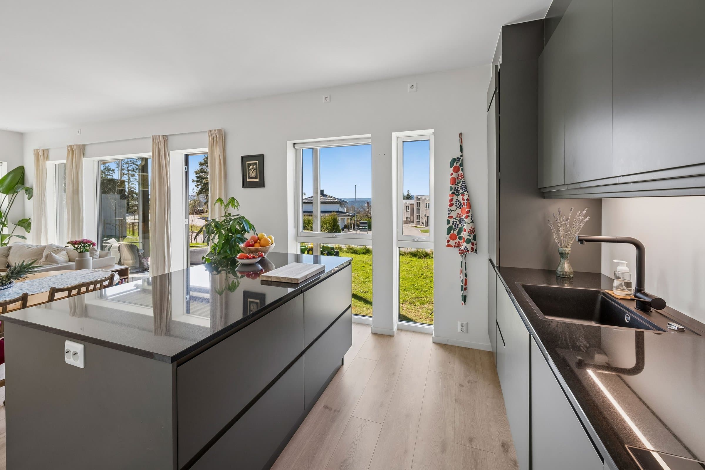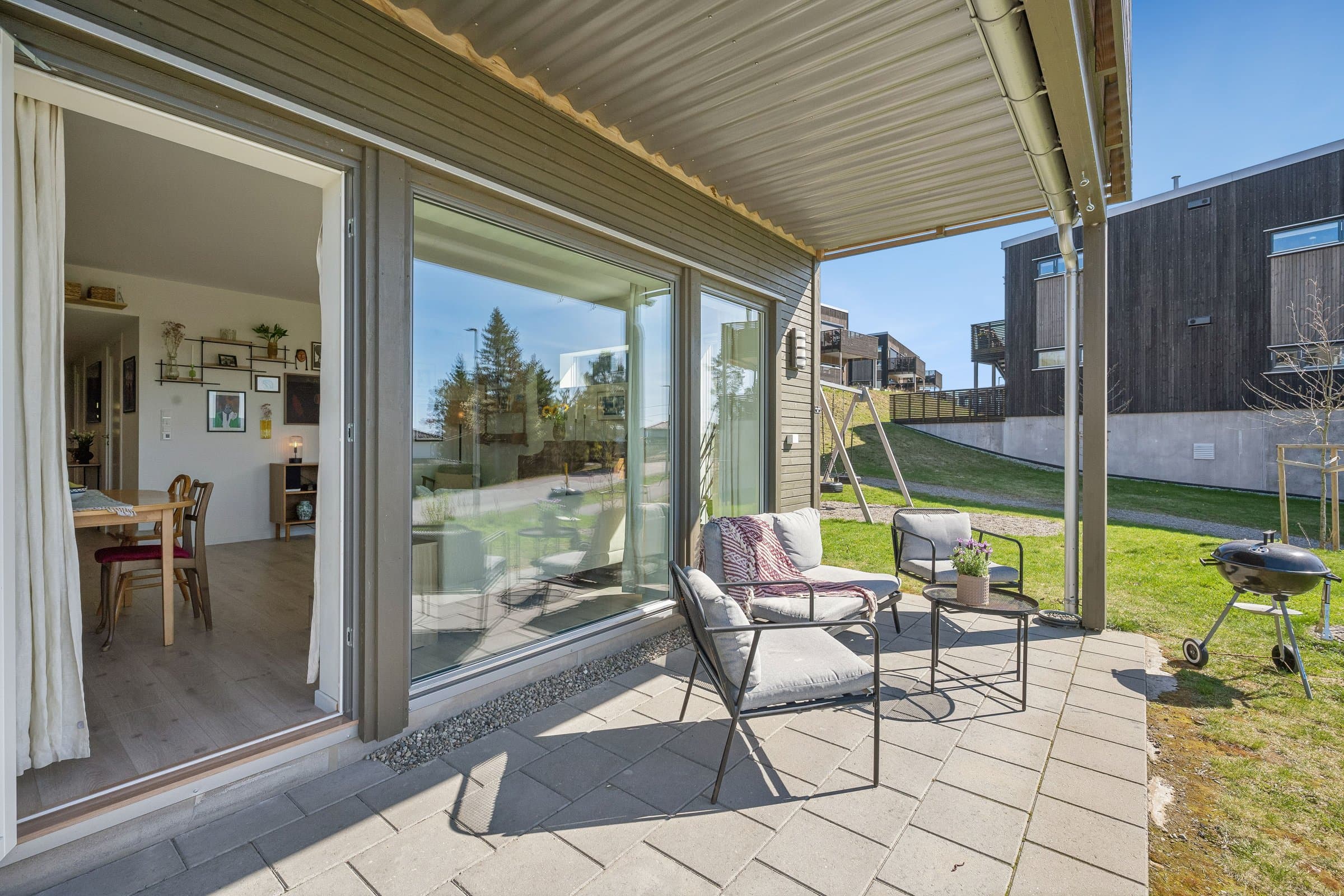 Lys, varm selveierleilighet fra 2022. Leiligheten befinner seg i 1. etasje, med 3 soverom. Gjennomgående høy standard. Store vinduer som gir naturlig belysning. Gode solforhold og varme i alle gulv, som gjør tilværelsen komfortabel året rundt. Vestvendt terrasse med tilhørende hage. Tilvalg på kjøkken, i form av kjøkkenøy, oppgraderte fronter og benkeplate i stein. Åpen løsning mellom stue og kjøkken, som skaper en helhetlig kjerne i leiligheten. Behagelig, stilrent bad, med romslig dusj. Praktisk vaskerom med gode oppbevaringsmuligheter. Egen parkeringsplass med tilhørende elbillader. Sportsbod og felles sykkelskur, som disponeres av sameiets 6 enheter. 4 gjesteparkeringer til disposisjon i sameiet.