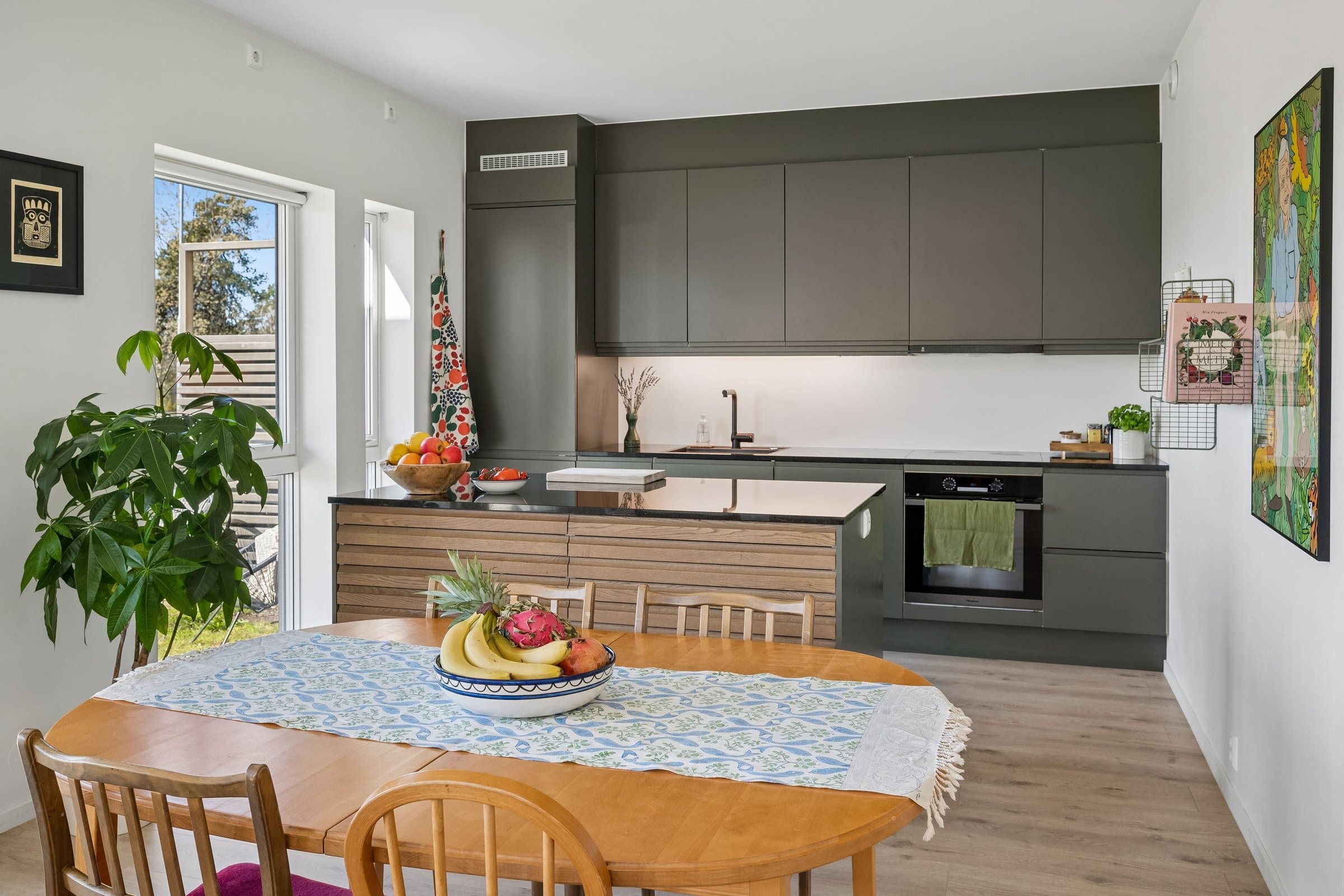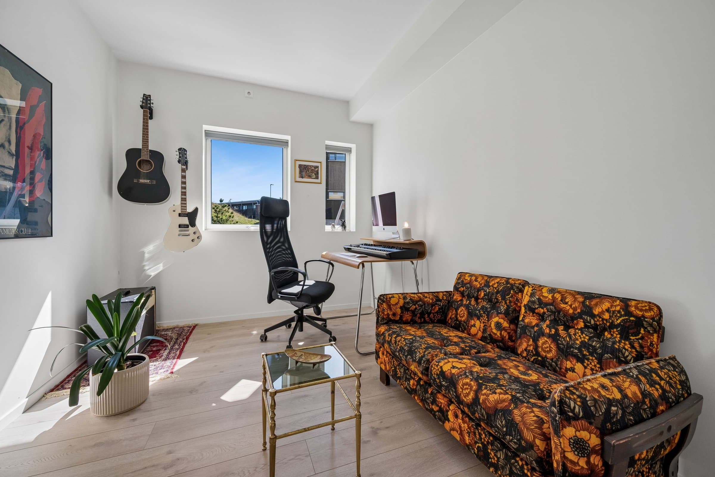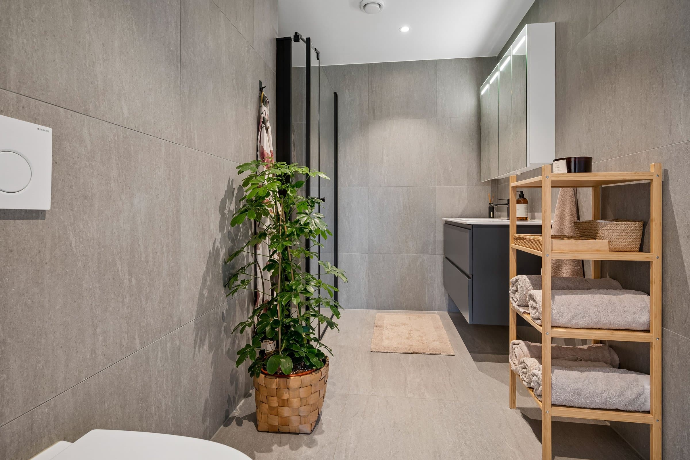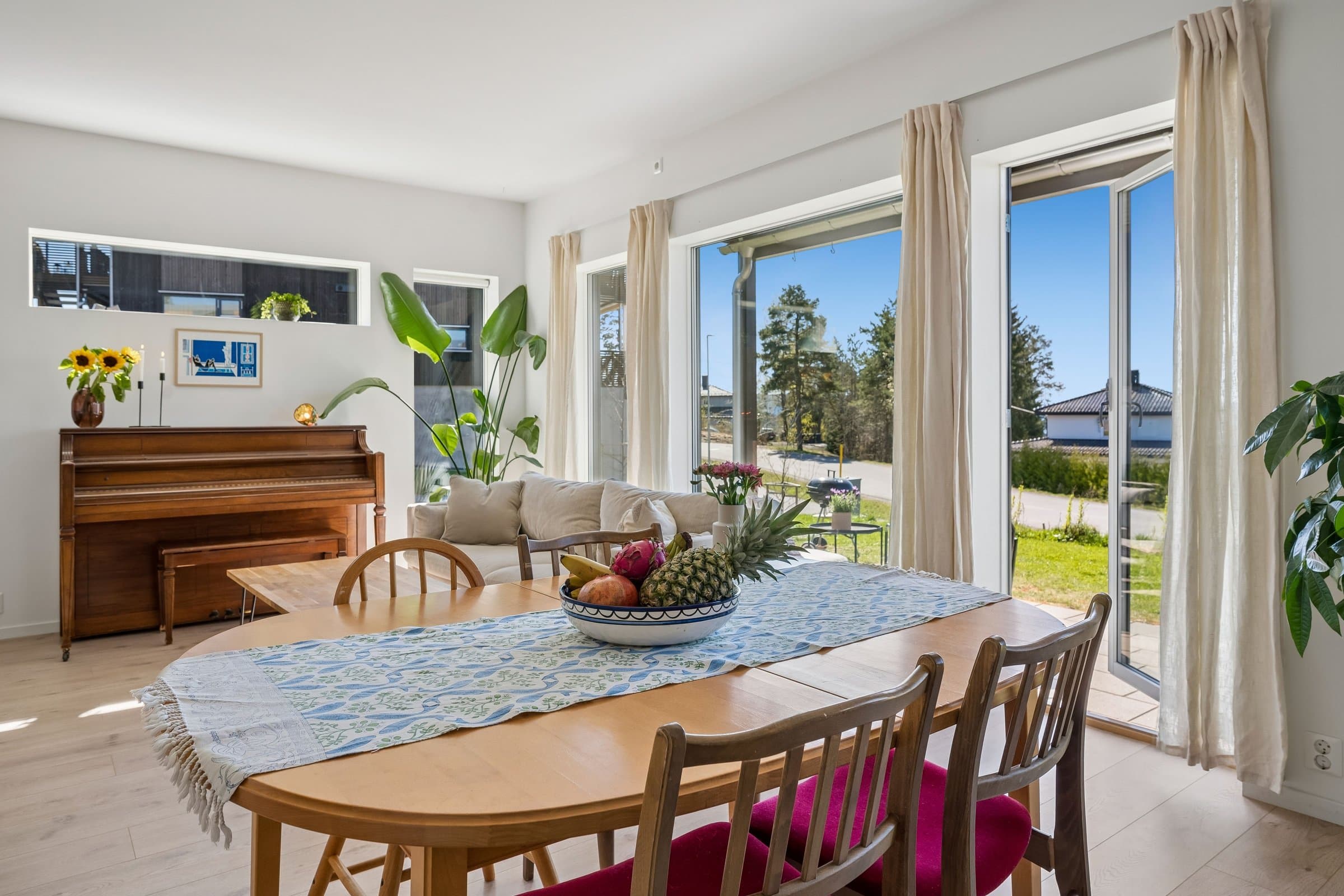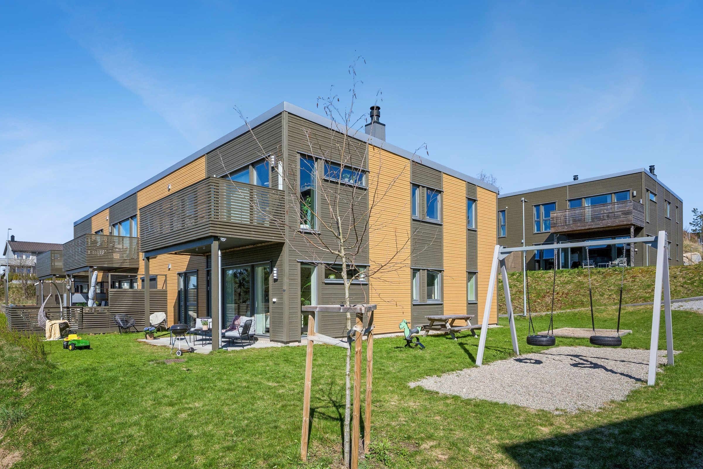 Lys, varm selveierleilighet fra 2022. Leiligheten befinner seg i 1. etasje, med 3 soverom. Gjennomgående høy standard. Store vinduer som gir naturlig belysning. Gode solforhold og varme i alle gulv, som gjør tilværelsen komfortabel året rundt. Vestvendt terrasse med tilhørende hage. Tilvalg på kjøkken, i form av kjøkkenøy, oppgraderte fronter og benkeplate i stein. Åpen løsning mellom stue og kjøkken, som skaper en helhetlig kjerne i leiligheten. Behagelig, stilrent bad, med romslig dusj. Praktisk vaskerom med gode oppbevaringsmuligheter. Egen parkeringsplass med tilhørende elbillader. Sportsbod og felles sykkelskur, som disponeres av sameiets 6 enheter. 4 gjesteparkeringer til disposisjon i sameiet.
