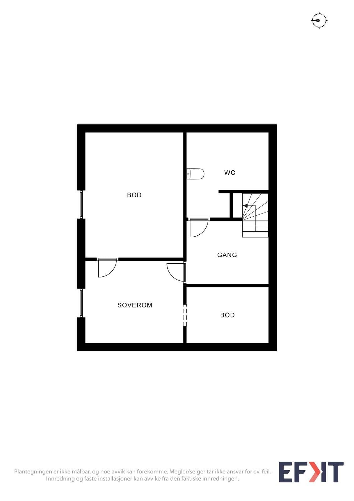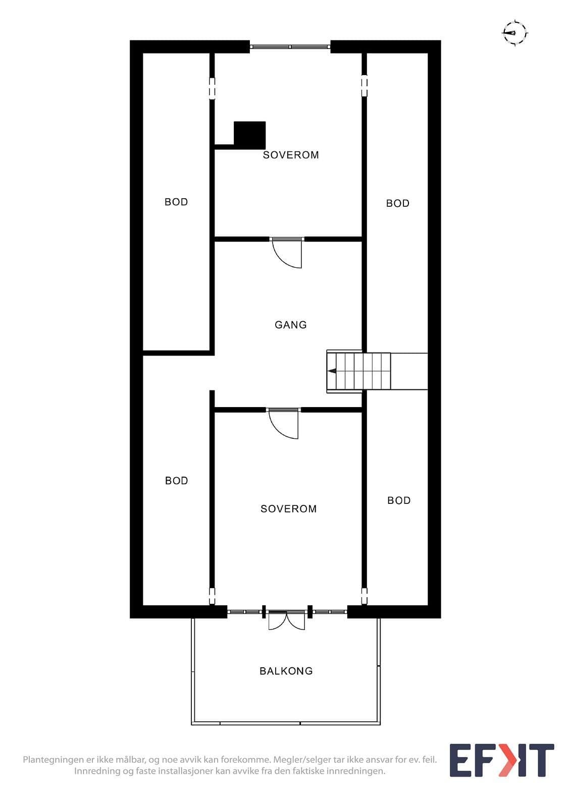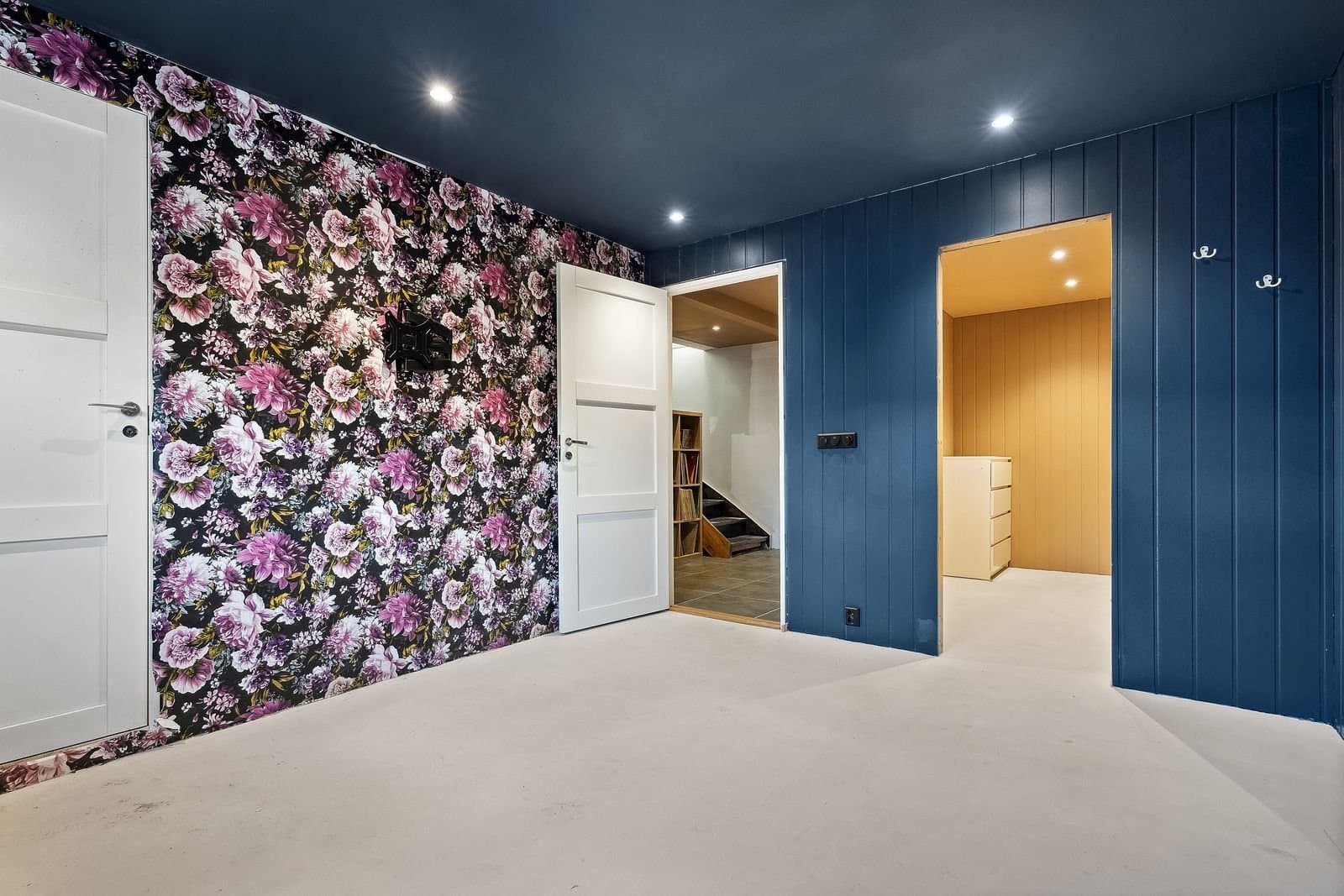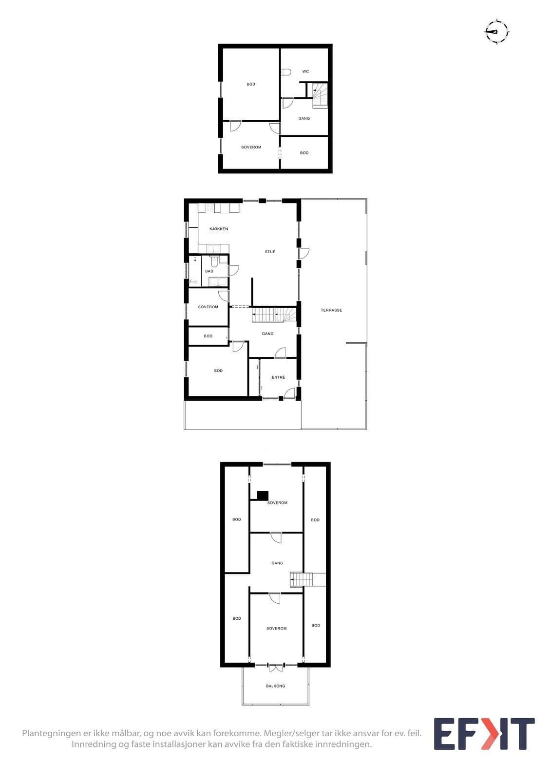 Hovedetasje inneholder vindfang, gang, kjøkken, stue, to soverom, bad, veranda og bod. Andre etasje inneholder to soverom og loftstue, med gode oppbevaringsmuligheter bak kneveggene. Kjelleretasjen inneholder en gang, ett soverom, walk-in garderobe, bad/vaskerom og et uferdig rom som var tiltenkt ekstra bad.