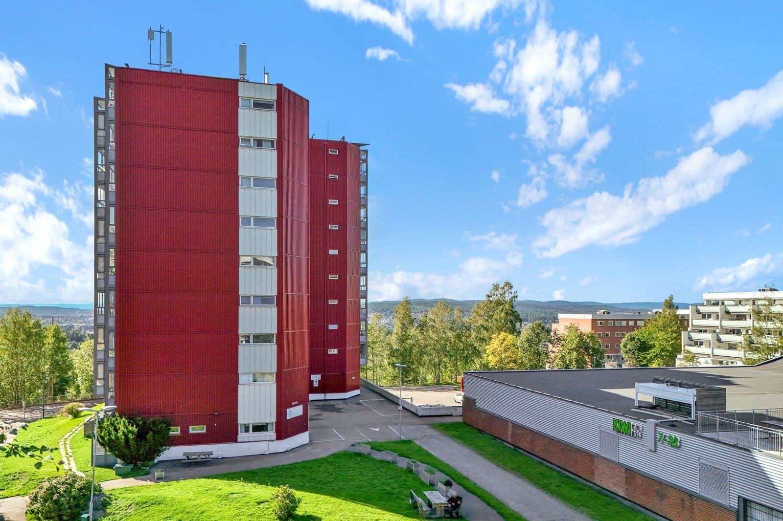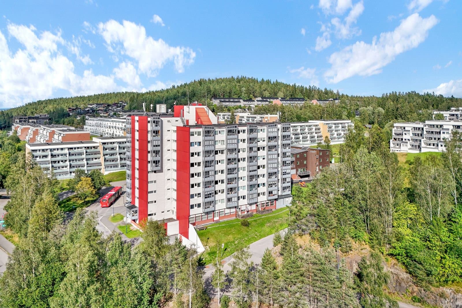 Leiligheten ligger et steinkast unna butikk og det er gangavstand til bl.a. barnehage og skole samt Østmarka med flotte turmuligheter. Busstopp rett utenfor døren med hyppige bussavganger til både Lillestrøm og Oslo, inkludert ekspressbuss til Oslo sentrum i rushtiden.