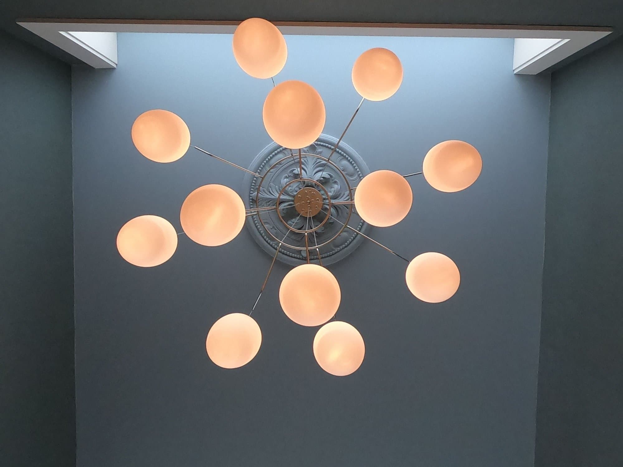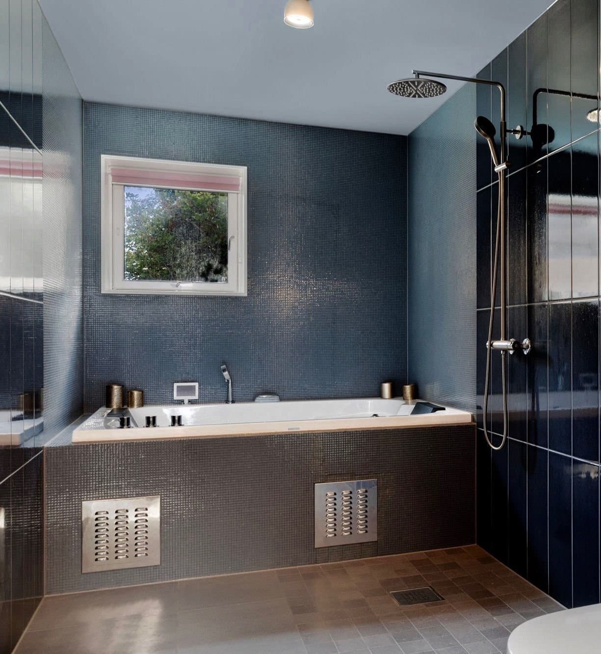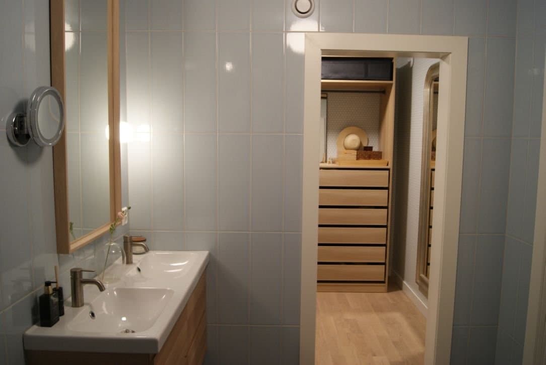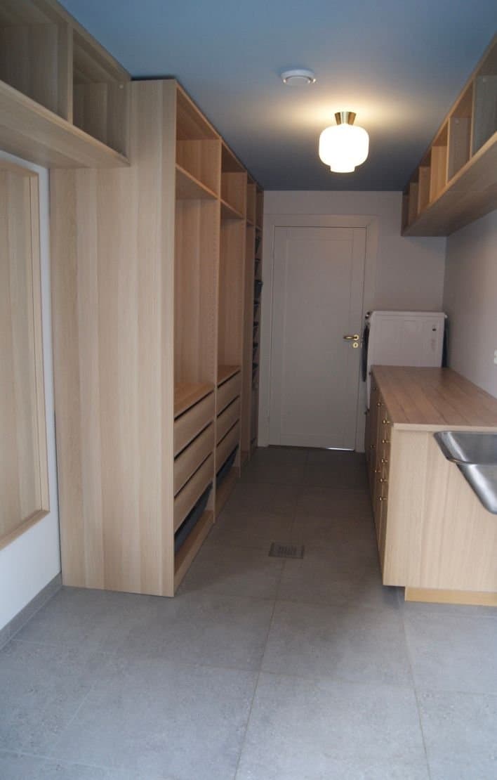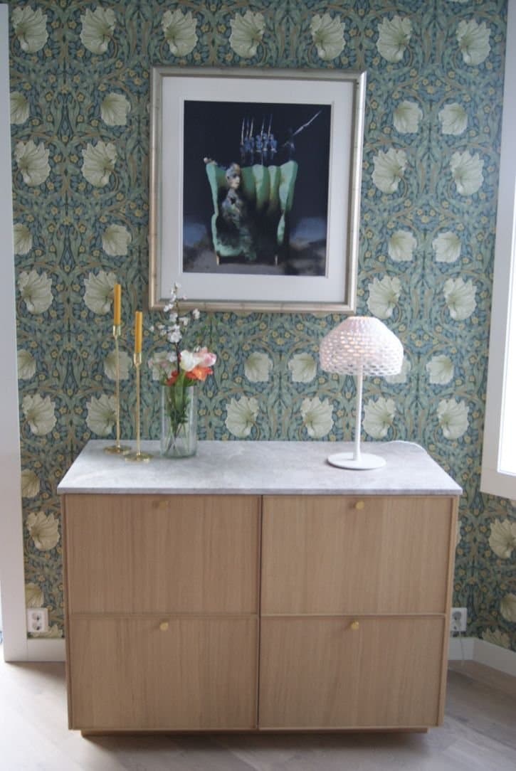 1. Etasje: Takhøyde 2,4m Hall: Flislagt med elektiske varmekabler i gulvet. Tapet på vegger og malt himling. 2 stk. soverom: Med parkett og elektiske varmekabler, tapet på vegg og malt himling. 1 stk kontor/soverom: Flislagt med elektiske varmekabler. Bad: Flislagt med elektiske varmekabler i gulvet. Massagebad, frittstående dusj, håndklevarmer, vegghengt toalett og enkel servant med eikinnredning. Veggene er flislagt. Massagebad er innebygd og flislagt. Vaskerom: Flislagt med elektiske varmekabler i gulvet, gips med malt overflate på vegg og i tak. Tekniskrom/bod: Gulvbelegg på gulv, malt gips på vegg og i tak. Bod under trapp: Parkett på gulv, malt gips på vegg og tak. 2. Etasje: Takhøyde 2,55m Kjøkken/stue (allrom): 2-stavs hvitkalket lakkert eikeparkett med elektrisk varme. Vegger tapet, malt himling. Kjøkken i eik (IKEA), benkeplate i matt sandfarget marmor. Hovedsoverom: 2-stavs hvitkalket lakkert eikeparkett med elektrisk varme. Vegger tapet, malt himling. Bad: Flislagt med elektiske varmekabler i gulvet. Flis på vegg og malt himling. Oppbygd benk med glassmosaikk. Vegghengt toalett, dobbel servant med eikeinnredning. WIC: Parkett med elektiske varmekabler, tapet på vegg og malt himling. Eikeinnredning (IKEA). 3. Etasje: Takhøyde 2,40m Stue/utgang: 2-stavs hvitkalket lakkert eikeparkett. Vegger tapet, malt himling. Peis, merke Norpeis (Praha), ubrukt. Utgang til stor terrasse med retning øst, sør og vest. Det er stort sett belysning fra Flos i hele boligen (pendel "sky-garden" over spisebord følger ikke med).