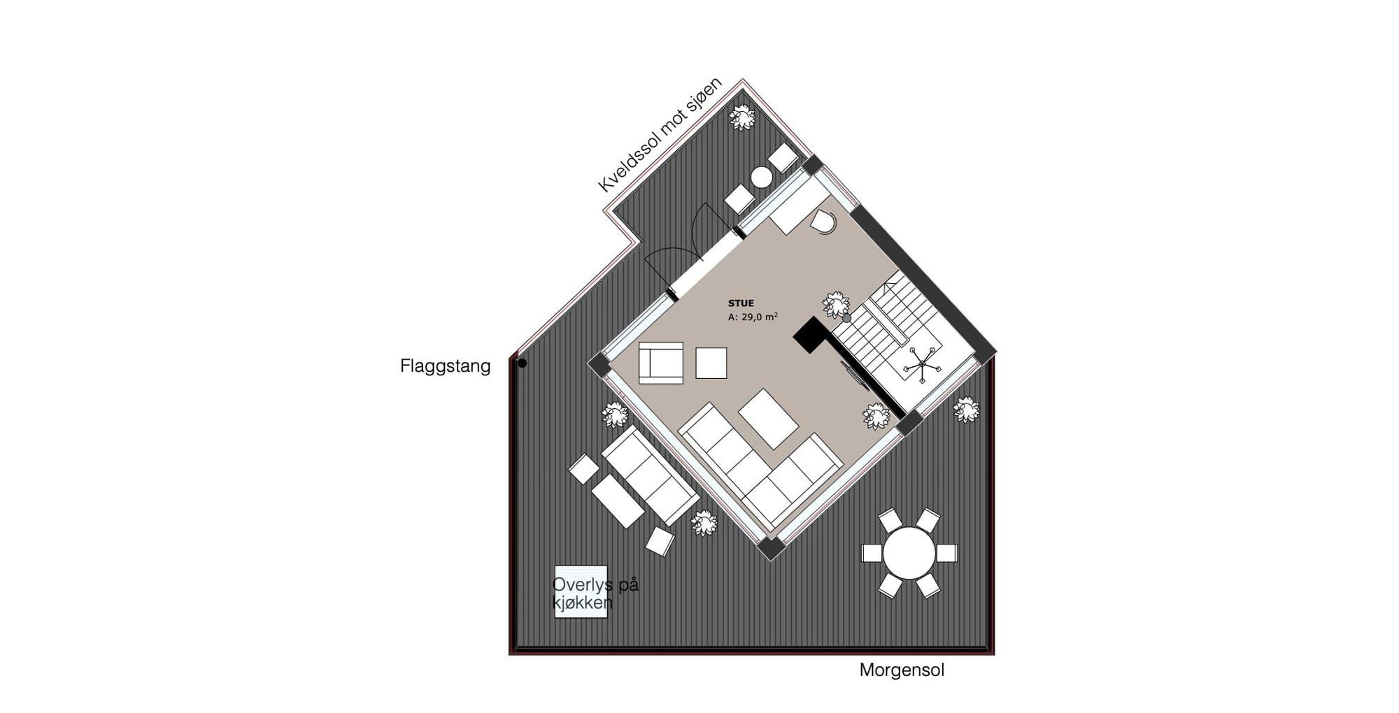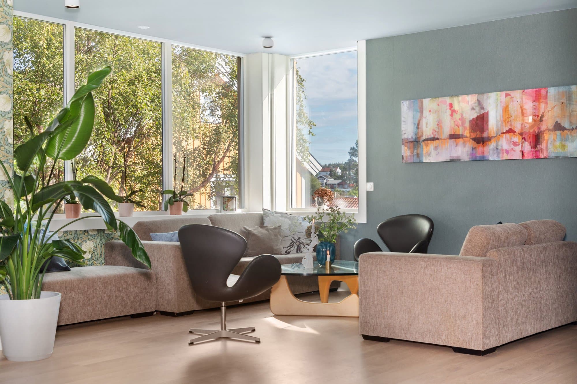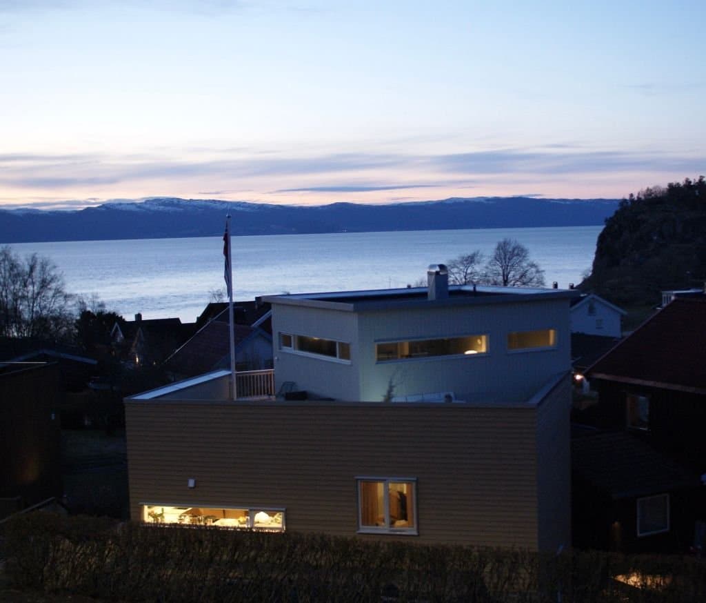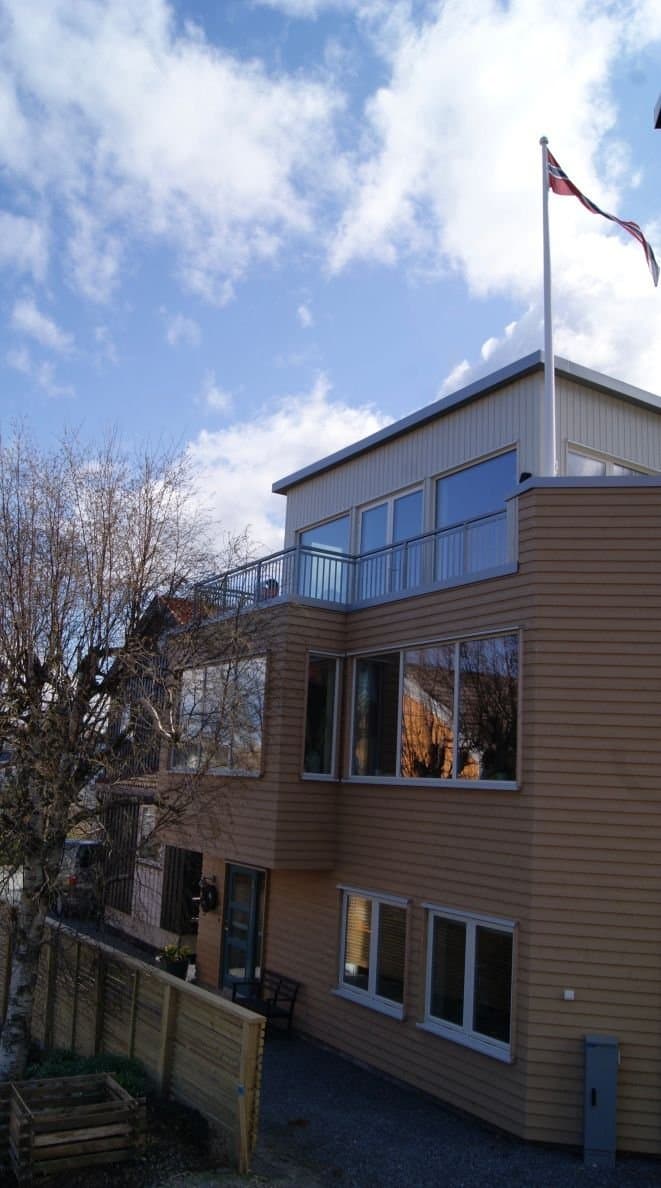 Eiere: Lisa Asmervik og Fredrik Sunde. Visning: Som annonsert på internett (finn.no), eller etter nærmere avtale med eier. Overtagelse: Etter nærmere avtale med eier. STANDARD Gjennomført universell utforming med heis og god planløsning, utnyttelse av innvendig samt utvendige arealer med bruk av takterrasse. Utførelsen av ytterkledningen, er av svært god fagmessig utførelse. Heis mellom 1 og 2 etasje bidrar til økt brukervennlighet. Alle yttertakene på huset er utført som pulttak med liten helningsvinkel, og har flate himlinger innvendig. Det er montert takluke med elektrisk styrt åpning i taket over kjøkkenet i 2 etasje. Takvinduet er fabrikkmerket med Velux og gir et meget fint overlys mot kjøkken arealet. BYGGEMÅTE Grunnmur av betong med isolert og kledd utside. Innvendig behandlet med overflatebelegg. Hovedkonstruksjon over grunnmur er i tre. Utvendig kledd med liggende weatherbord med fals lagt på lekter. FERDIGATTEST Det foreligger ferdigattest fra 21.06.2019. REGULERING Eiendommen ligger i et område regulert til bolig r20140041 og r0400a. Kopi av situasjonskart, reguleringsplaner m/bestemmelser etc. oppfordres interessenter til å gjøre seg kjent med. VEI, VANN OG AVLØP Offentlig via private stikkanlegg. SKATTEMESSIG FORMUESVERDI Formueverdi 1 114 827 innhentet fra Skatteetaten/Altinn. Verdien gjelder som primærbolig.