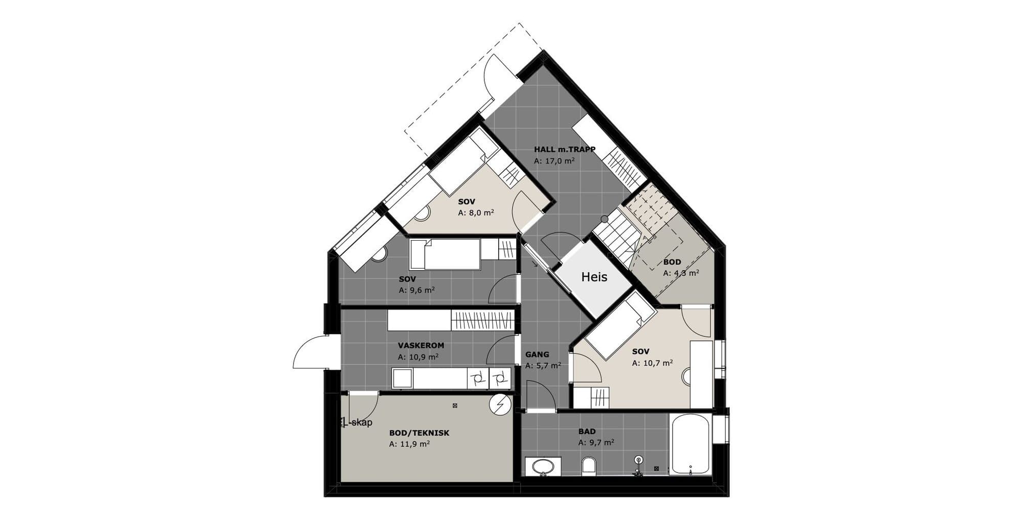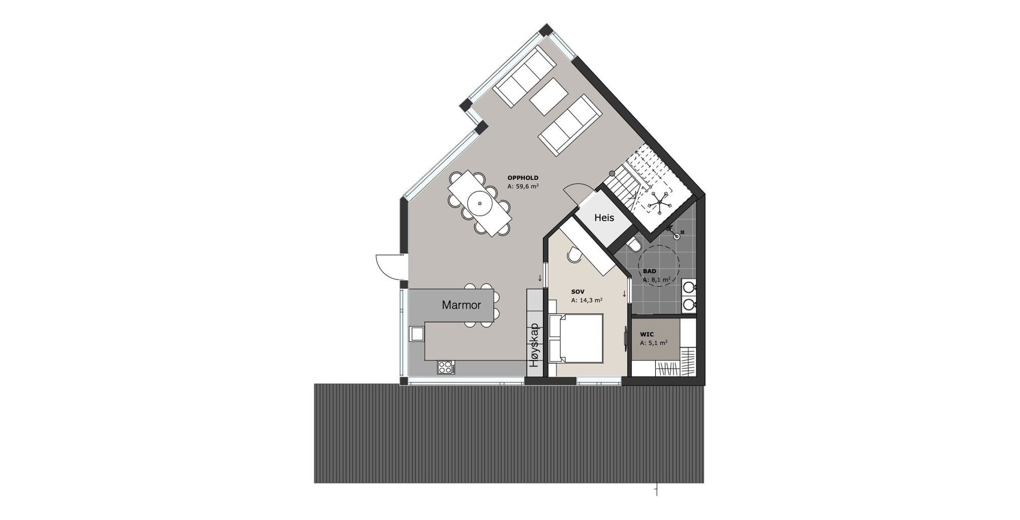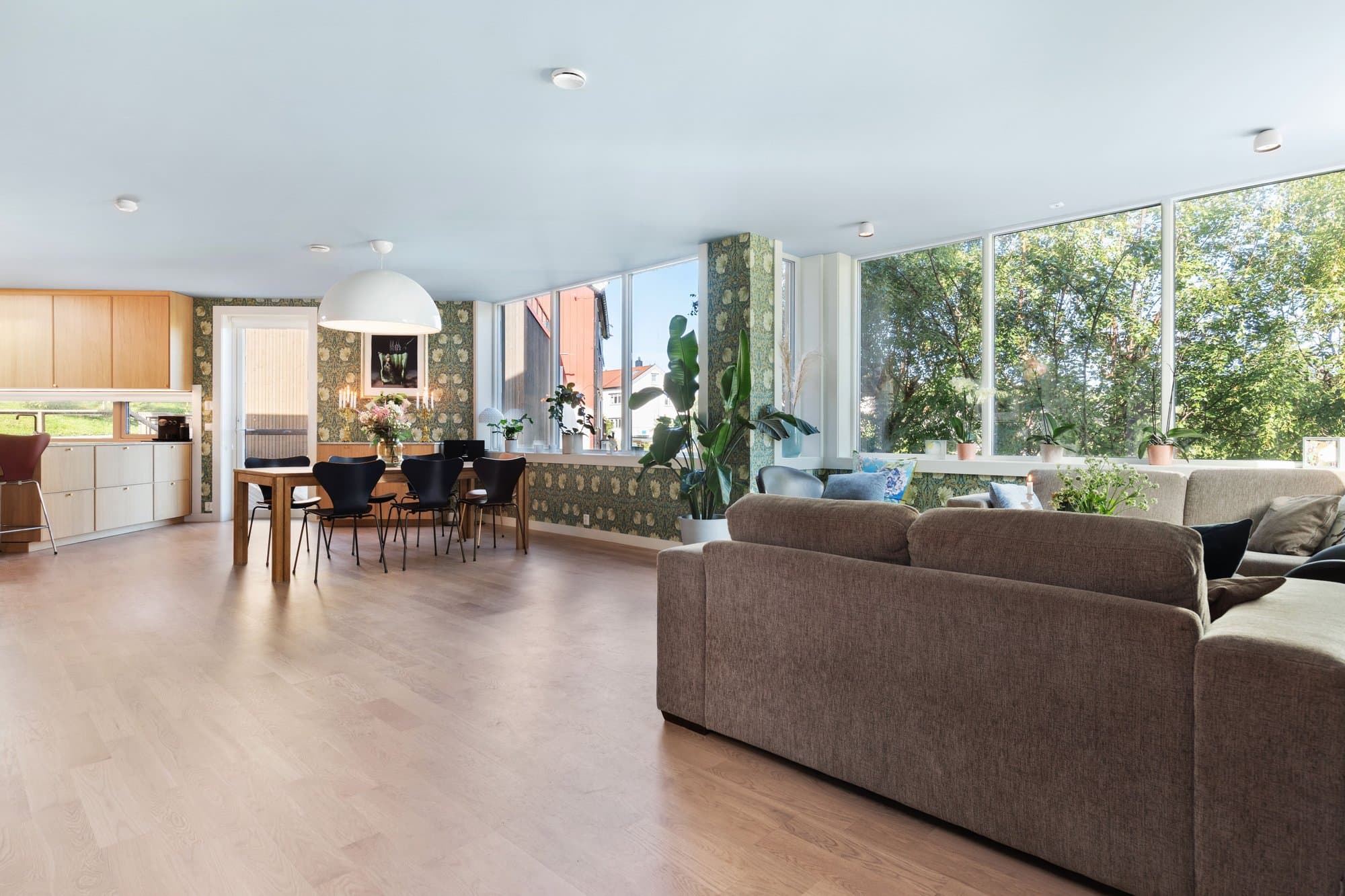 Eiere: Lisa Asmervik og Fredrik Sunde. Visning: Som annonsert på internett (finn.no), eller etter nærmere avtale med eier. Overtagelse: Etter nærmere avtale med eier. STANDARD Gjennomført universell utforming med heis og god planløsning, utnyttelse av innvendig samt utvendige arealer med bruk av takterrasse. Utførelsen av ytterkledningen, er av svært god fagmessig utførelse. Heis mellom 1 og 2 etasje bidrar til økt brukervennlighet. Alle yttertakene på huset er utført som pulttak med liten helningsvinkel, og har flate himlinger innvendig. Det er montert takluke med elektrisk styrt åpning i taket over kjøkkenet i 2 etasje. Takvinduet er fabrikkmerket med Velux og gir et meget fint overlys mot kjøkken arealet. BYGGEMÅTE Grunnmur av betong med isolert og kledd utside. Innvendig behandlet med overflatebelegg. Hovedkonstruksjon over grunnmur er i tre. Utvendig kledd med liggende weatherbord med fals lagt på lekter. FERDIGATTEST Det foreligger ferdigattest fra 21.06.2019. REGULERING Eiendommen ligger i et område regulert til bolig r20140041 og r0400a. Kopi av situasjonskart, reguleringsplaner m/bestemmelser etc. oppfordres interessenter til å gjøre seg kjent med. VEI, VANN OG AVLØP Offentlig via private stikkanlegg. SKATTEMESSIG FORMUESVERDI Formueverdi 1 114 827 innhentet fra Skatteetaten/Altinn. Verdien gjelder som primærbolig.