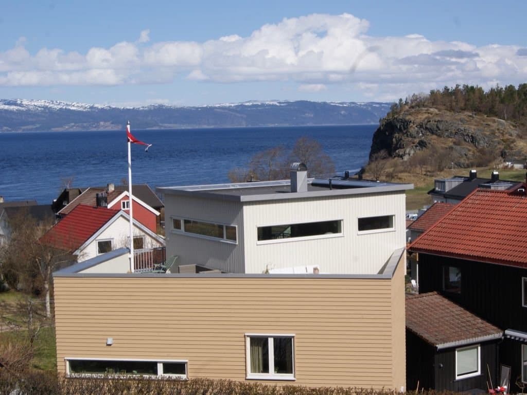 Arkitekttegnet enebolig som er tilpasset tomtens beskaffenhet og reguleringsplan for Korsvika "Sol & sjø". Enebolig med gjennomgående høy standard har beliggenhet i Korsvika som er et attraktivt boligområde, noe tilbaketrukket, men fortsatt sentralt. Dette er et område som er spesielt populært blant barnefamilier, da det er ny barne/ungdomsskole og flere barnehager i området. Boligen har 3 soverom, bad, hall samt vaskerom med egen inngang i 1. etasje. På hovedplanet er det et romslig allrom med dagslys fra alle sider, til og med fra taket via takvindu over kjøkkenet. Allrommet har en ekstra takhøyde som gjør opplevelsen luftig. Rommet er formet slik at det er mulighet for langbord opptil 22 personer. Kjøkkenet har stor kapasitet og en raus kjøkkenøy med opp til 5 sitteplasser. Det er vindu over benkeplaten på yttervegg som gir godt dags- og arbeidslys. En verandadør fører ut til markterasse på sørsiden av boligen (godkjent, men ikke ferdigstilt). Hovedsoverommet ligger innenfor allrommet med tilhørende bad og garderoberom. Det finnes tv-uttak på dette soverommet. Heisen går fra 1. - 2. etasje. I det en kommer opp trappen til 3. etasje er det nydelig utsikt mot vest, Korsvika og sjøen. Her er det også lys fra alle sidene, som gir et luftig og godt rom for opphold. Peis og tv-uttak finnes i dette rommet og gir god mulighet for rekreasjons sommer som vinter. Her er det utgang til takterrasse som ligger rundt denne toppetasjen. Takterrassen har 3 sider en kan benytte seg av, solen er tilgjengelig hele dagen. Boligen er universelt utformet og meget godt tilpasset tilgjengelighet. Alle tak har fargen "kilden" Parkering: 4 stk p-oppstillingsplass på egen tomt, bil kan parkeres ved inngangsdør. Boligen er oppført av Norgeshus midt-norge og har igjen 4 av 5 års garanti. Om du ikke har mulighet til å komme på visning, holder vi gjerne privatvisning. Ta kontakt, så finner vi en tid.